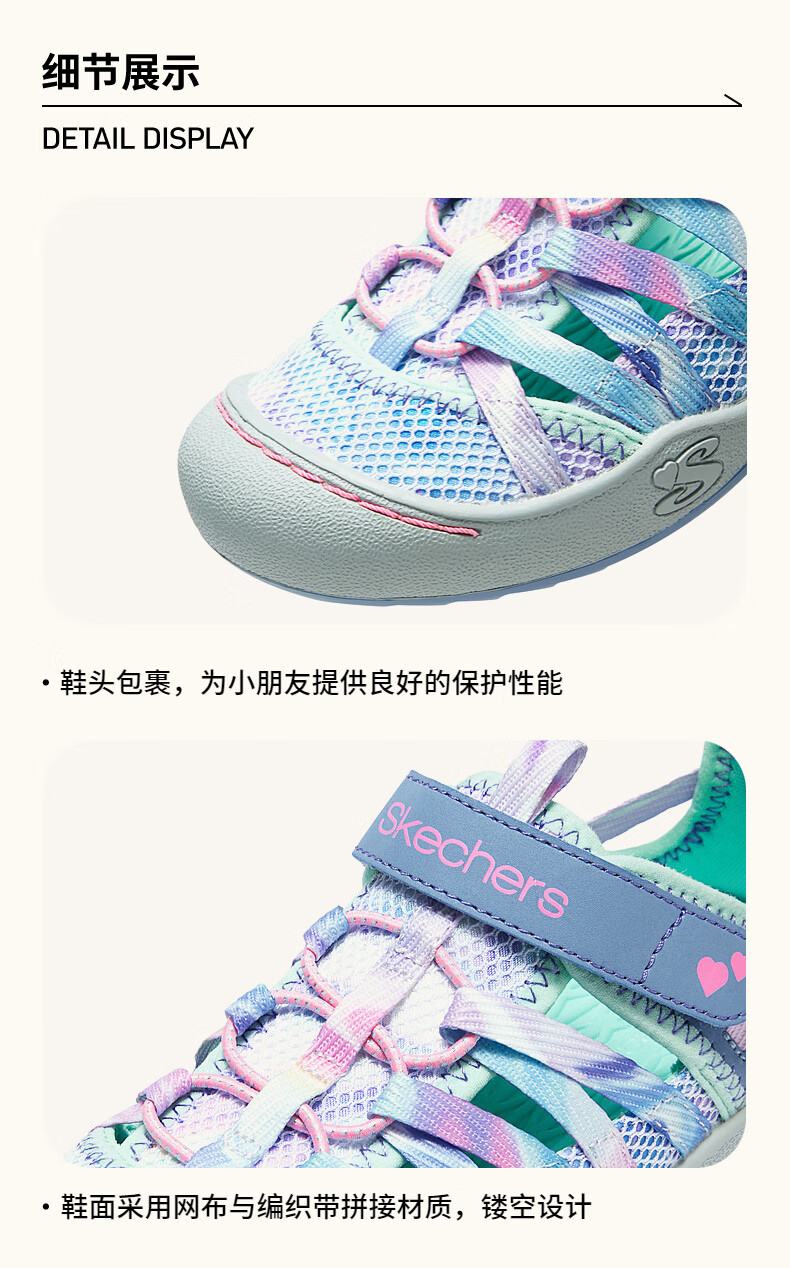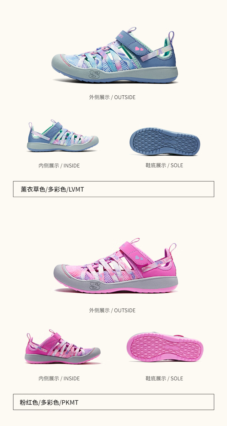 Skechers outdoor toe-toe sandals breathable beach shoes 303394L lavender/multicolor/LVMT 33.5
