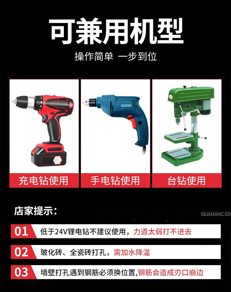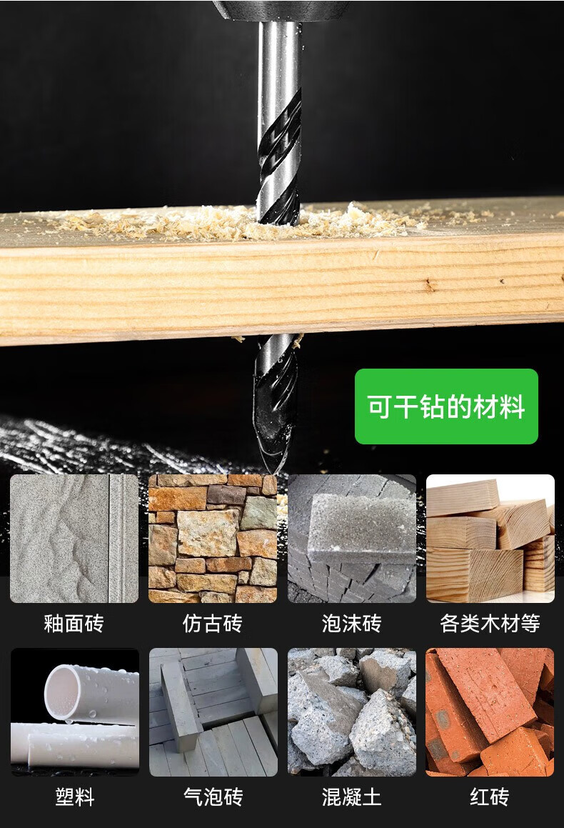 Haiyiduo multifunctional alloy overlord drill bit tile concrete drill bit electric drill bit twist drill bit ceramic drill bit 3+4+5+6+8+10+12 drill bits, a total of 7 pieces