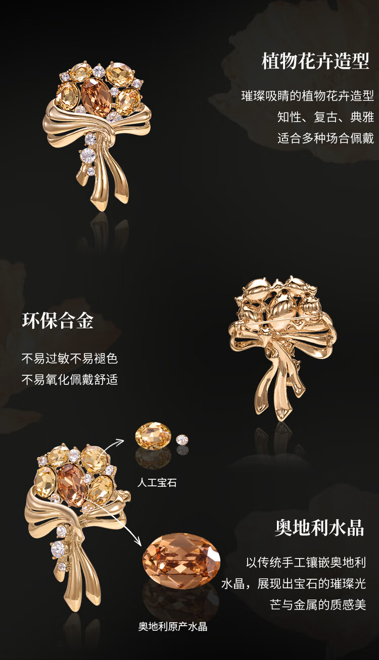 Eternelle French eternal original design Austrian crystal brooch temperament versatile decorative corsage gift champagne color