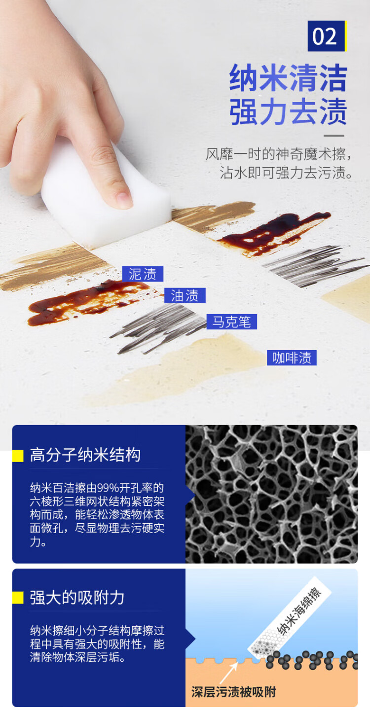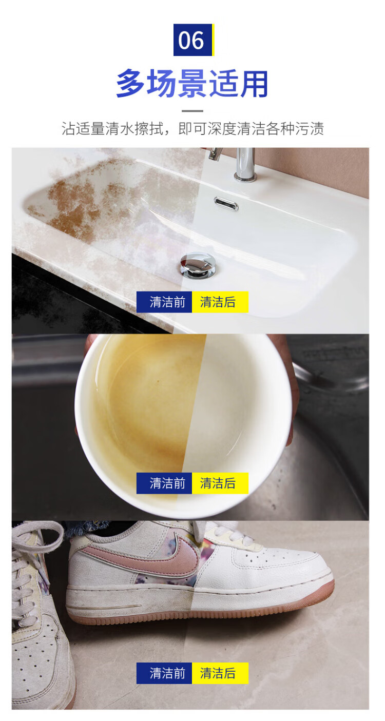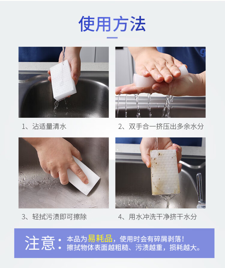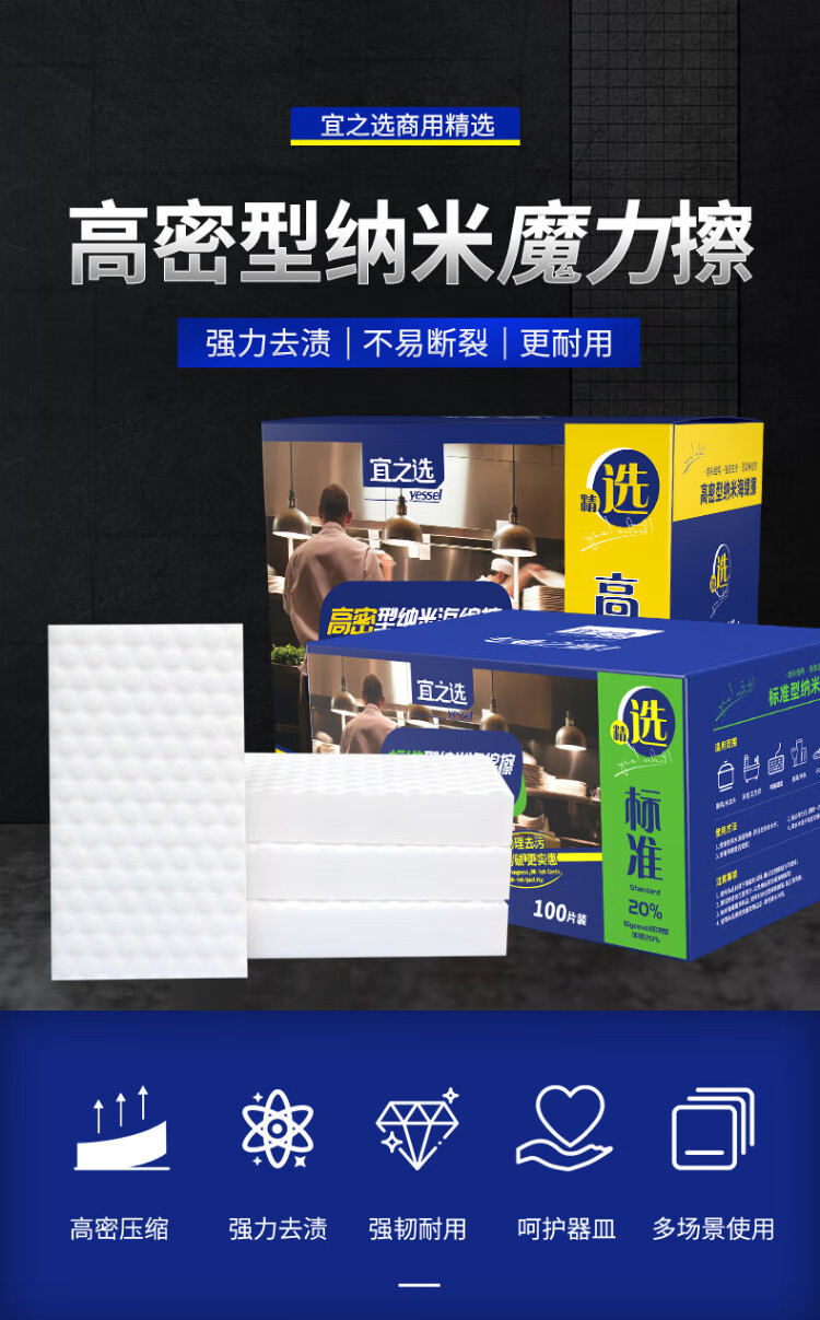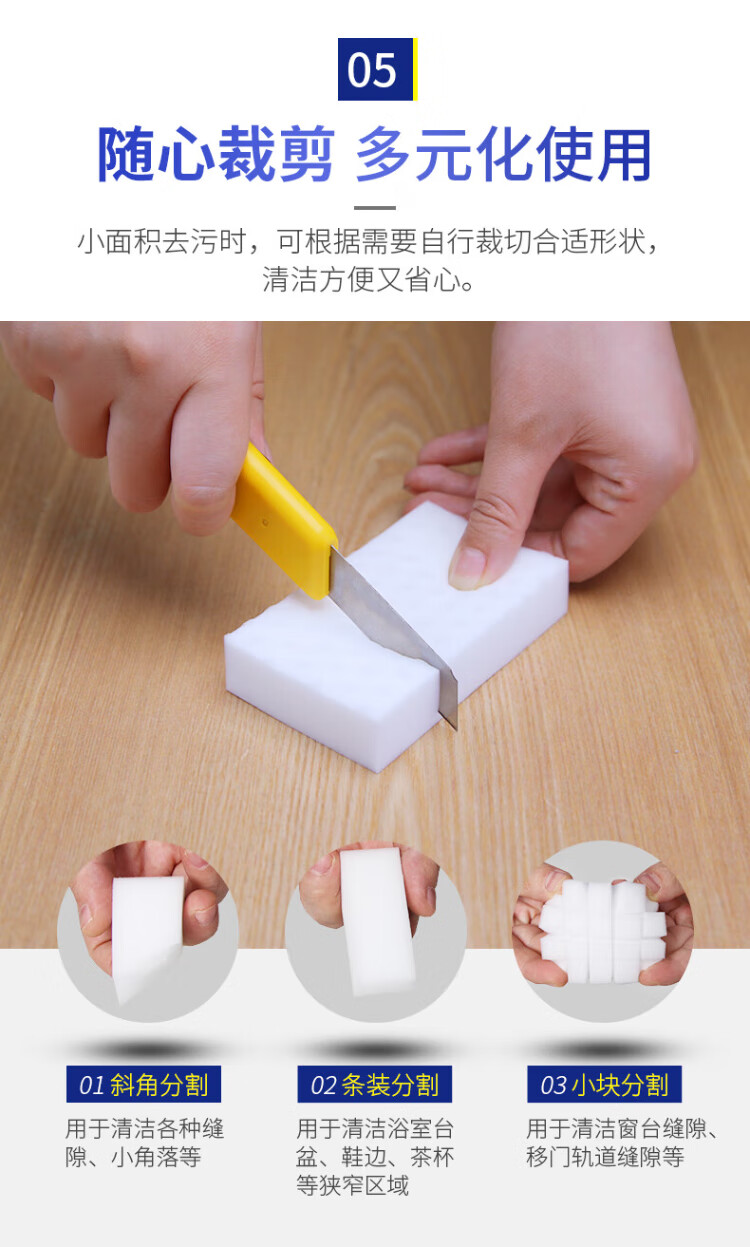 Yizhixuan dishwashing pot magic sponge wipes scouring pad tea stain cleaning and decontamination rag small white shoe scrubbing artifact 96 emery large scouring pad 20 pieces (10*15cm)
