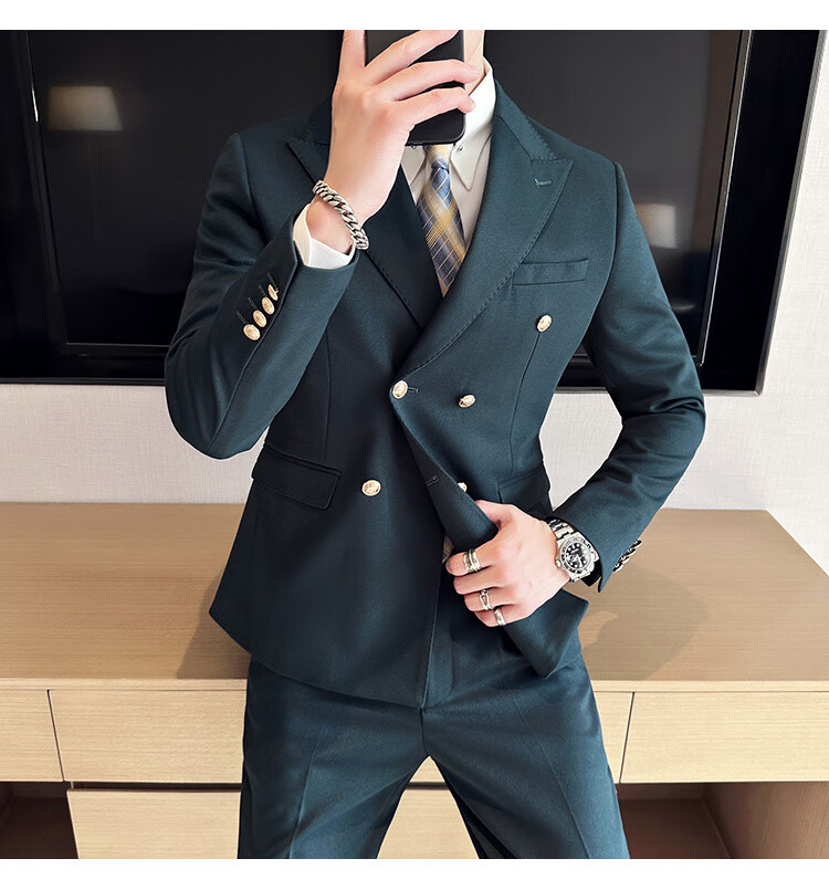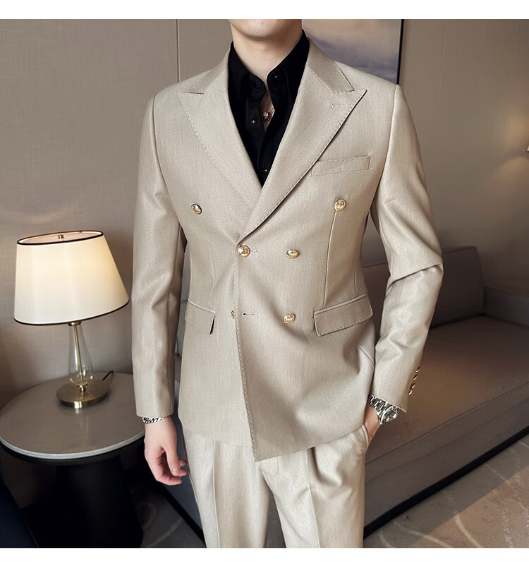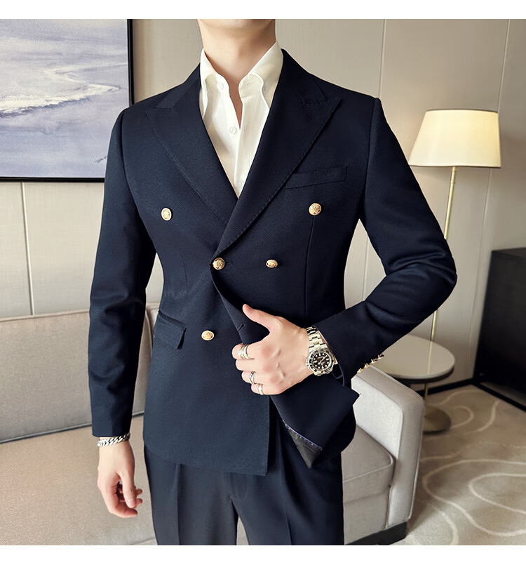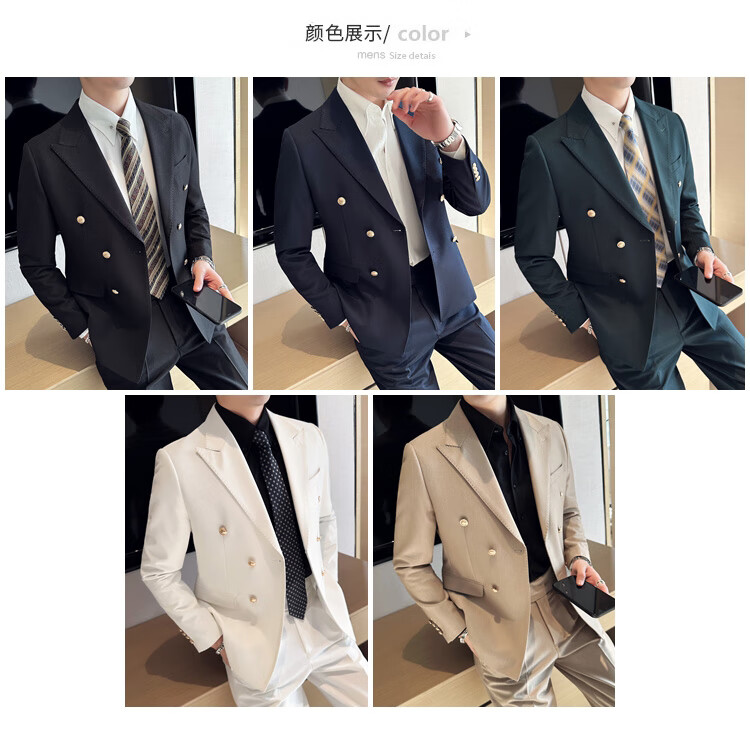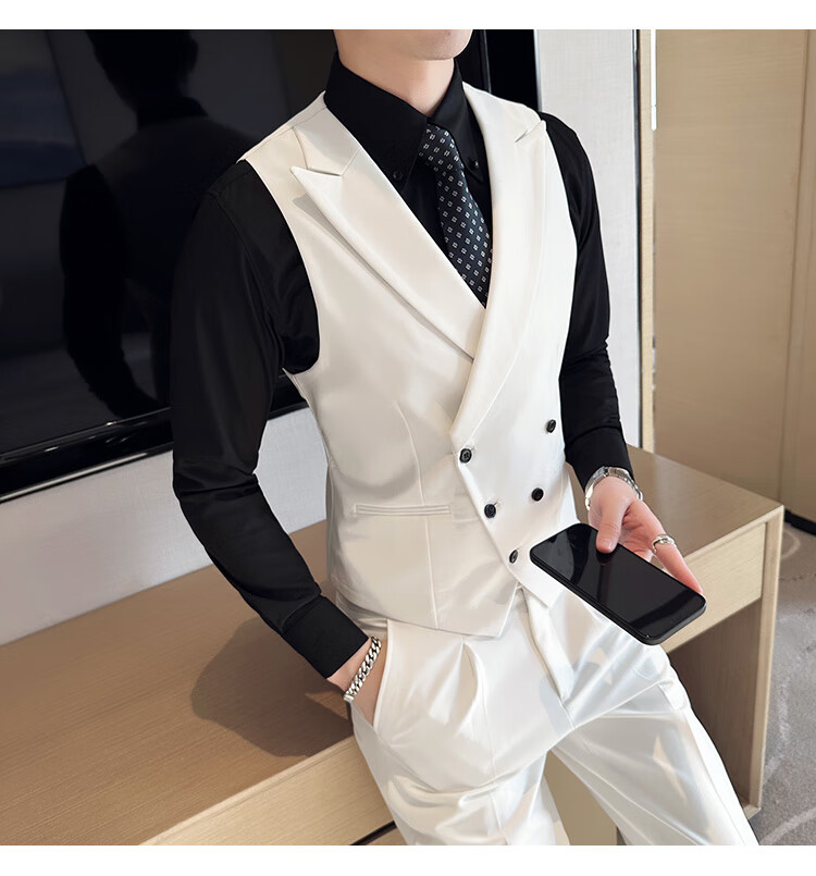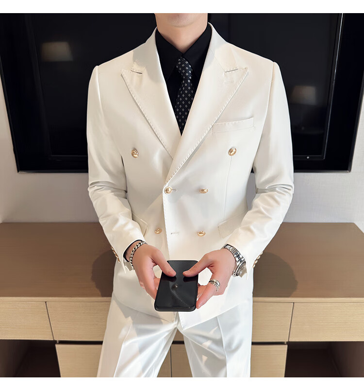 ROMON suit men's suit double-breasted host casual white dress trendy lapel business slim suit three-piece suit white single-piece suit 2XL