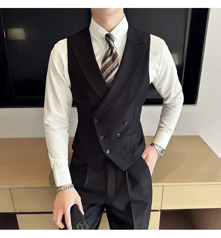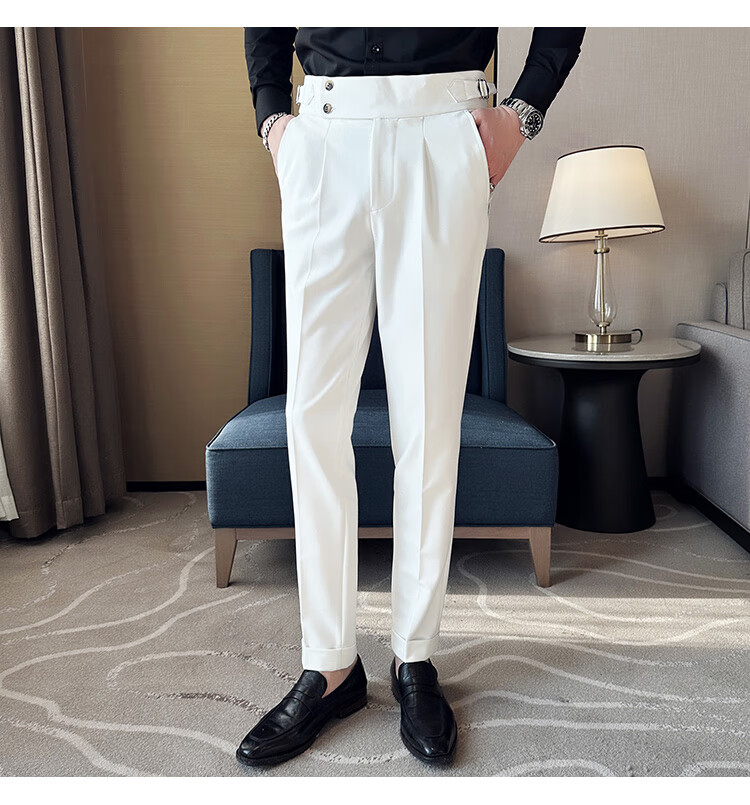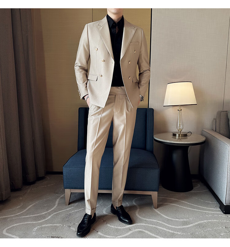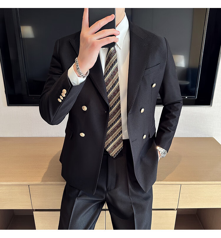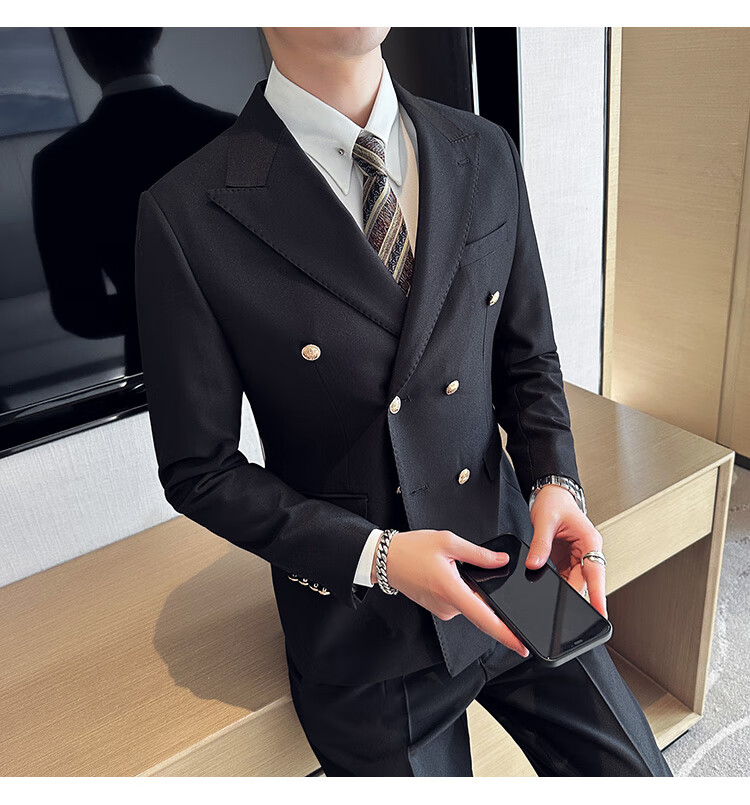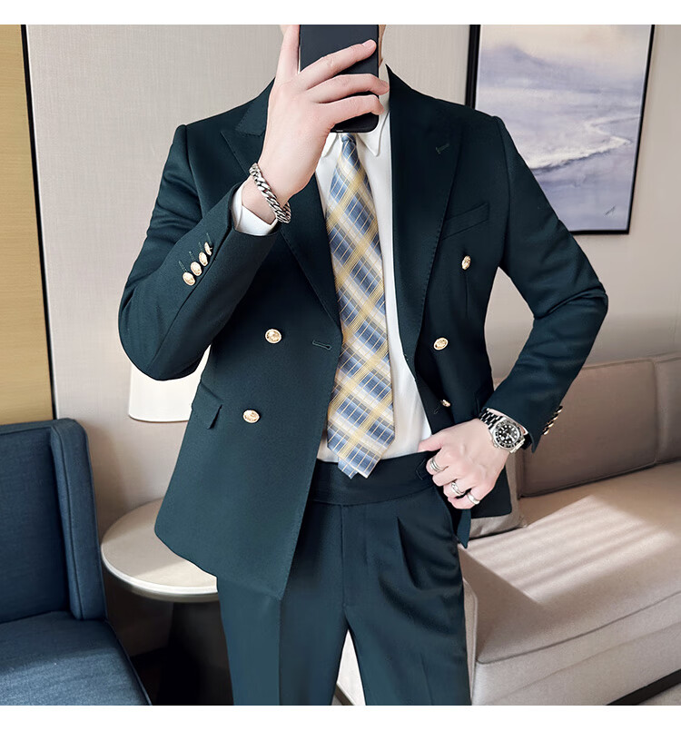 ROMON suit men's suit double-breasted host casual white dress trendy lapel business slim suit three-piece suit white single-piece suit 2XL