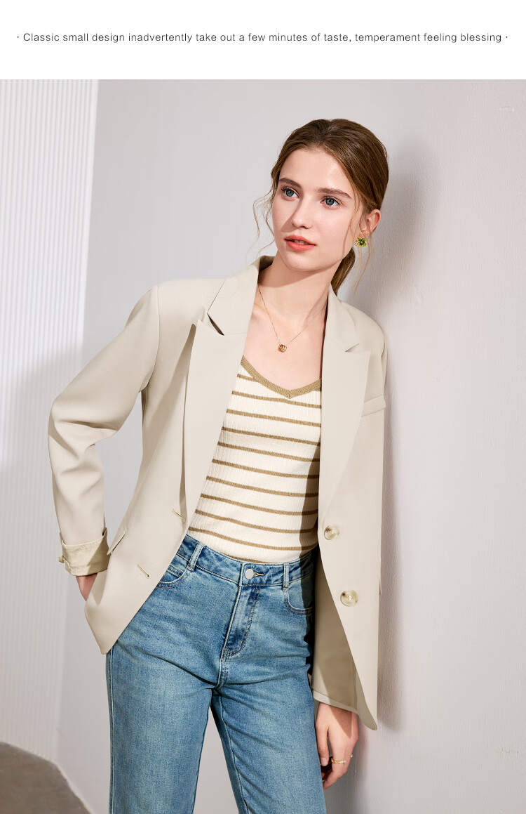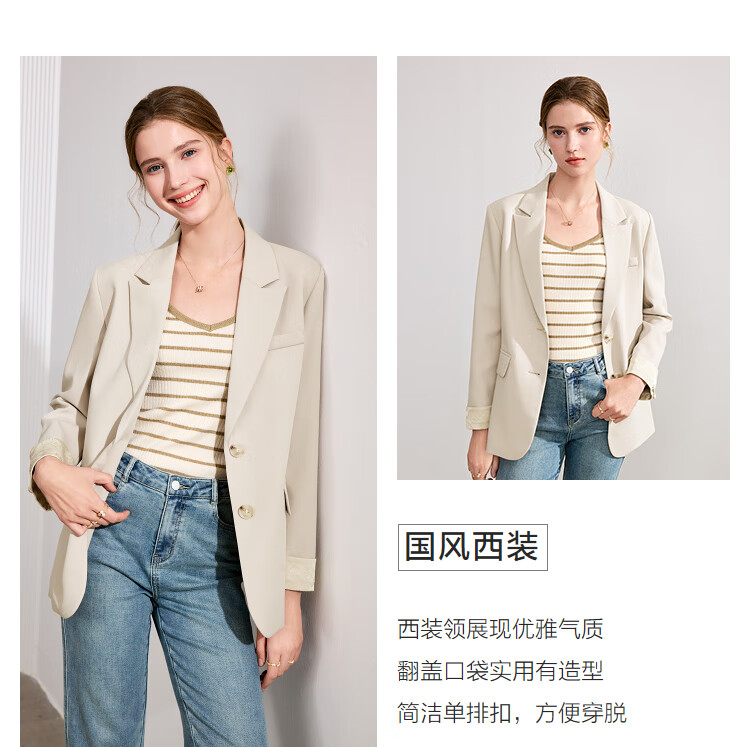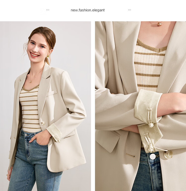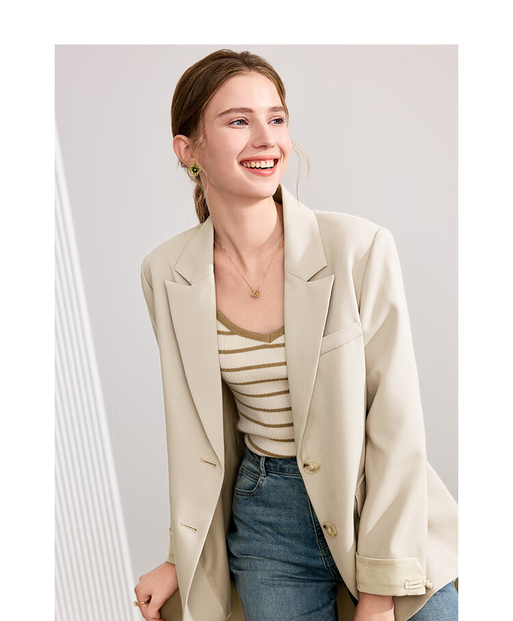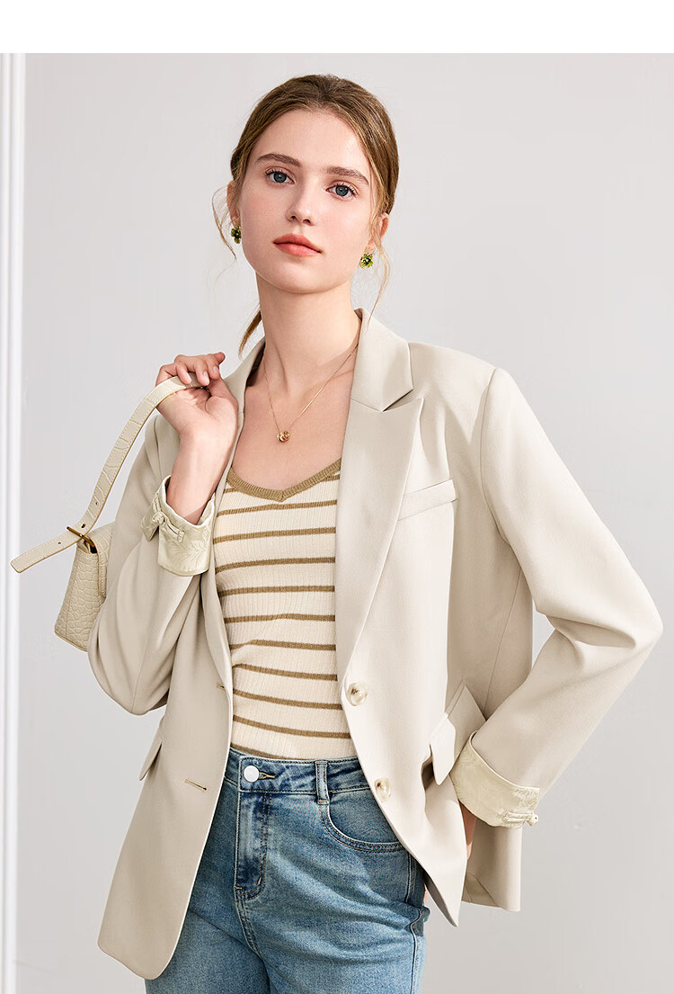 Betu women's autumn new suit national trend cuffs fashionable versatile suit jacket women 2408T60 apricot S