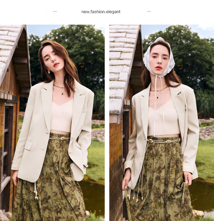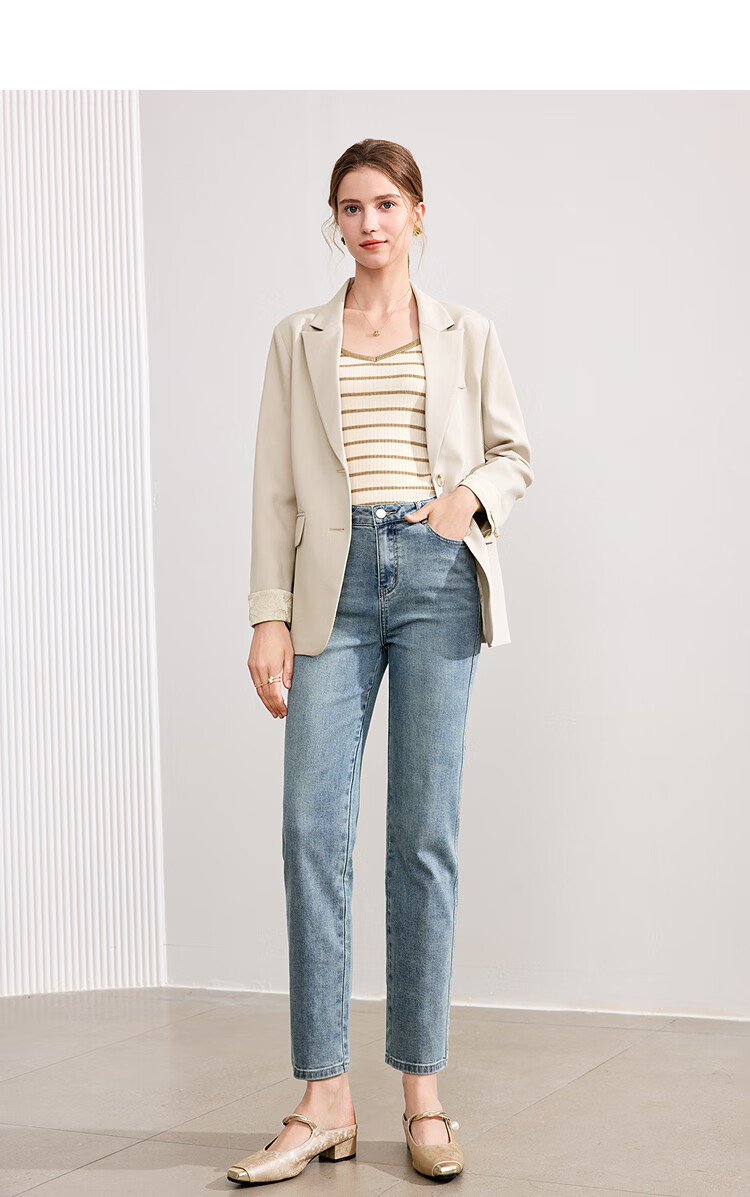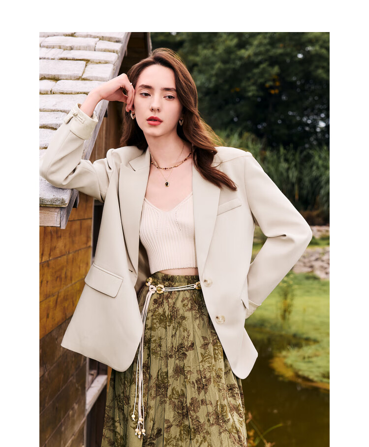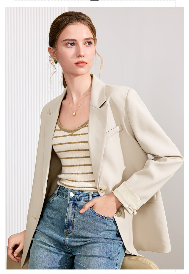 Betu women's autumn new suit national trend cuffs fashionable versatile suit jacket women 2408T60 apricot S