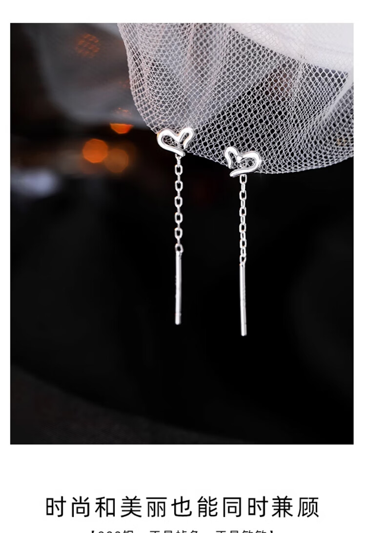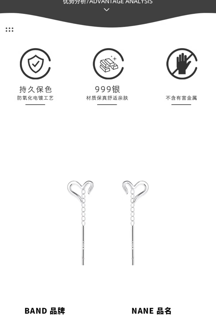 Mansheng pure 999 pure silver line love ear wire women's ear piercing sleep-free niche earrings 2025 new earrings one pair
