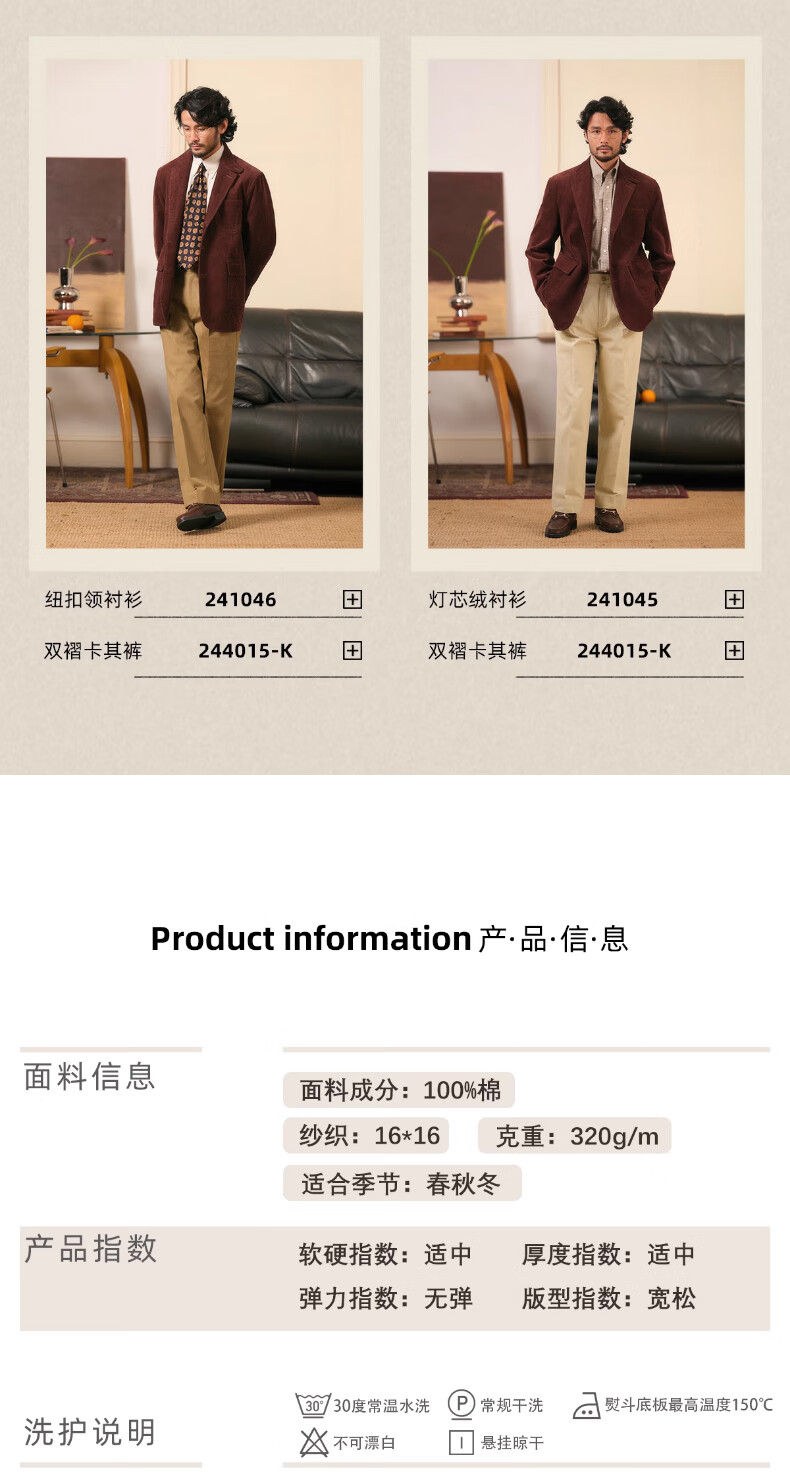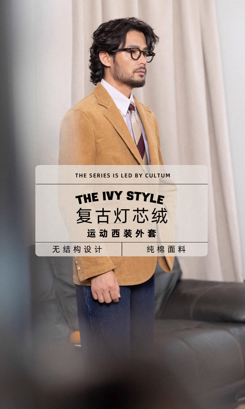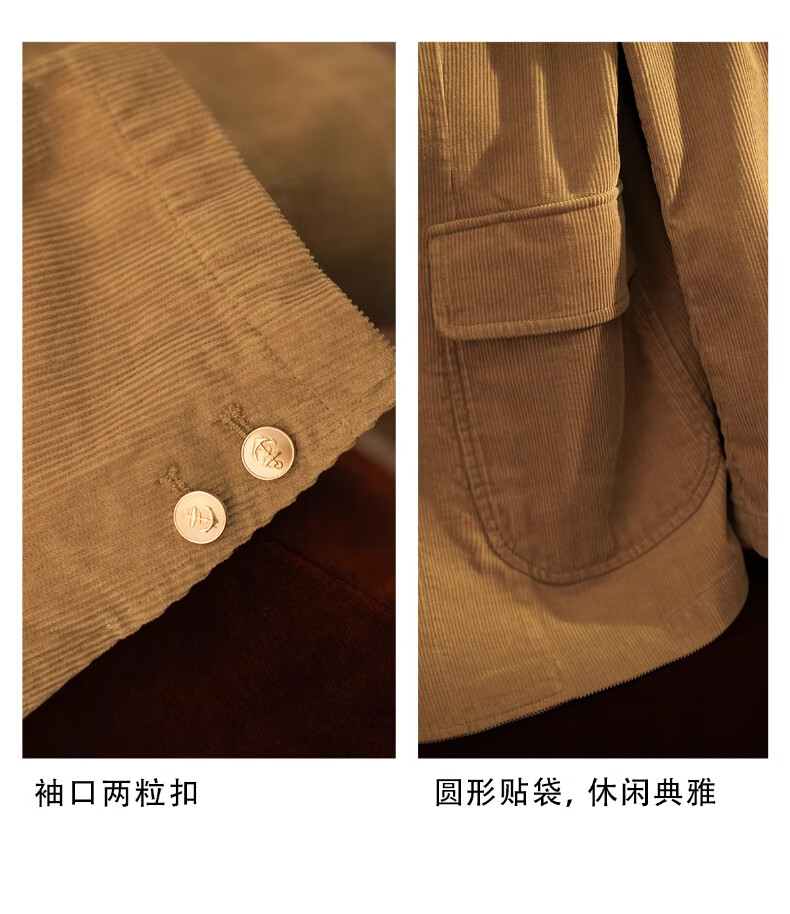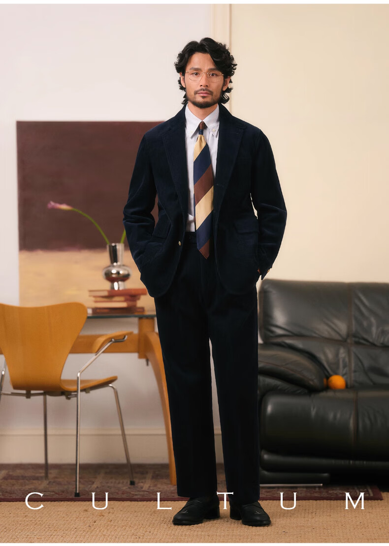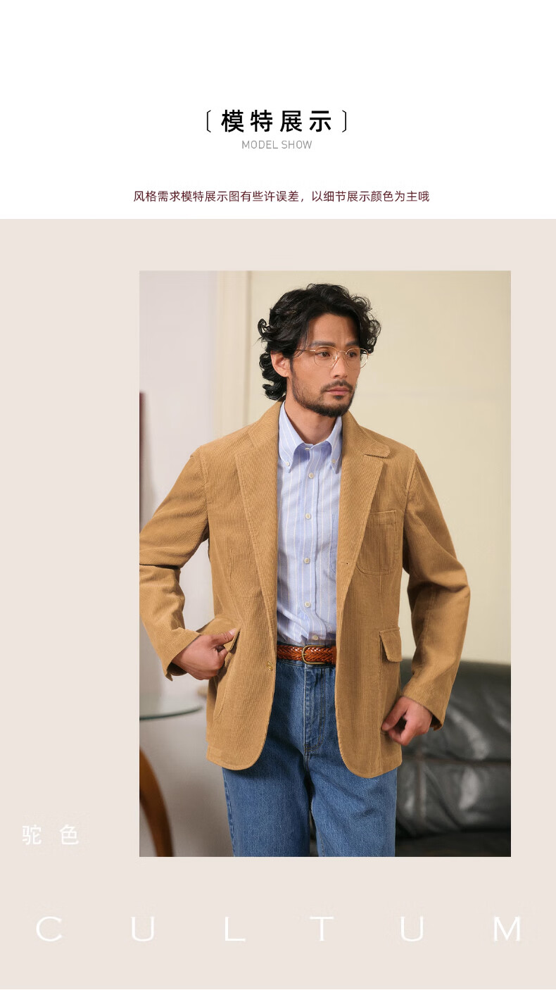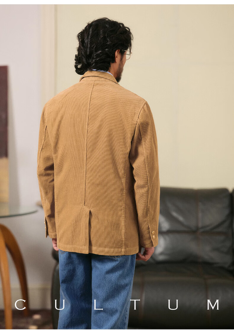 CULTUM pure cotton corduroy business casual suit men's retro unlined jacket jacket suit brown red 180A /52A