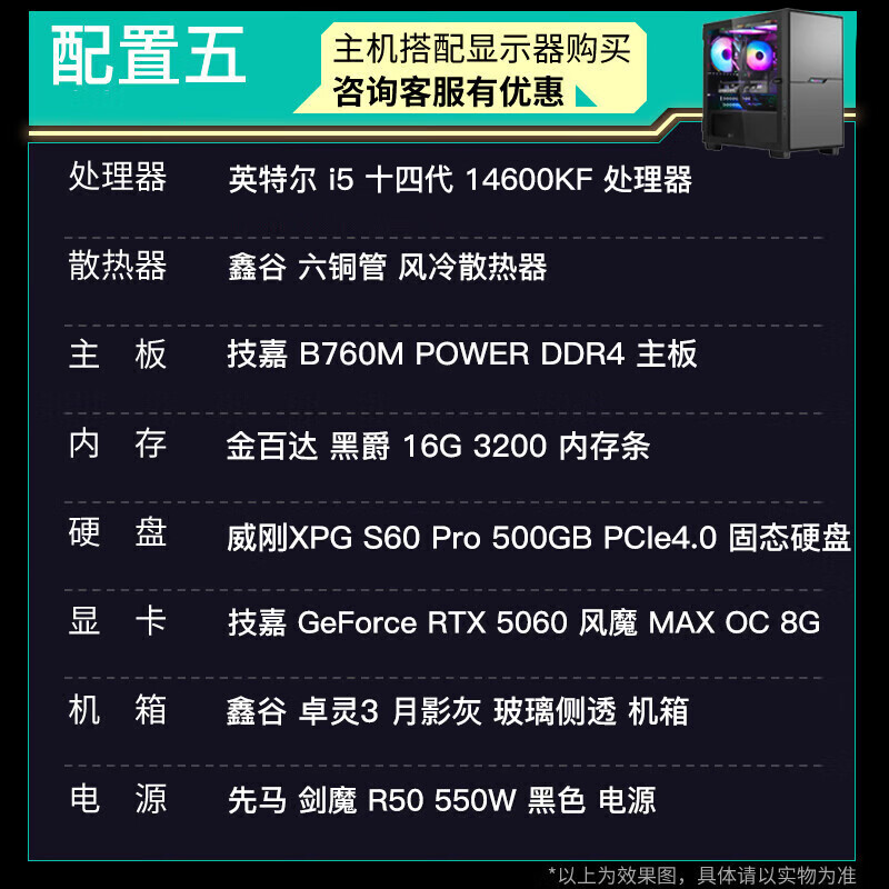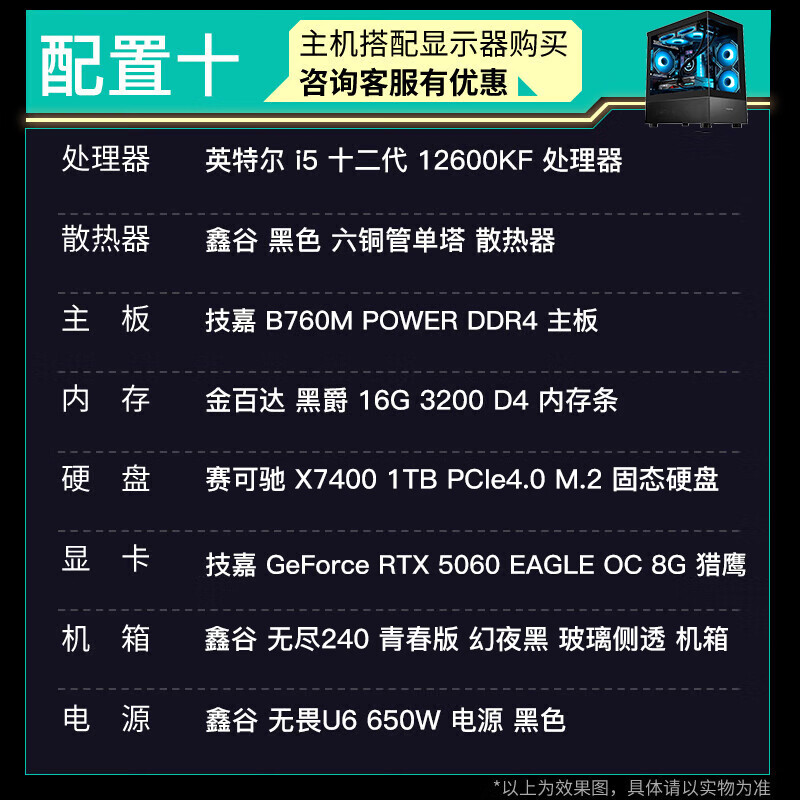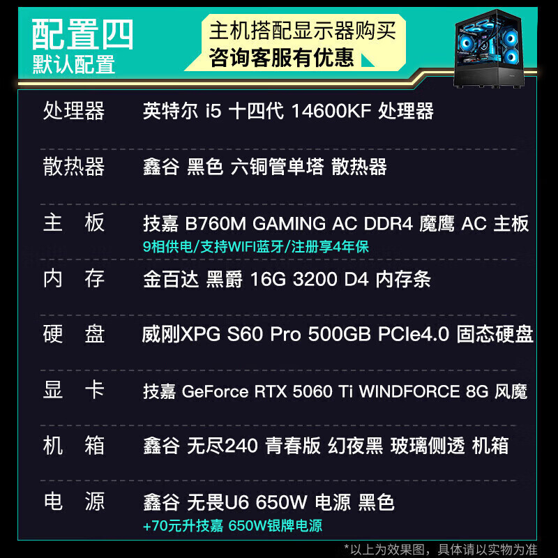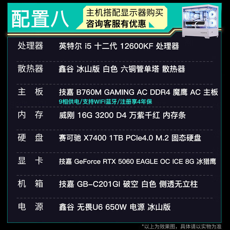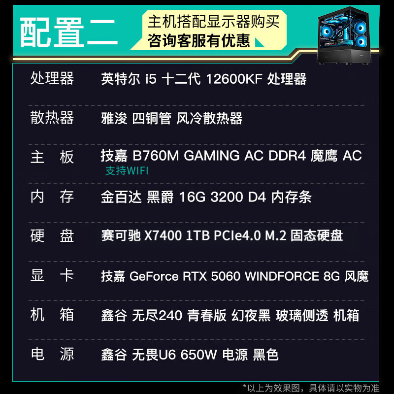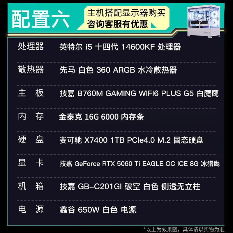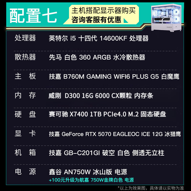 GIGABYTE 24-issue interest-free host i5 14600KF/RTX5060/RTX5060Ti/RTX5070 sea view room desktop computer host e-sports game AI live broadcast DIY assembly machine with one 12400F+RTX5050