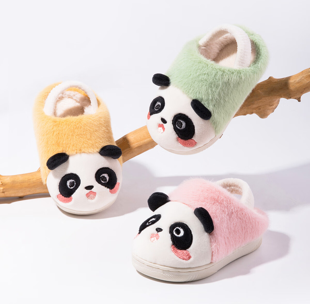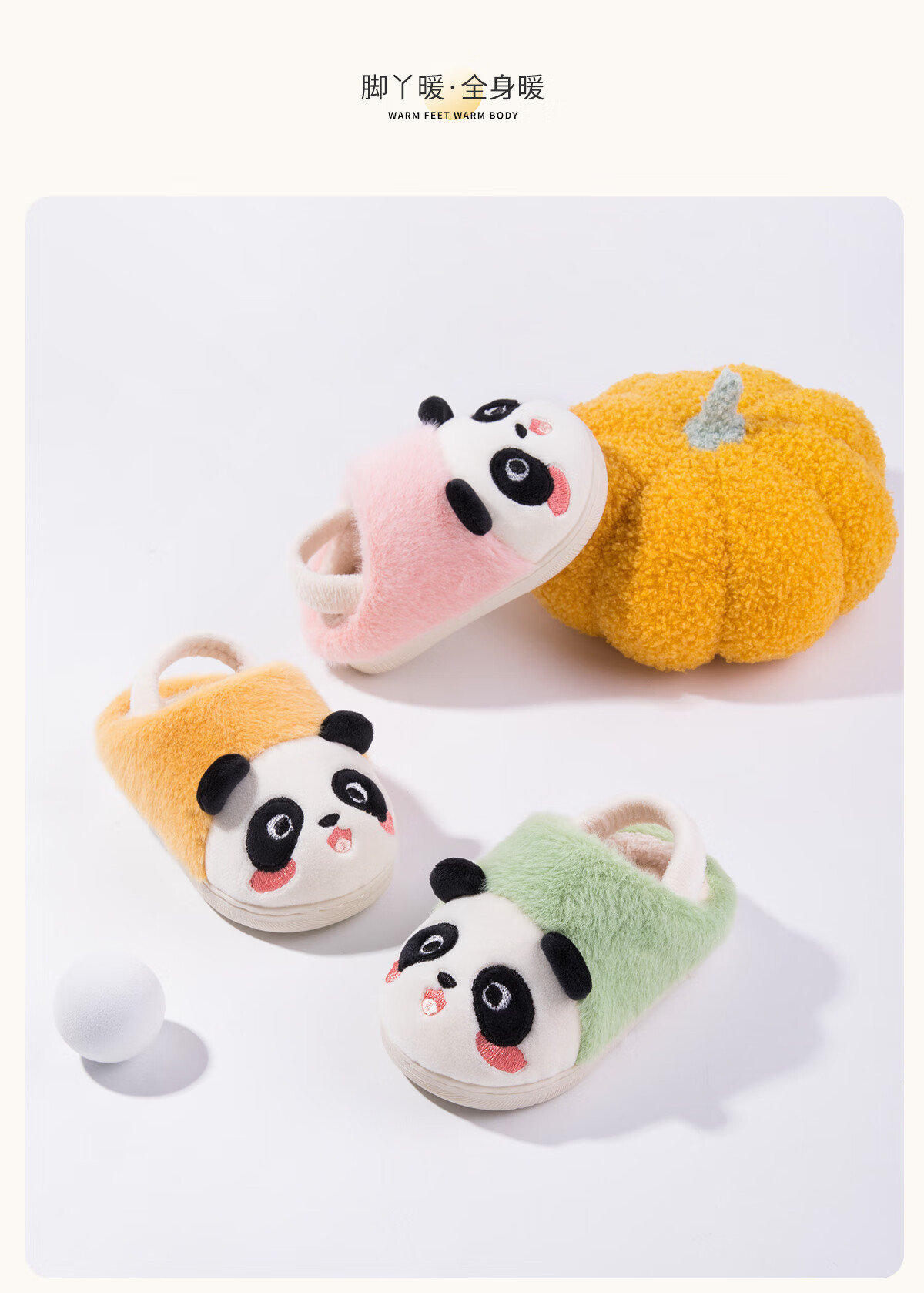 Fawn Mili 2024 Winter Cute Panda Strap Cotton Slippers Red Panda Velvet Yellow 140mm Inner Length 13