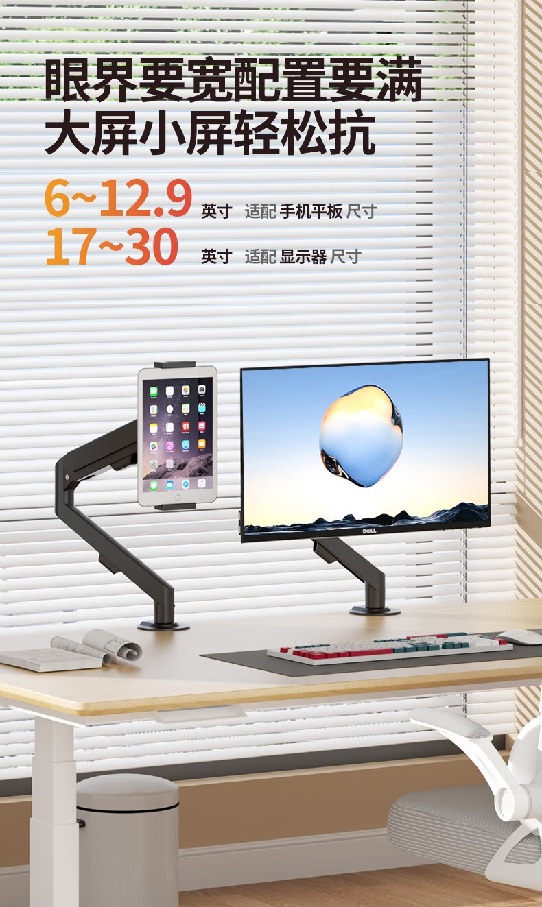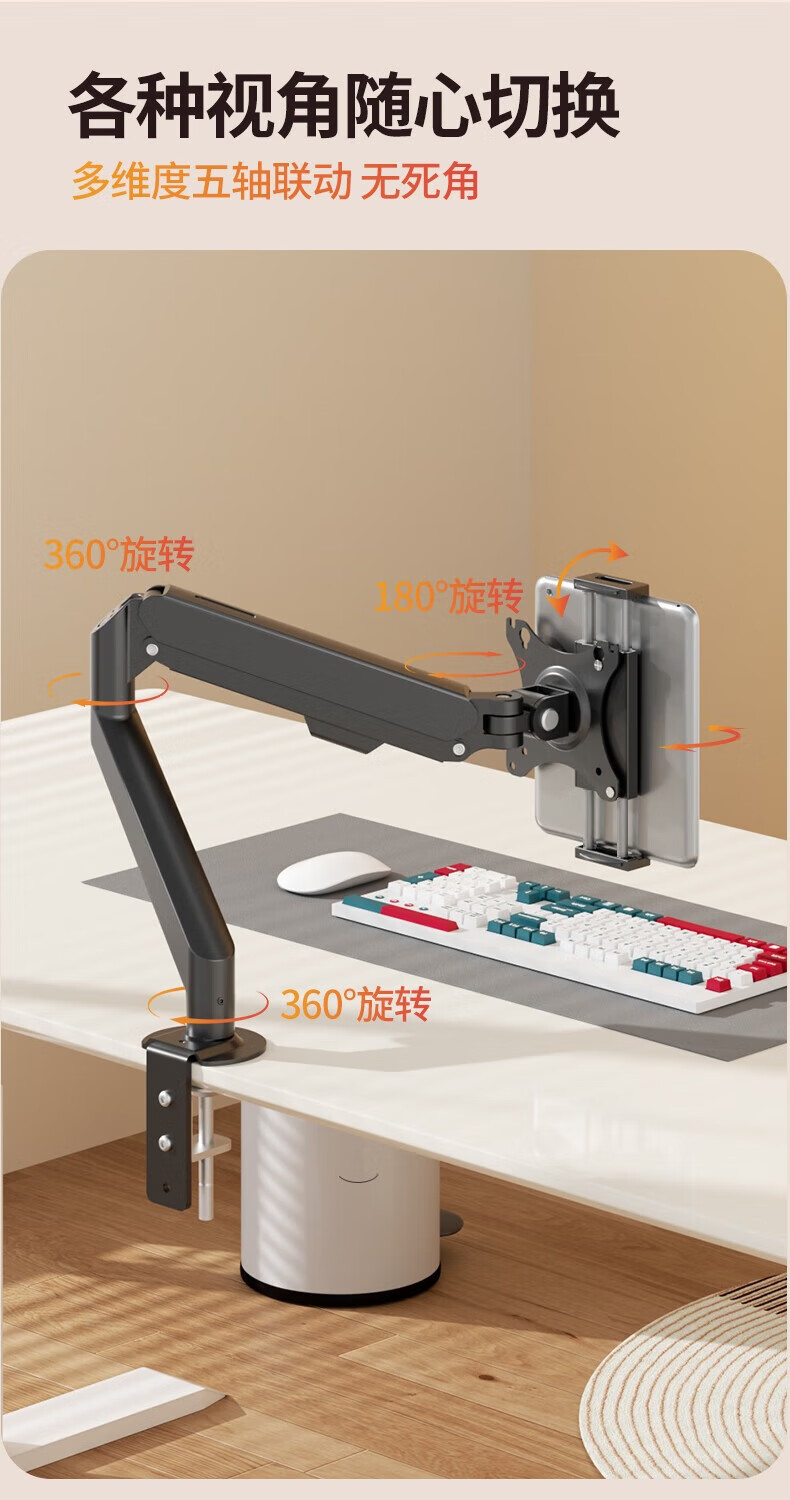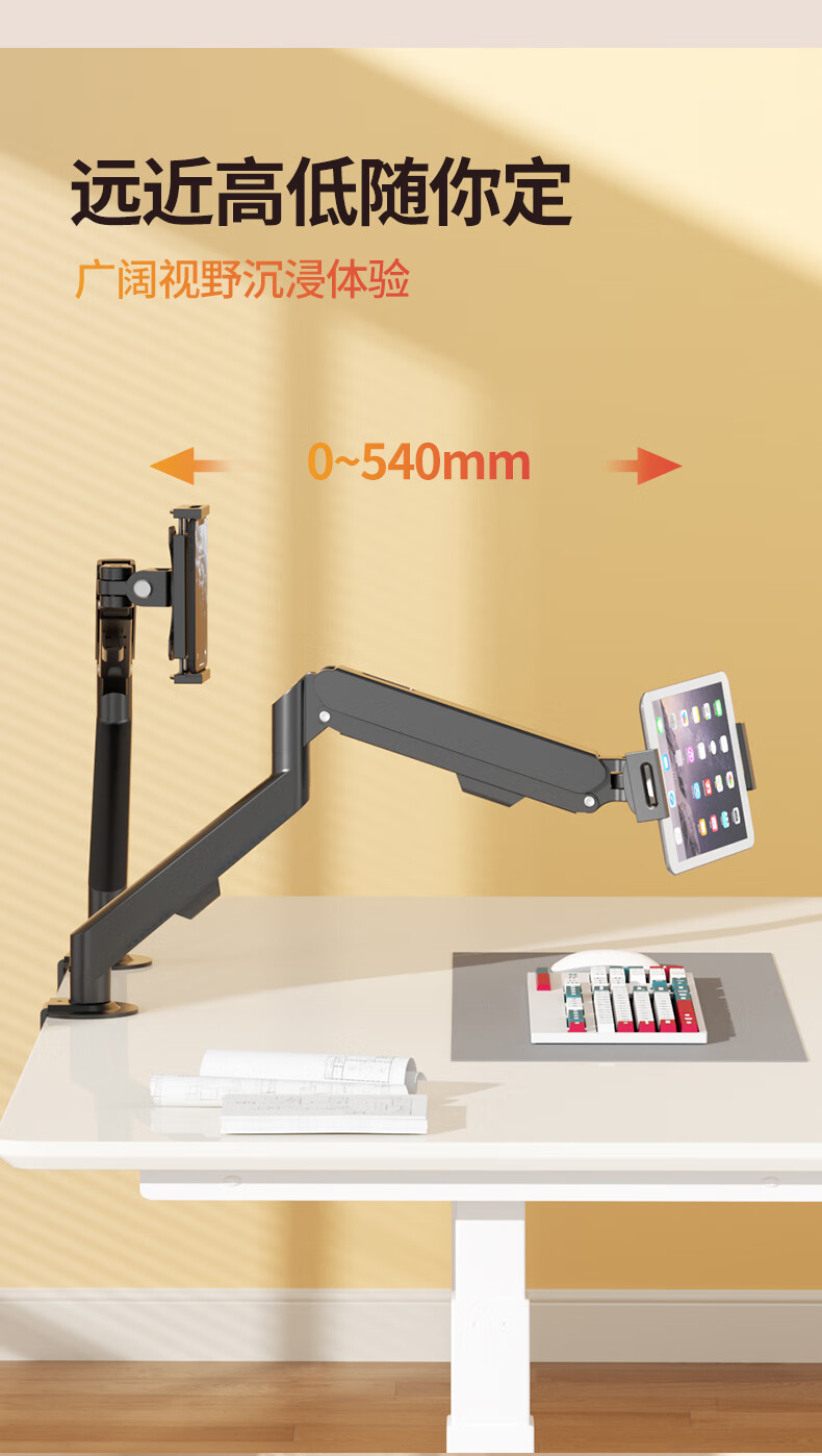Haoyisheng mobile phone and tablet computer stand desktop lifting and rotating cantilever stand PAD portable screen universal shelf table clamp perforation dual-purpose horizontal and vertical switch far and near stretch bracket universal mobile phone tablet / air pressure bracket / table clamp perforation dual use