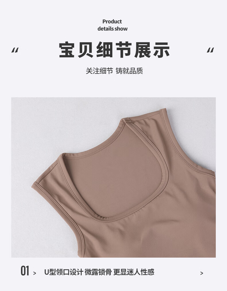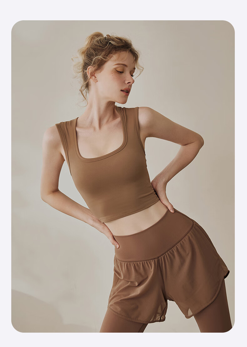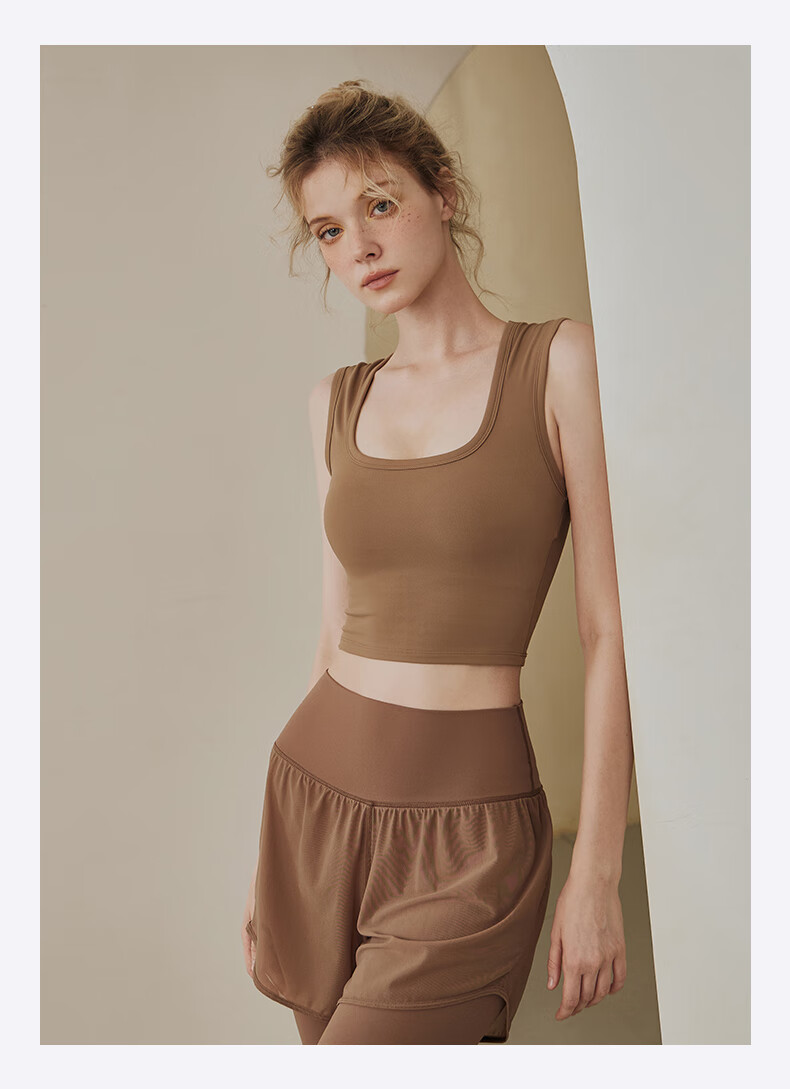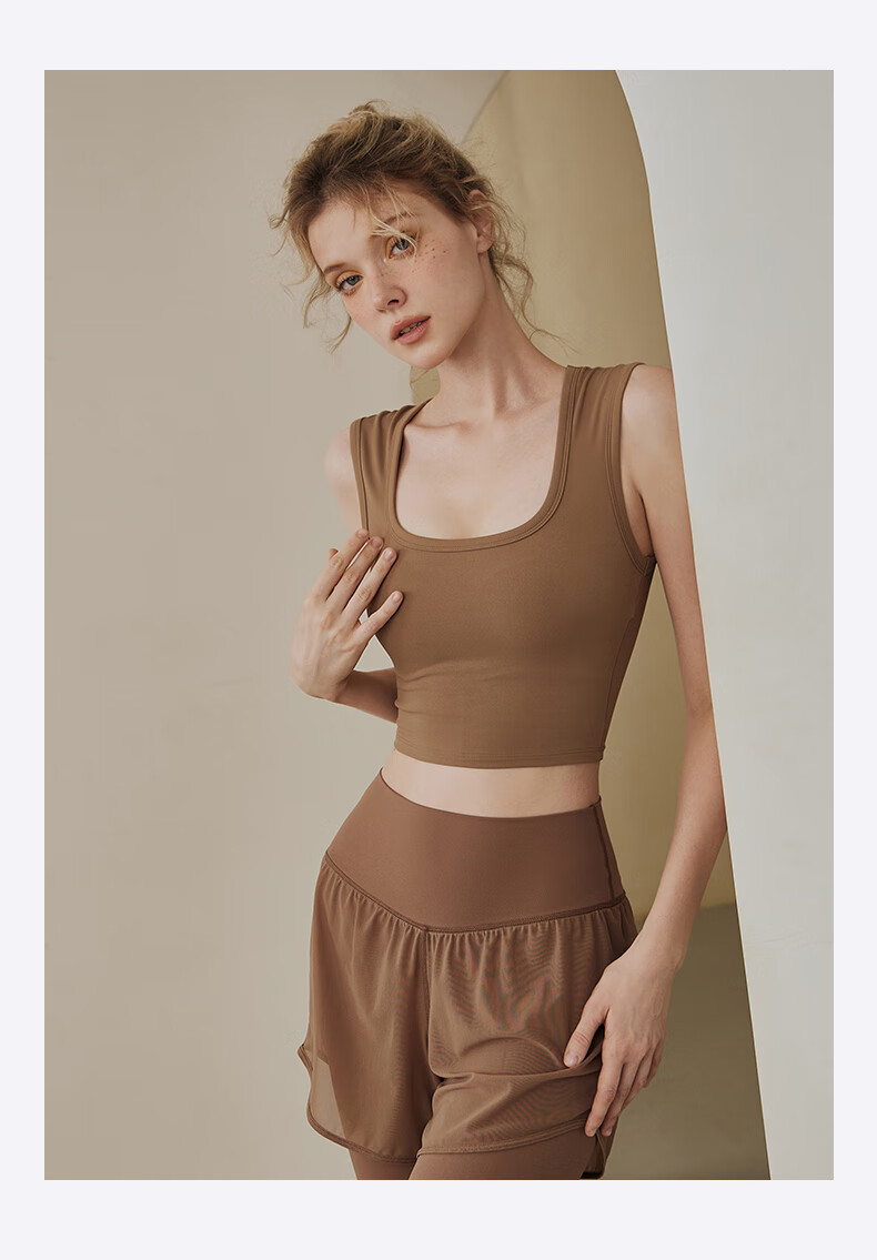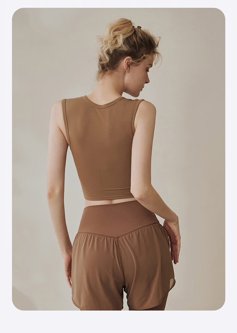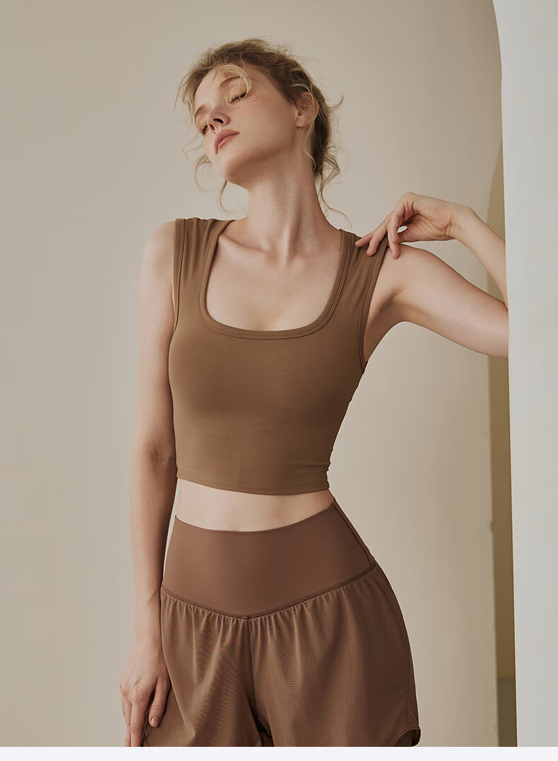 LULUUVTTOH sports vest with chest pad for women shock-proof running quick-drying fitness high-intensity Pilates training yoga top bra cocoa M