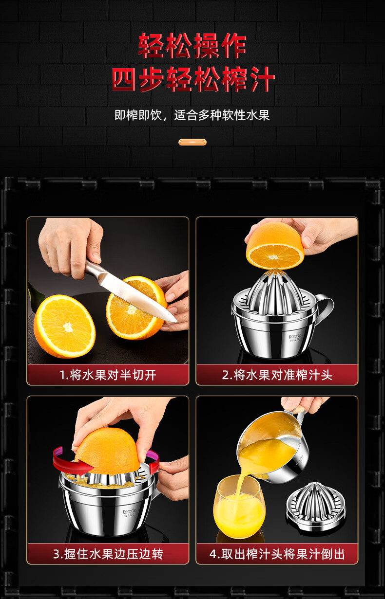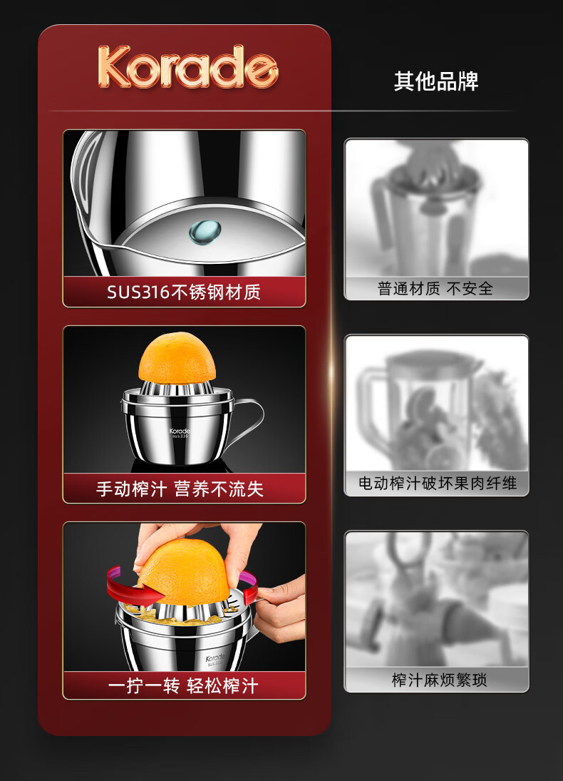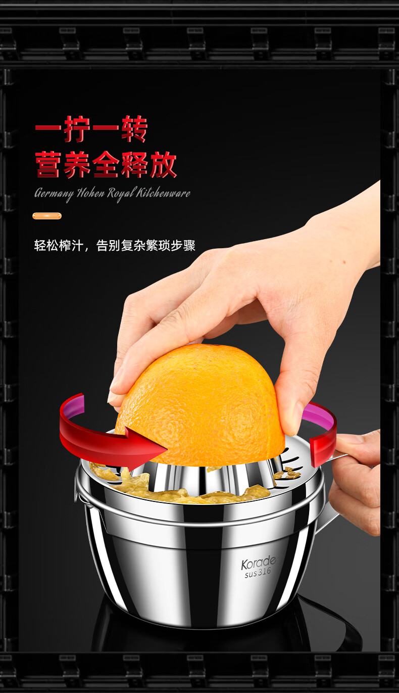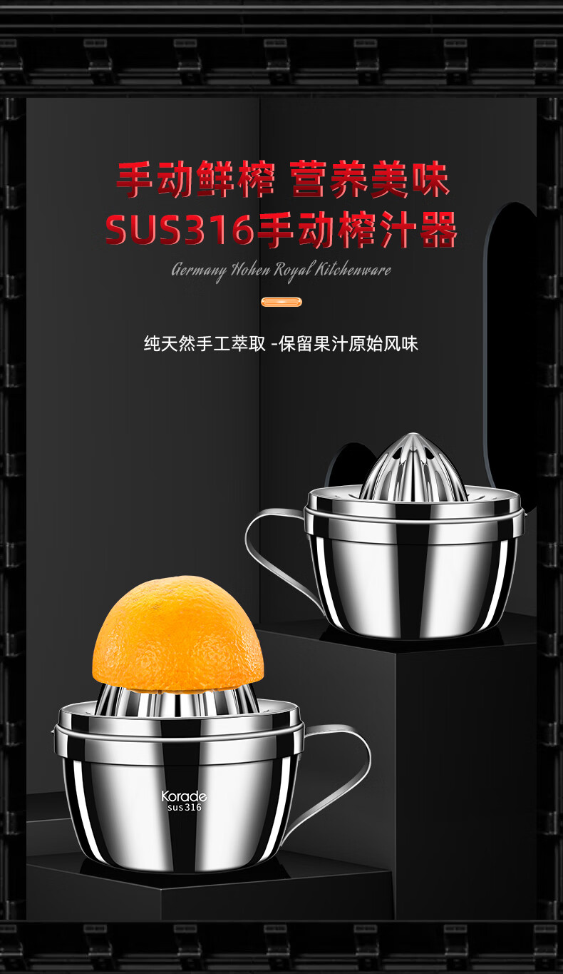 Korade316 stainless steel manual juicer fruit juicer orange lemon special juicer fried orange juice press 316 steel juice cup