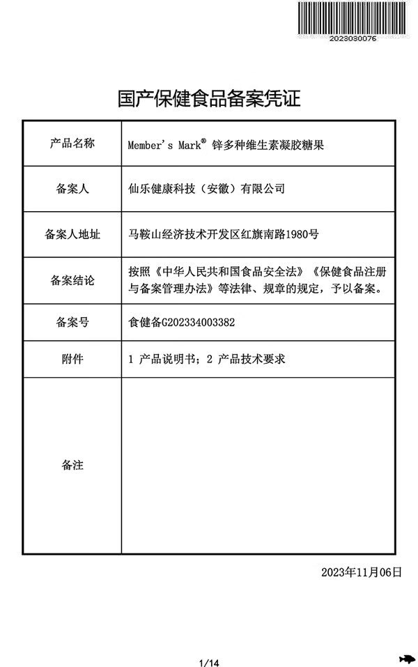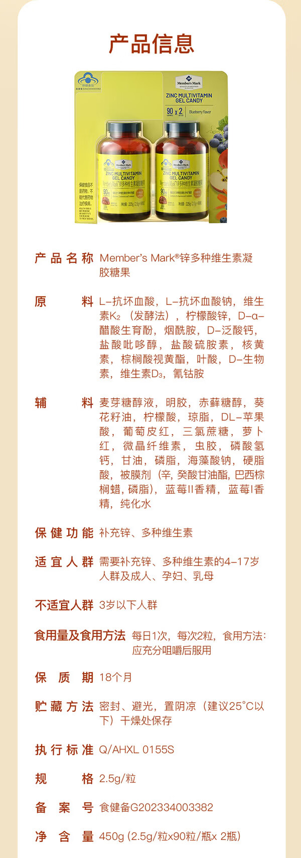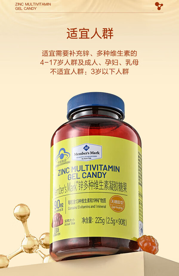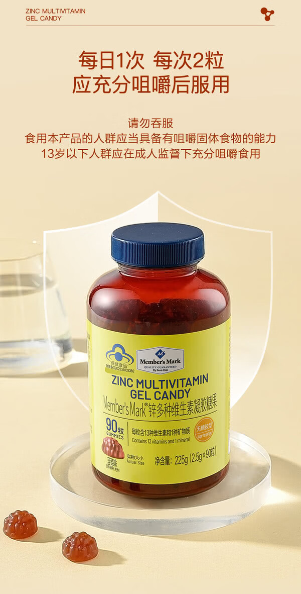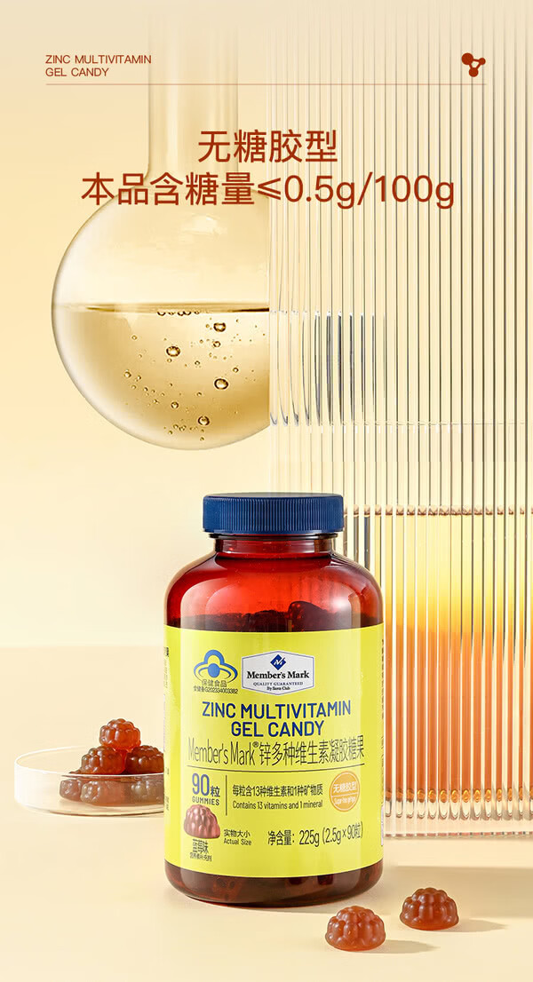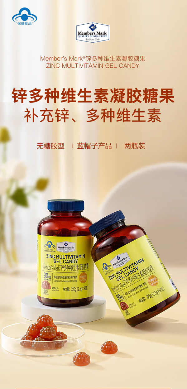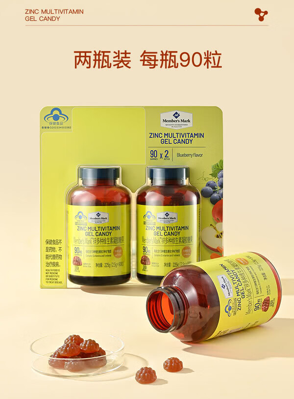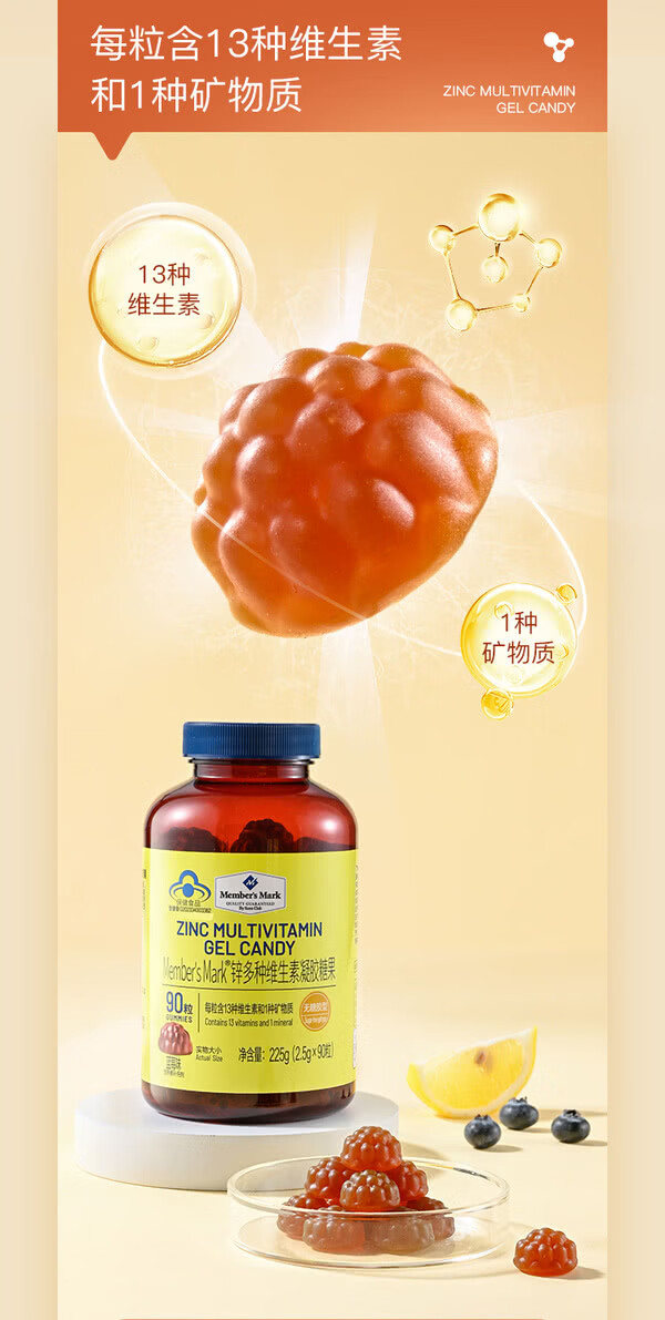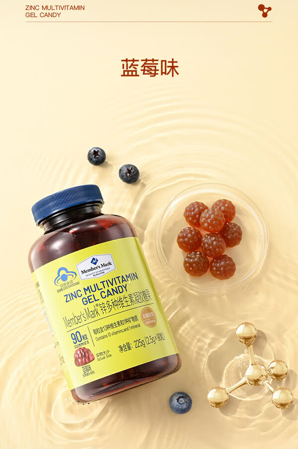 MEMBER S MARK zinc multivitamin gel candy Each capsule contains 13 vitamins and 1 mineral sugar-free gum blueberry flavor Zinc multivitamin gel candy 225g*1