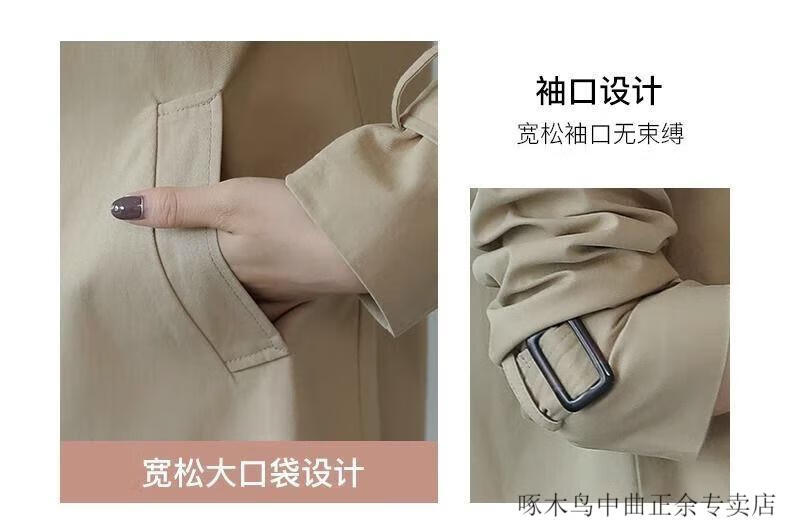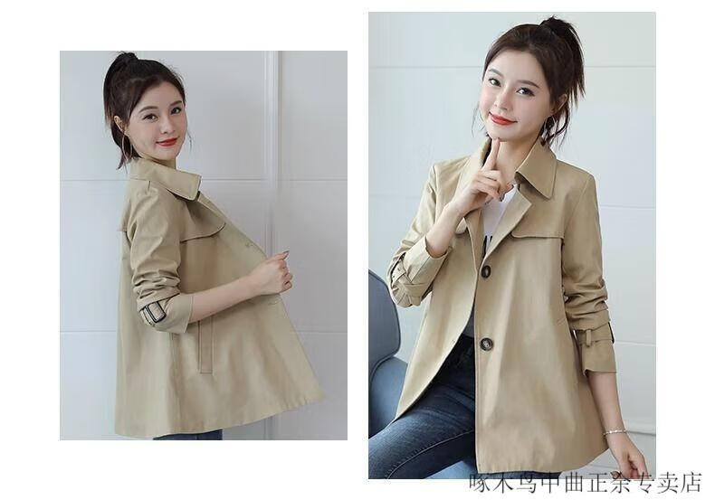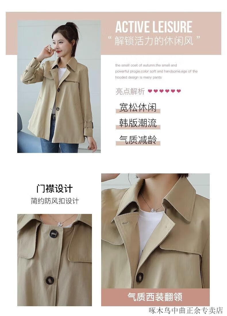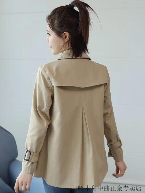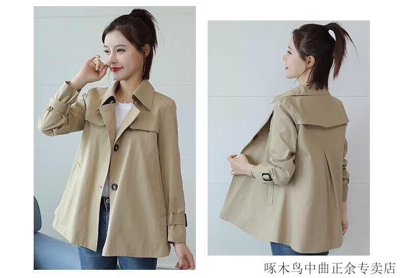 Woodpecker short windbreaker for women petite 2024 new spring and autumn Korean style temperament and style women's khaki windbreaker jacket khaki version with lining L Recommendation 106-120