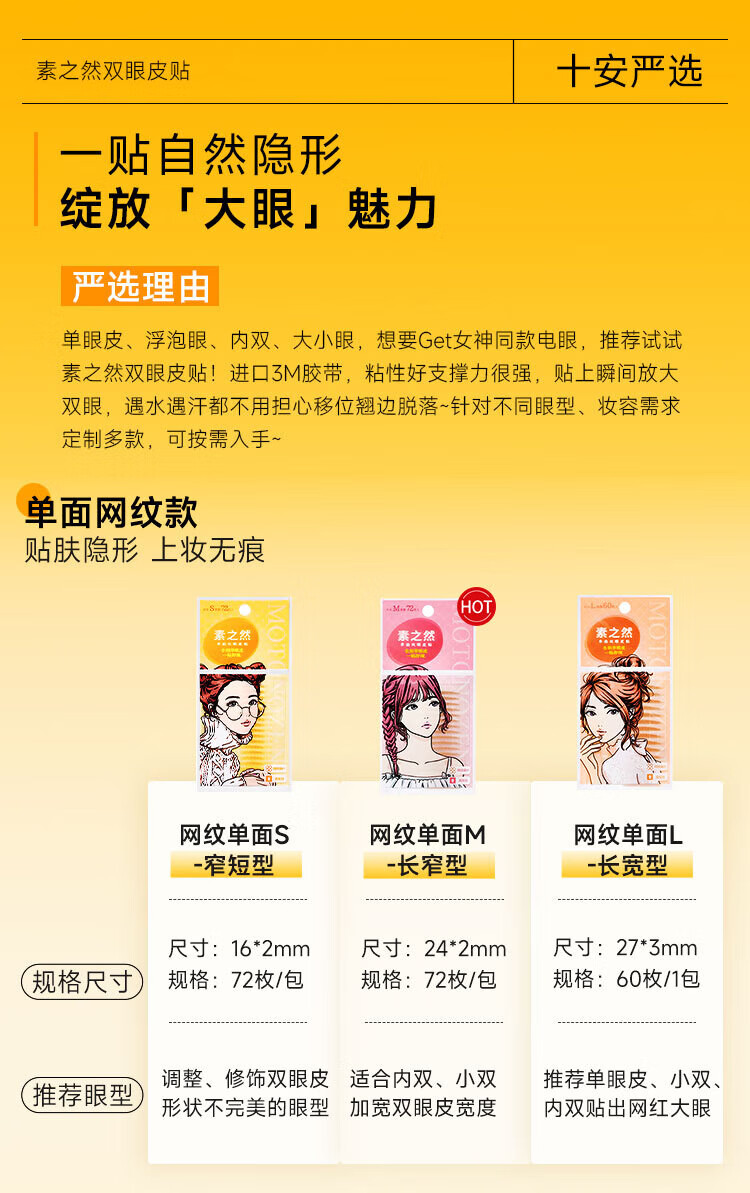 Suzhiran double eyelid patch, invisible natural lace, traceless, transparent, thin, single and double-sided, for men and women with beautiful eyes, swollen eyes, transparent double-sided L 72 pieces