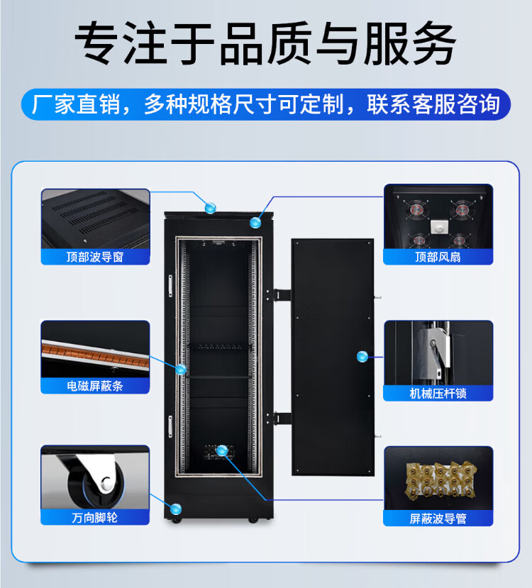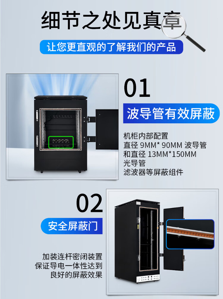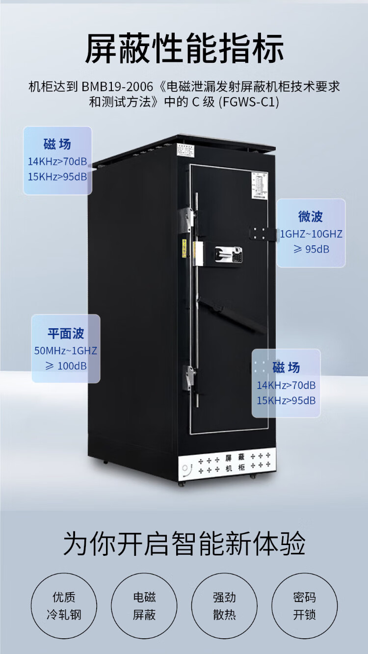 Zhongyue Bohua Data Center C-class electromagnetic shielding cabinet switch intelligent network server information confidentiality anti-leakage cabinet 16U height 1000*width 700*depth 700mm