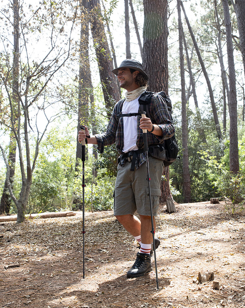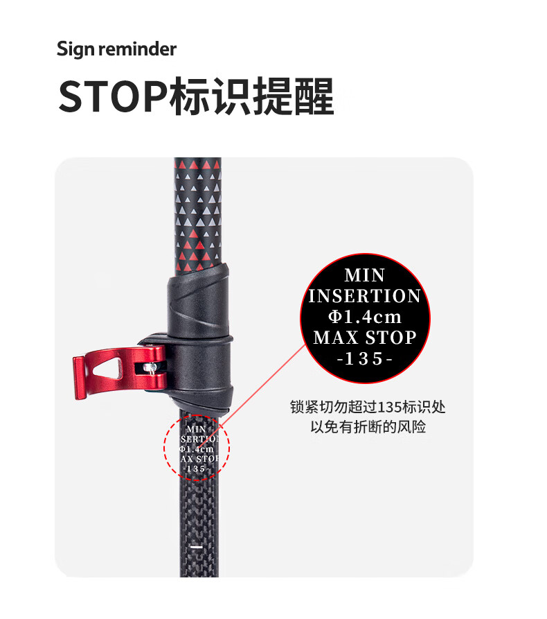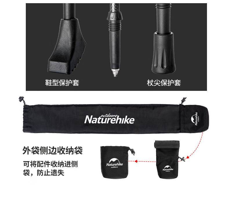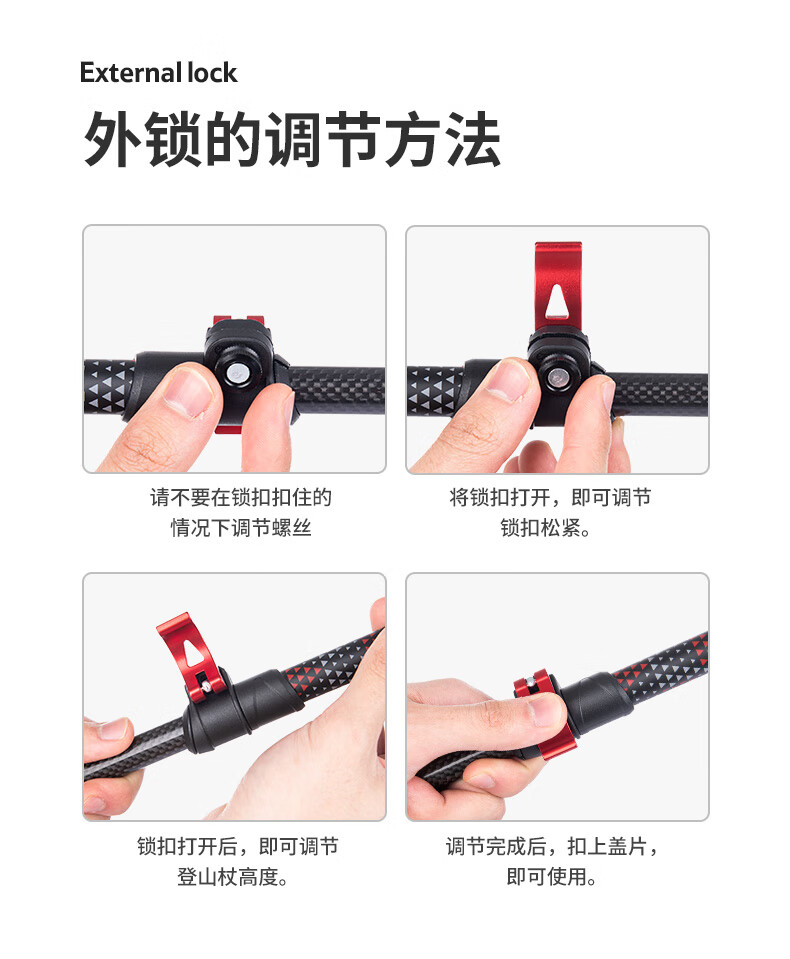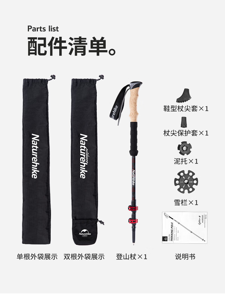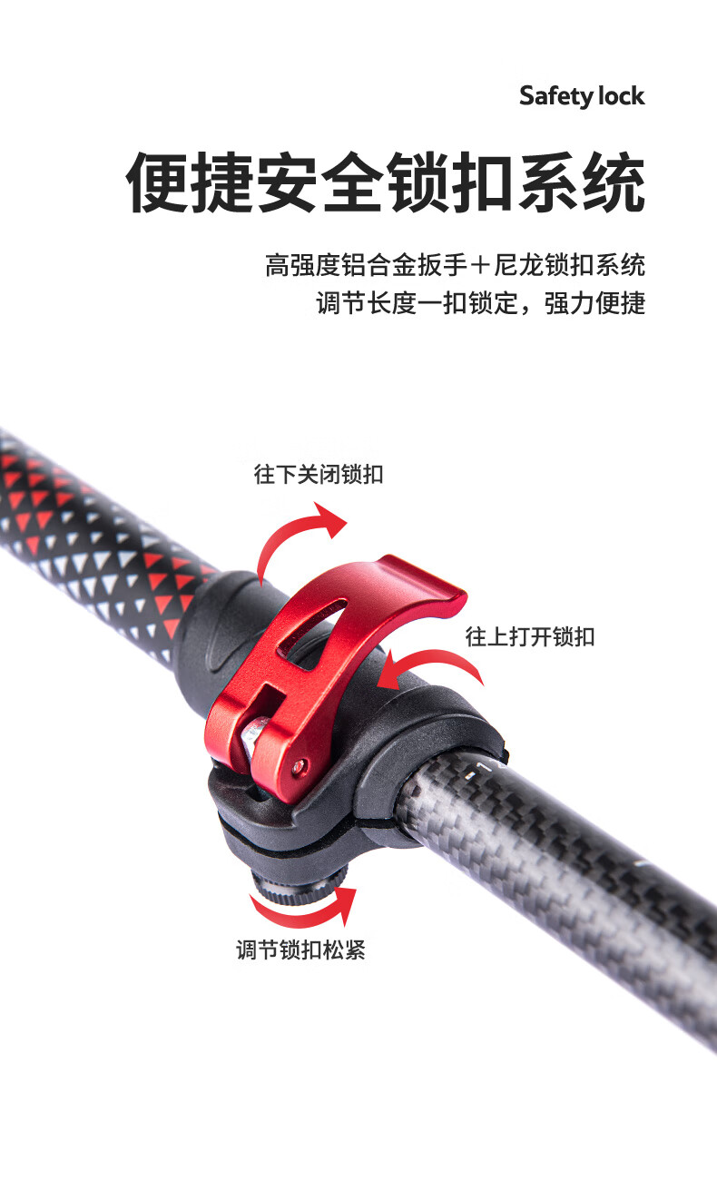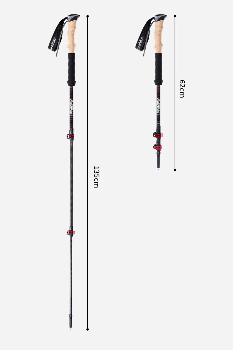 Nok trekking pole carbon ultra-light telescopic outdoor mountaineering non-slip carbon fiber crutch cane far wind blazing red - single pack - free storage bag