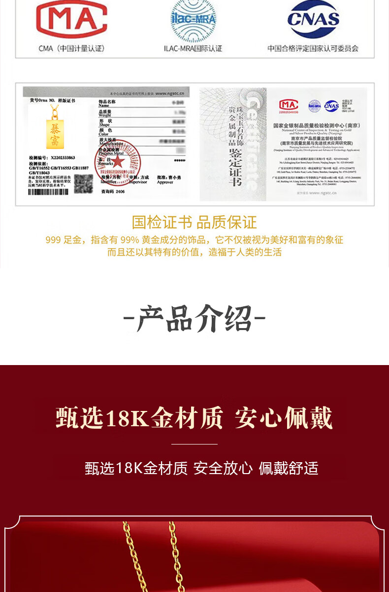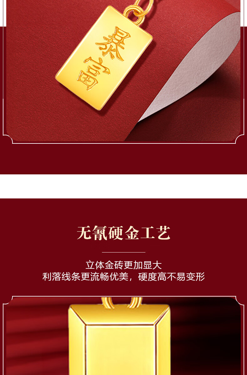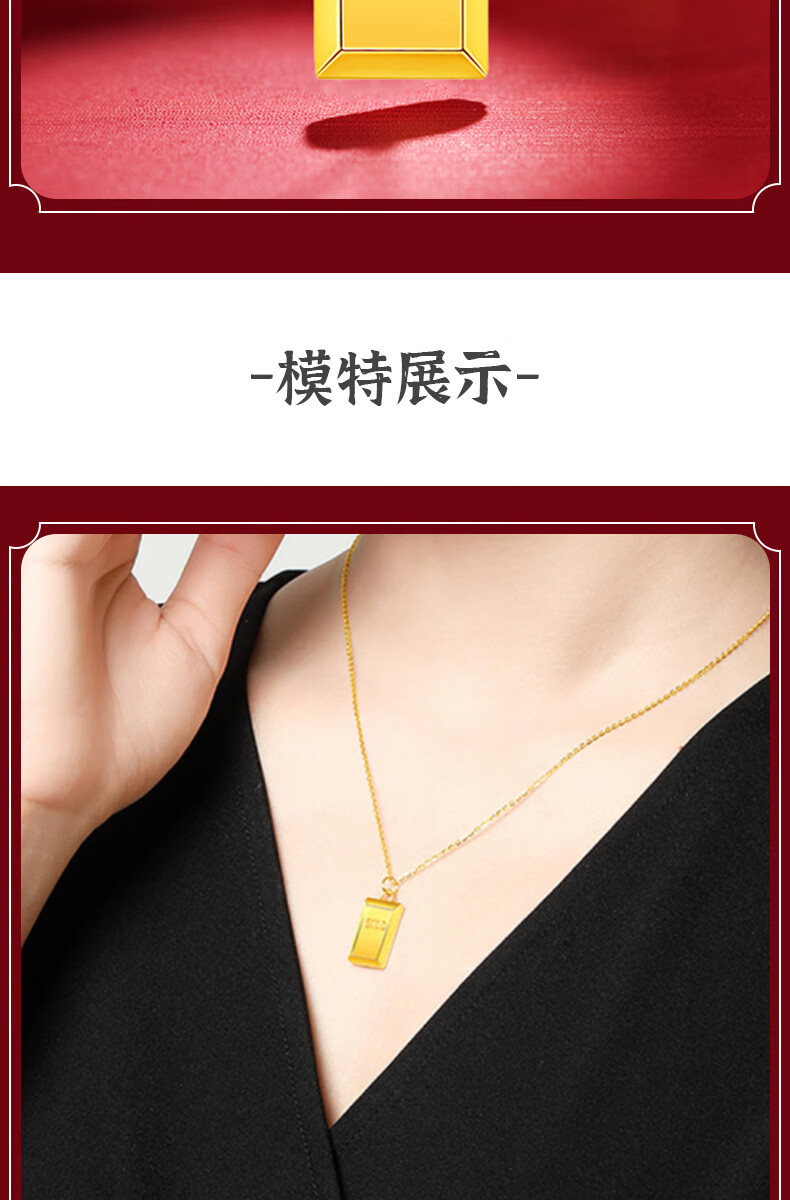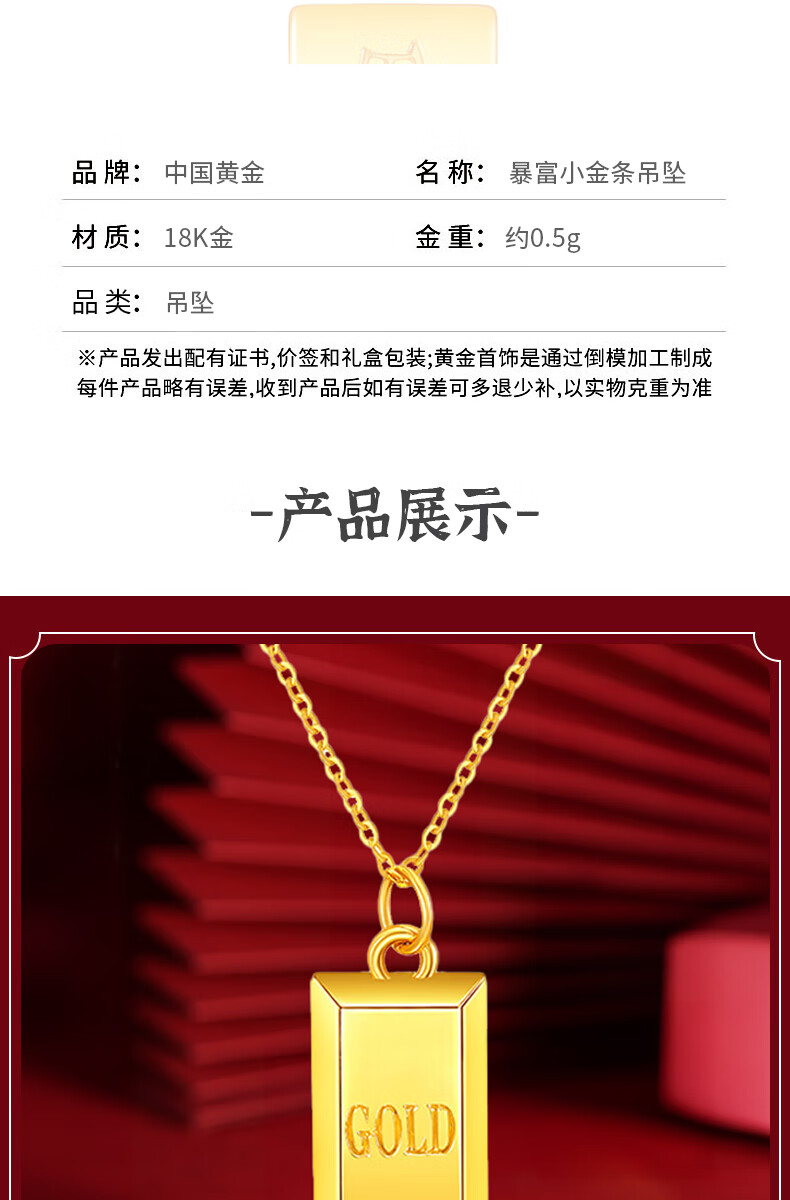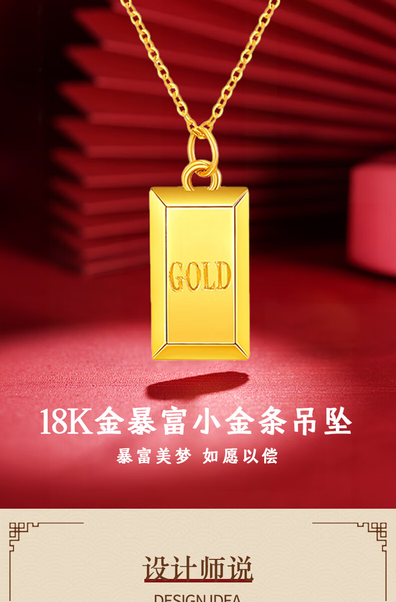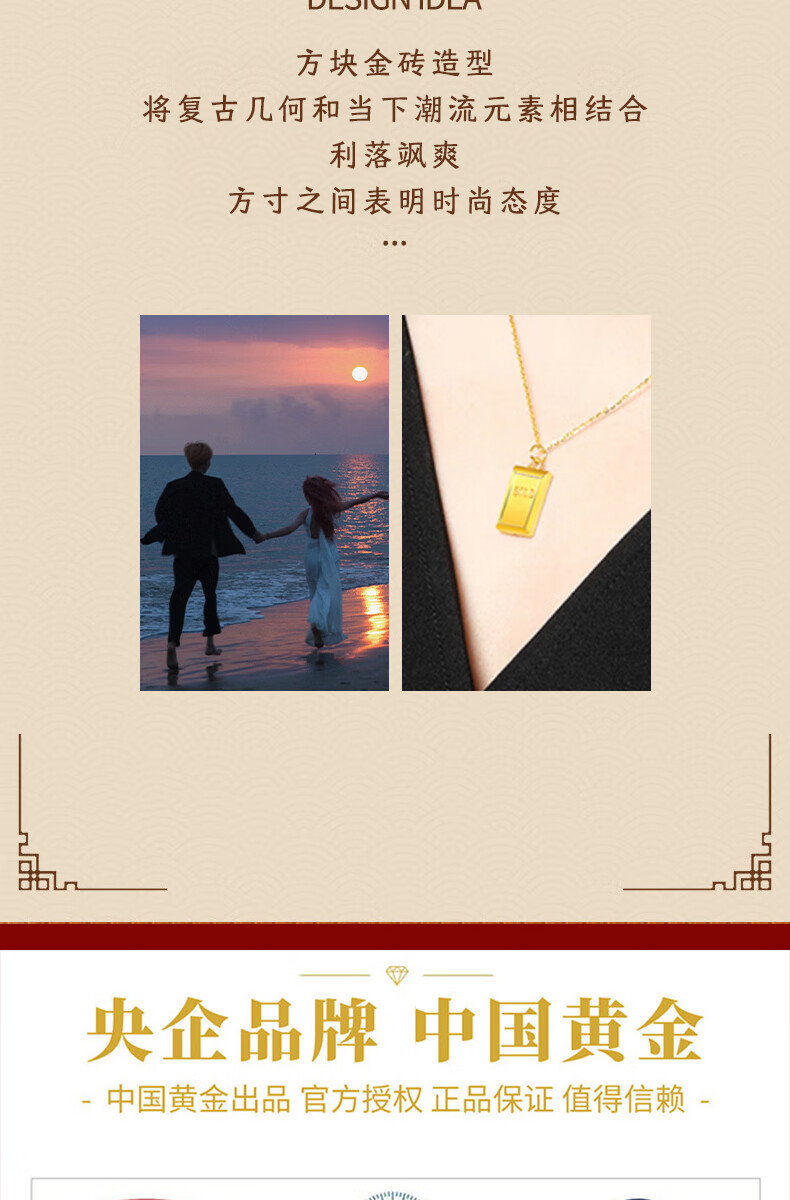 CHINA GOLD 18K gold bar pendant for women, get rich small gold brick necklace, clavicle chain, Valentine's Day birthday gift for girlfriend and wife 18K gold get rich pendant with S925 chain