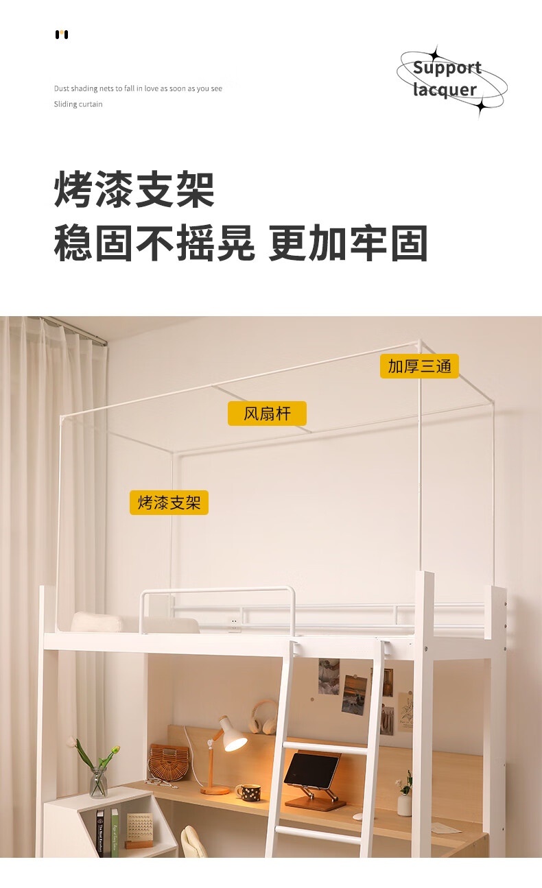 Nanjiren student mosquito net dormitory 0.9 x 1.9 meters single dormitory dormitory dormitory bunk bed universal tent with bracket pattern simple white-gauze top encrypted net gauze anti-mosquito width 90*length 190*height 110cm-top bunk three doors