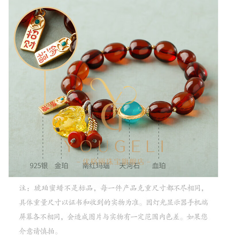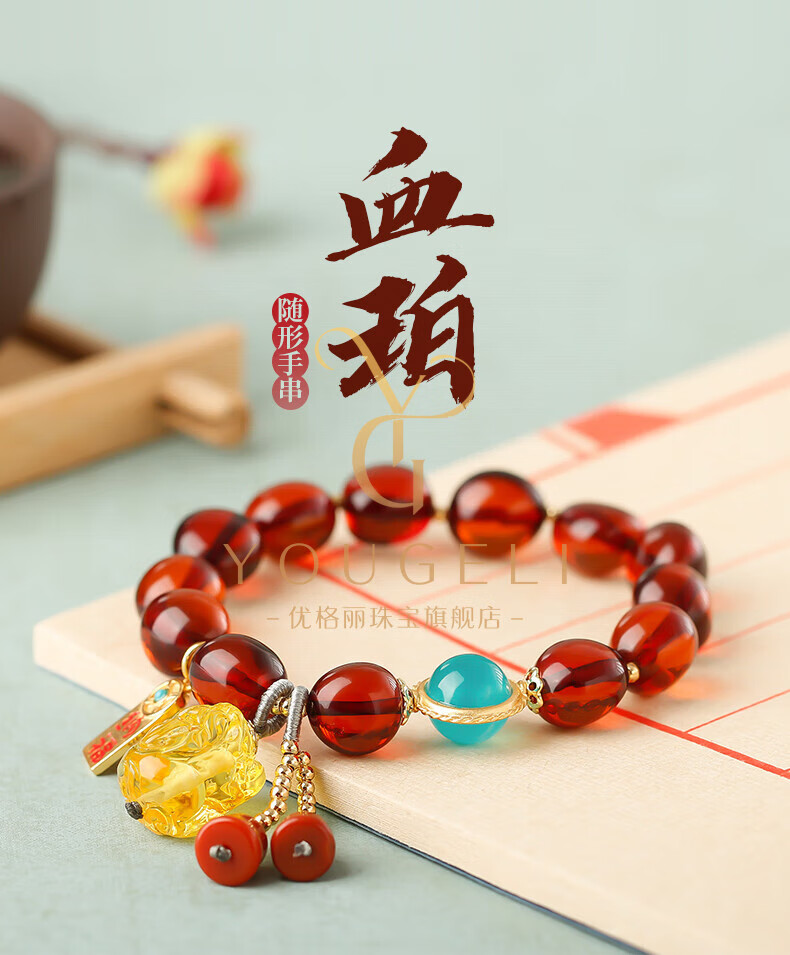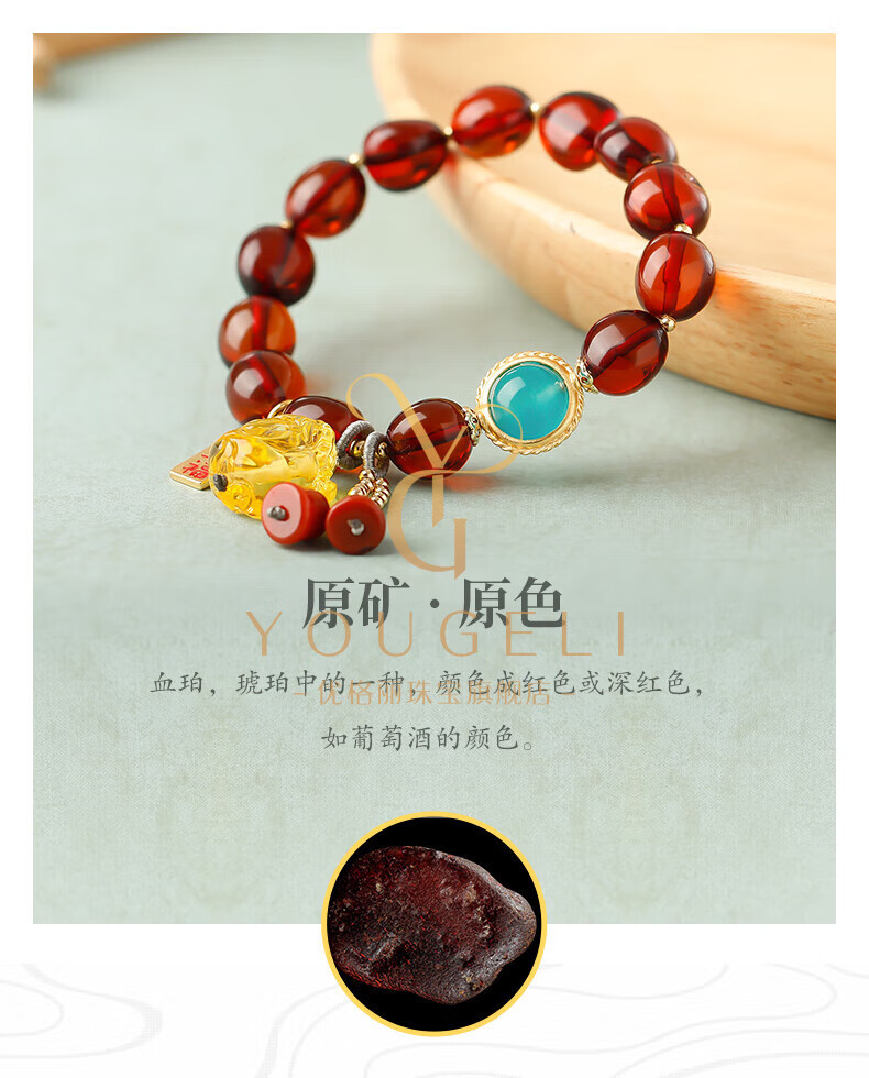 Yogurt natural amber casual bracelet raw stone blood amber women's bracelet beads 8*9mm