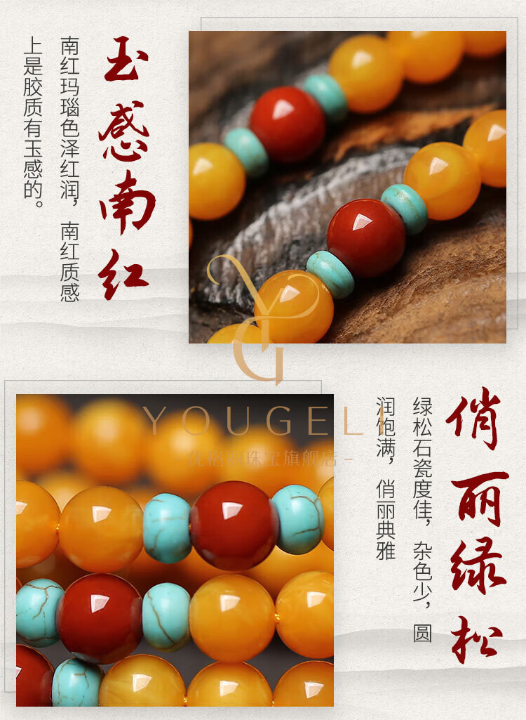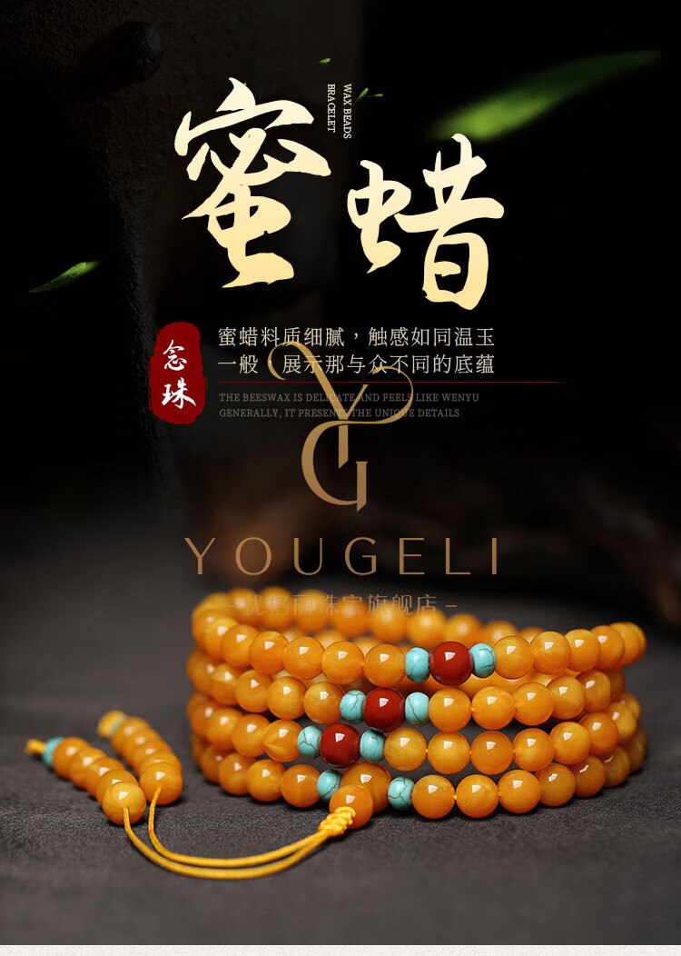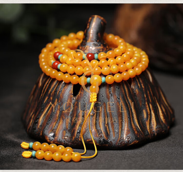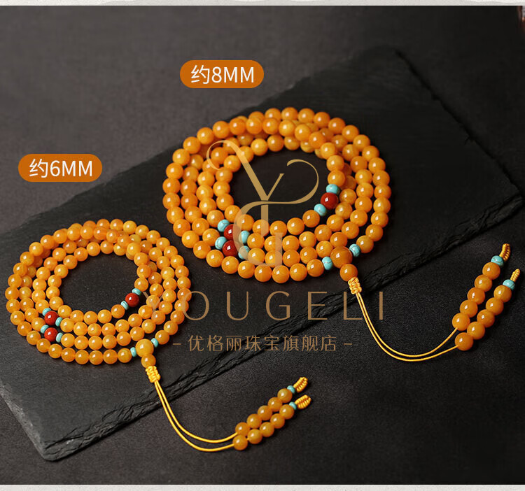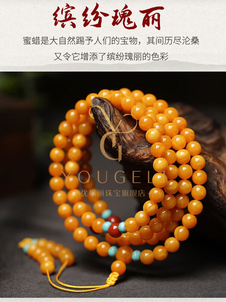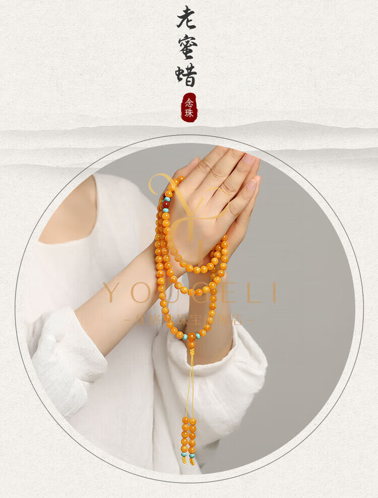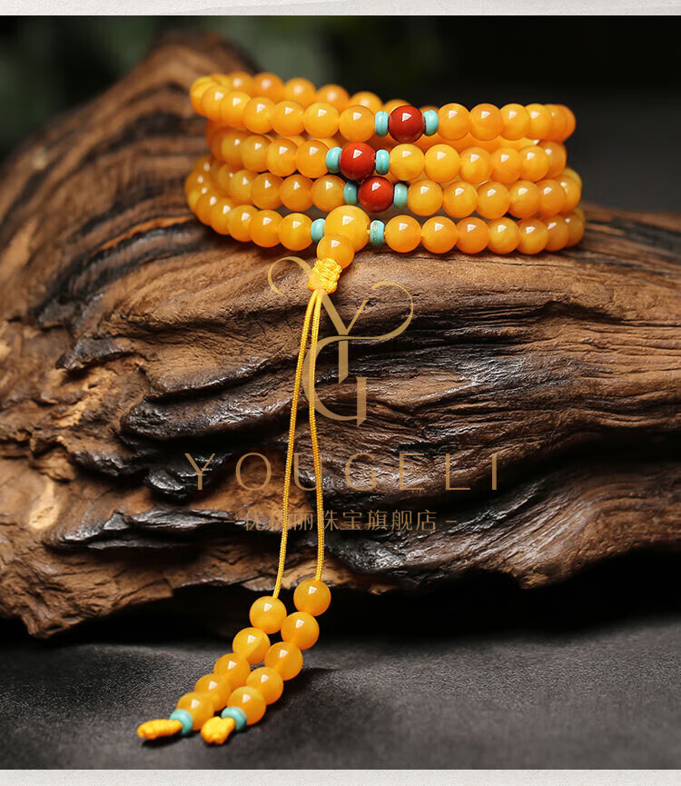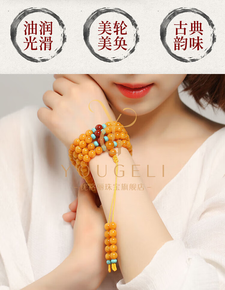 Yogurt natural beeswax 108 multi-circle bracelet chicken fat yellow amber bracelet for men and women hand-decorated Buddhist beads 6mm beads