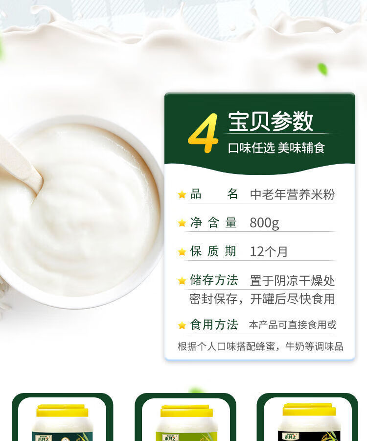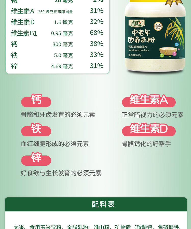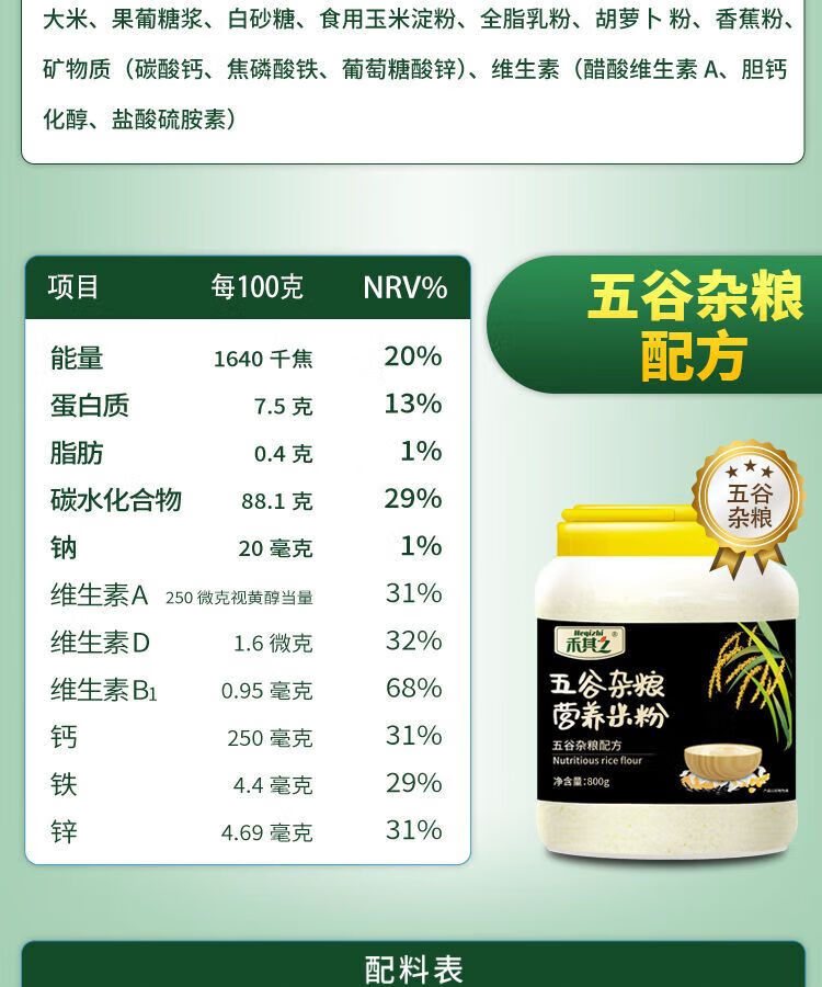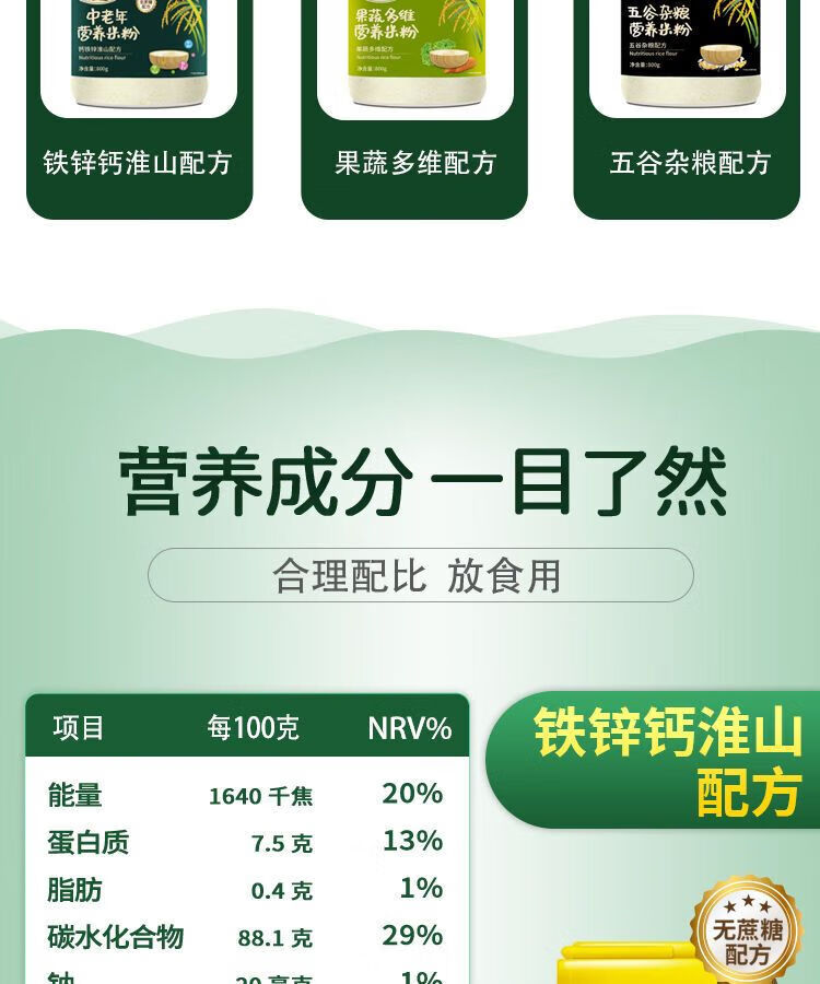 Heqizhi rice cereal for the elderly, sugar-free, nutritious rice noodles high in iron, zinc and calcium, edible, sucrose-free, instant brewing, whole grain nutritional formula rice noodles