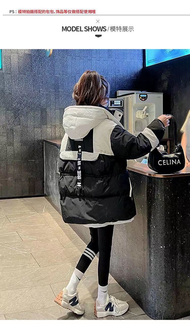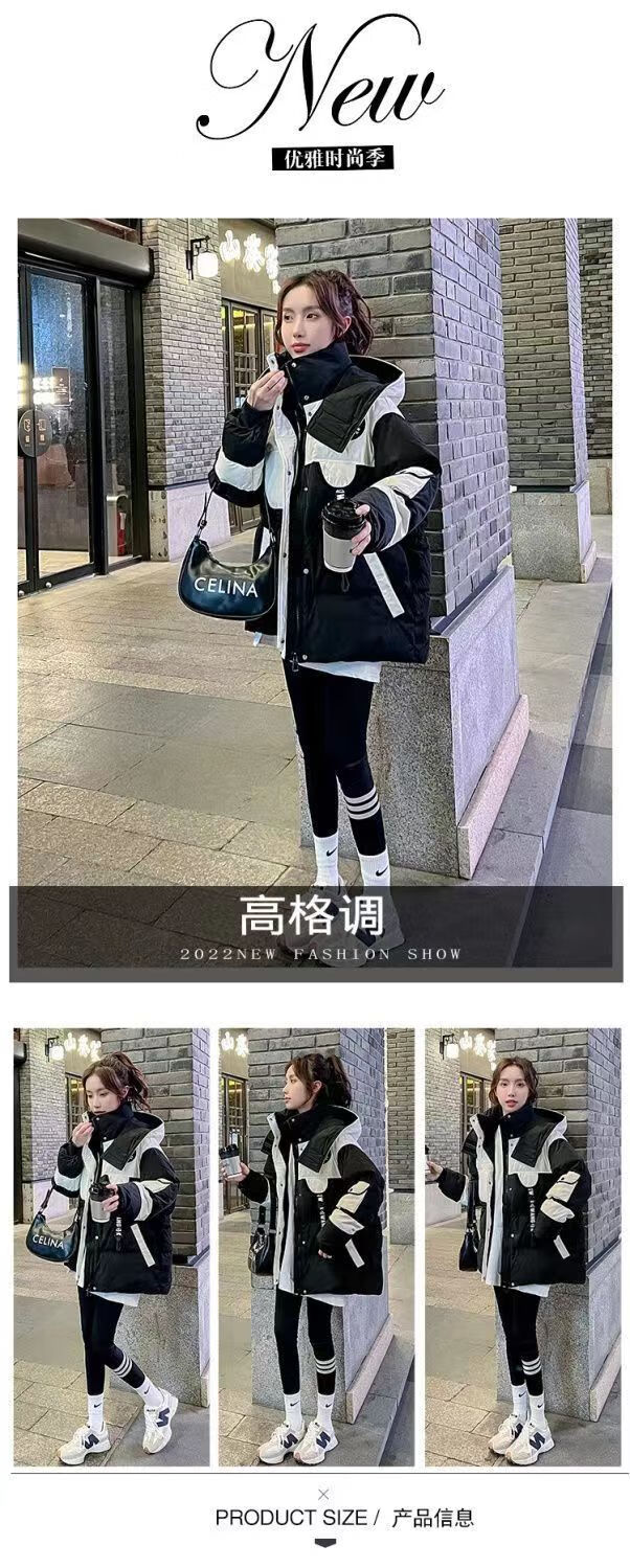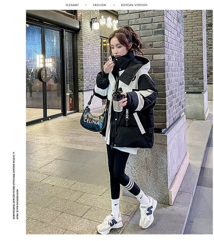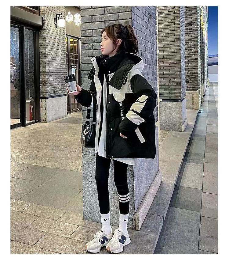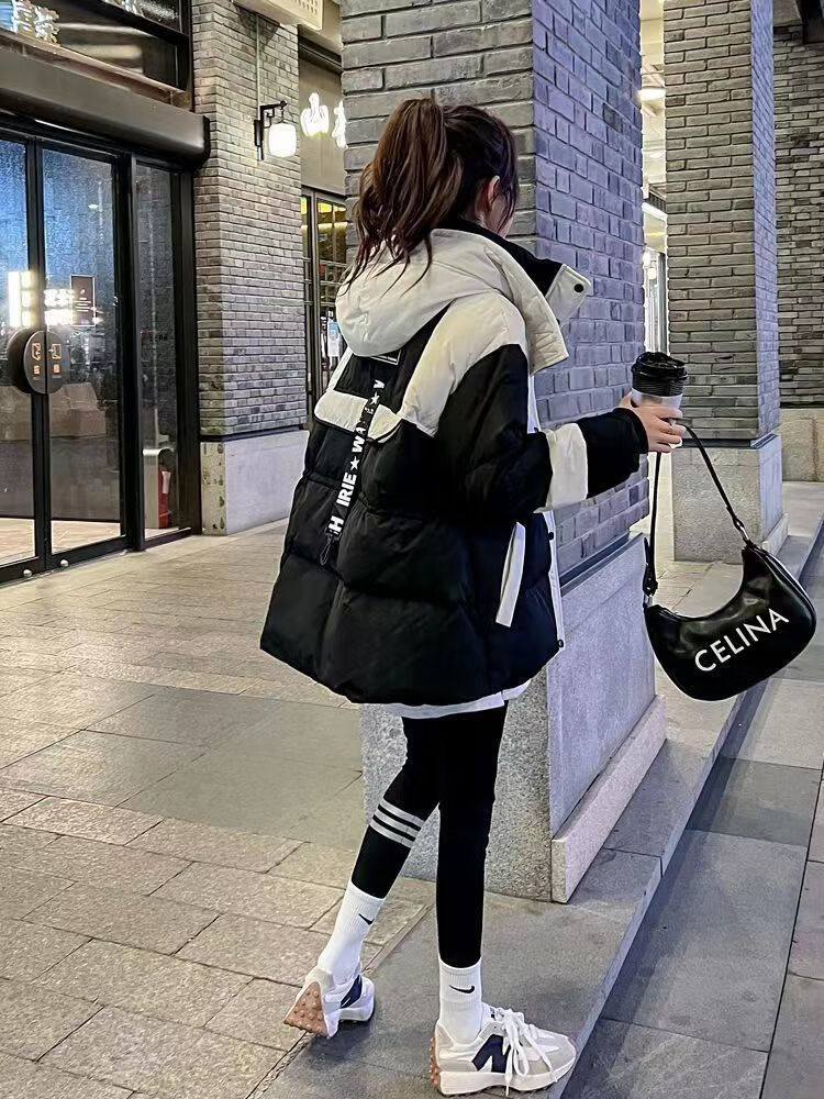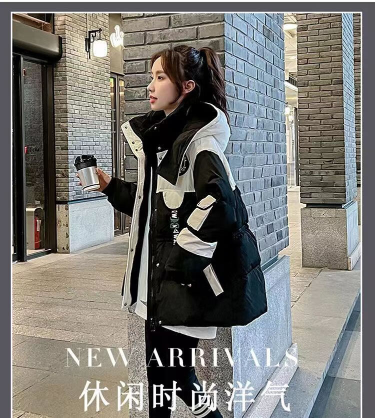 Yuannuo black spliced parka down jacket 2026 winter new style small loose slim hooded jacket picture color (ready in stock) M recommended 80-100Jin Jin equals 0.5 kg