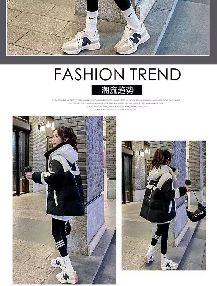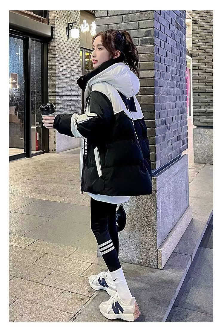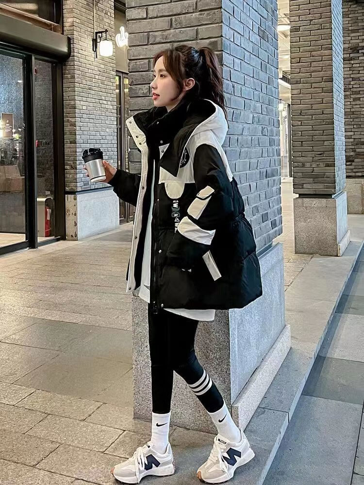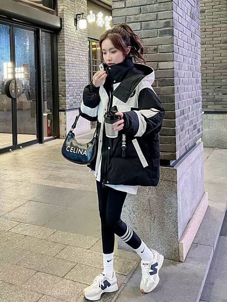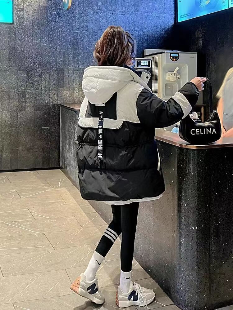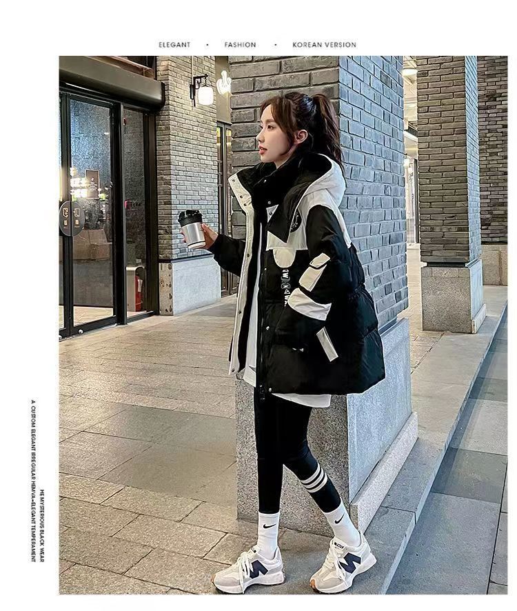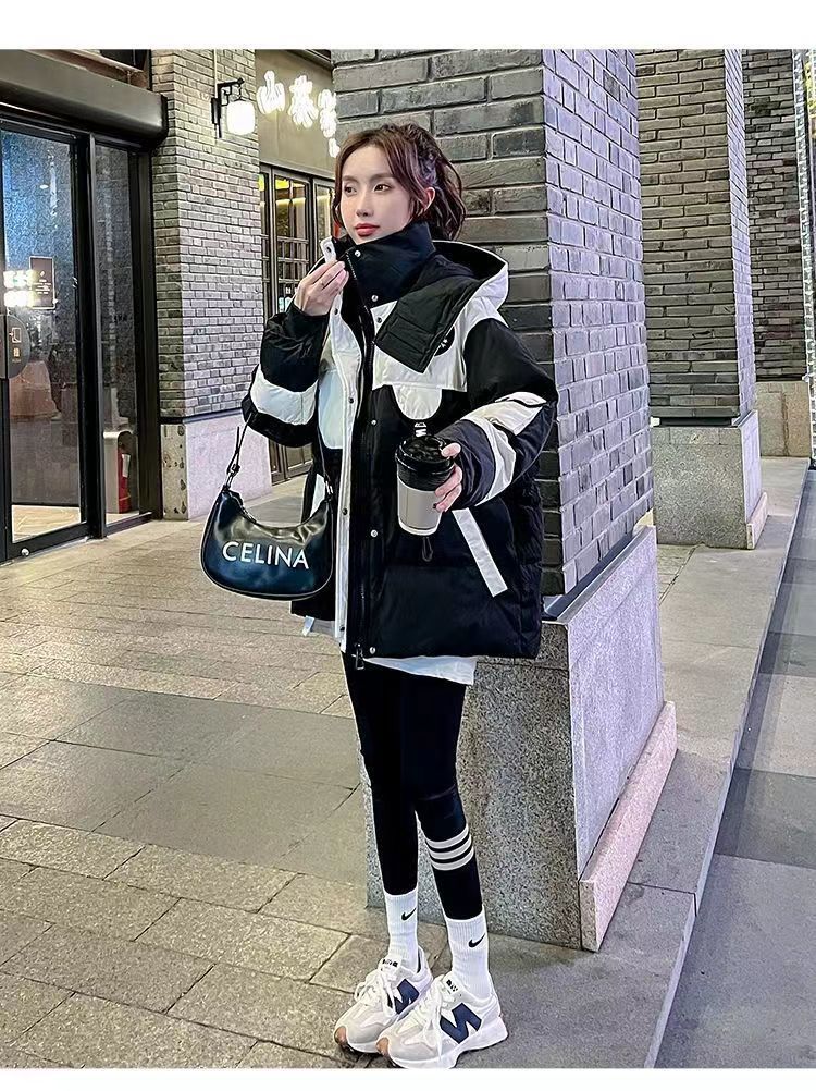 Yuannuo black spliced parka down jacket 2026 winter new style small loose slim hooded jacket picture color (ready in stock) M recommended 80-100Jin Jin equals 0.5 kg