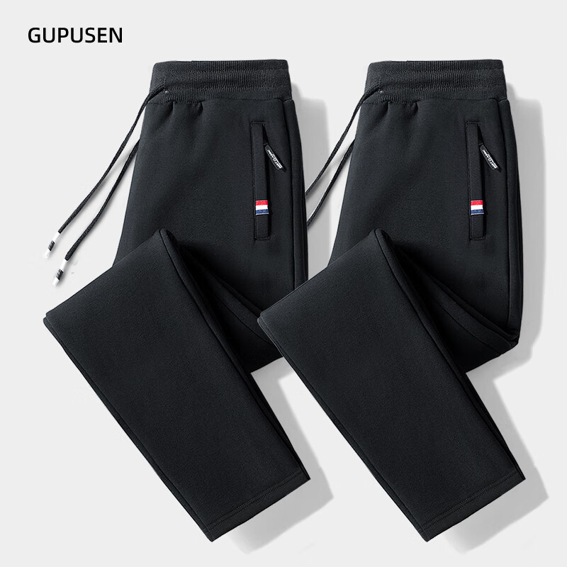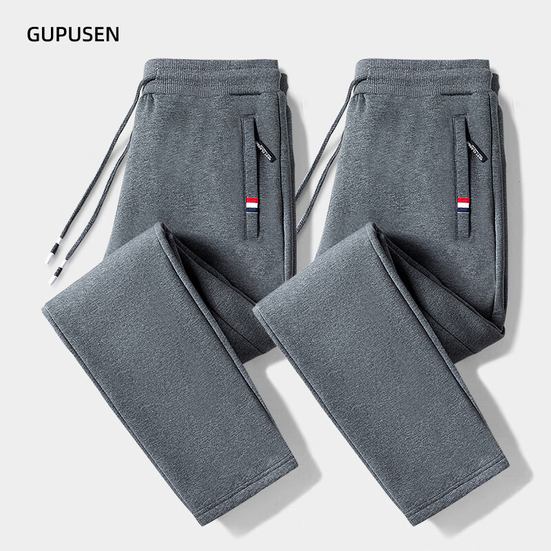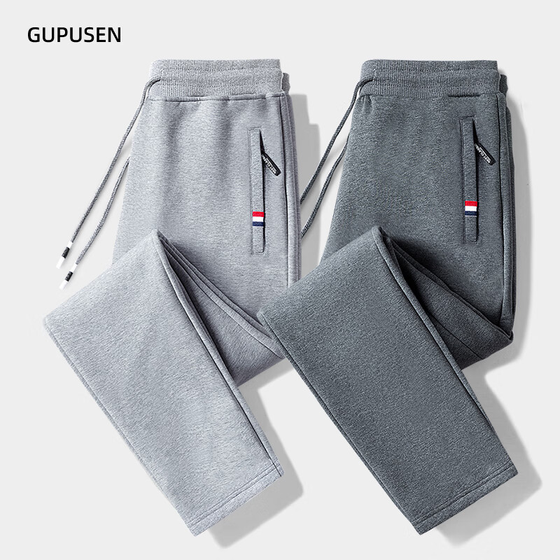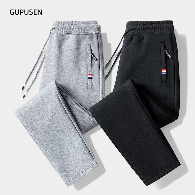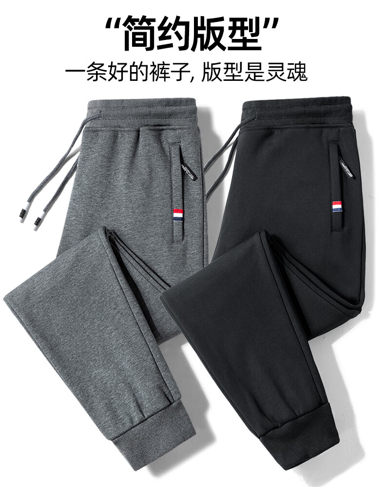 Woodpecker Pants Men's Spring and Autumn Casual Sports Men's Pants Men's Loose Straight Trousers Spring and Autumn Style Running Pants with Small Legs Two Legs Black + Dark Gray (Spring and Autumn Style) XL (Recommended 110-125 Jin Jin equals 0.5 kg)