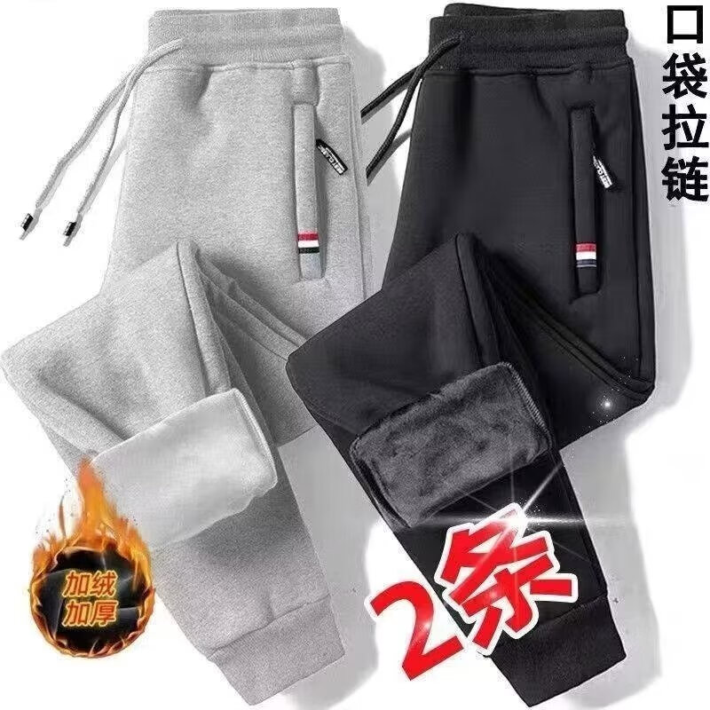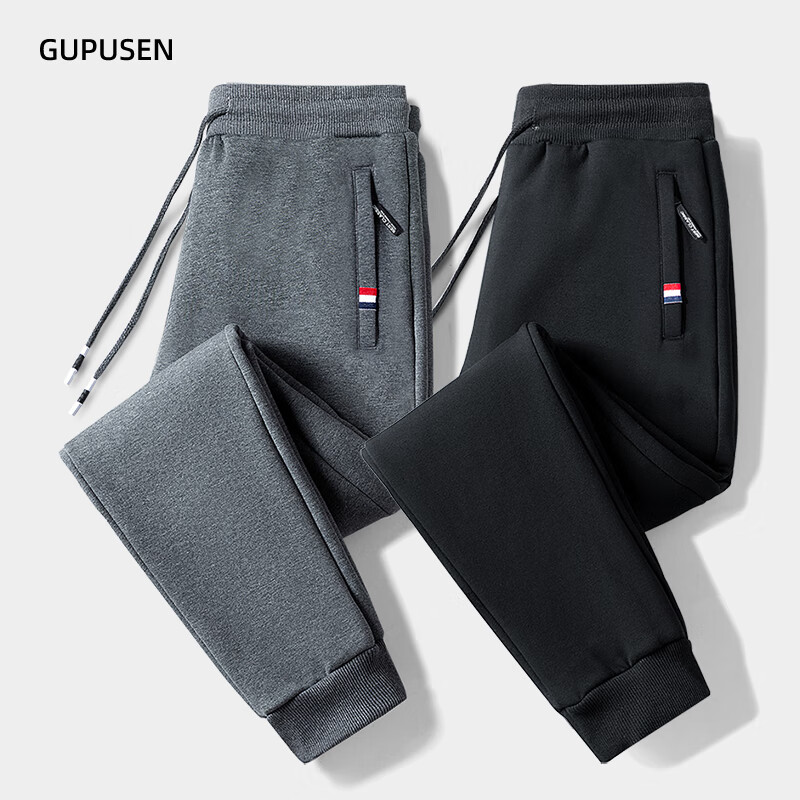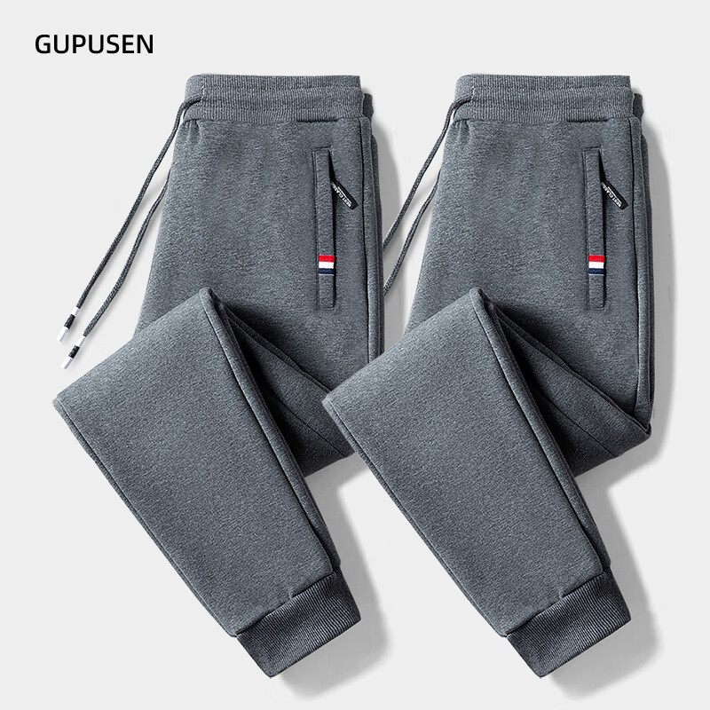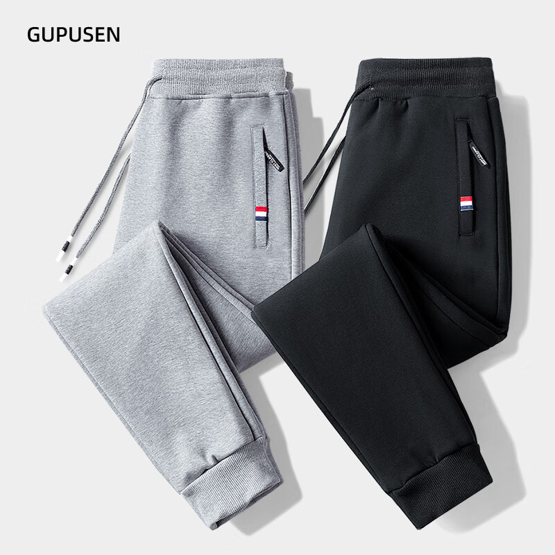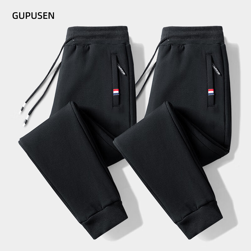 Woodpecker Pants Men's Spring and Autumn Casual Sports Men's Pants Men's Loose Straight Trousers Spring and Autumn Style Running Pants with Small Legs Two Legs Black + Dark Gray (Spring and Autumn Style) XL (Recommended 110-125 Jin Jin equals 0.5 kg)