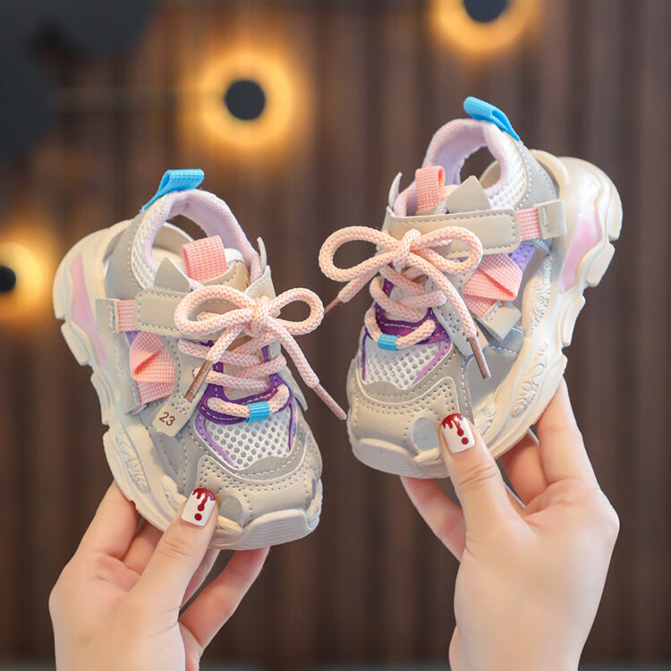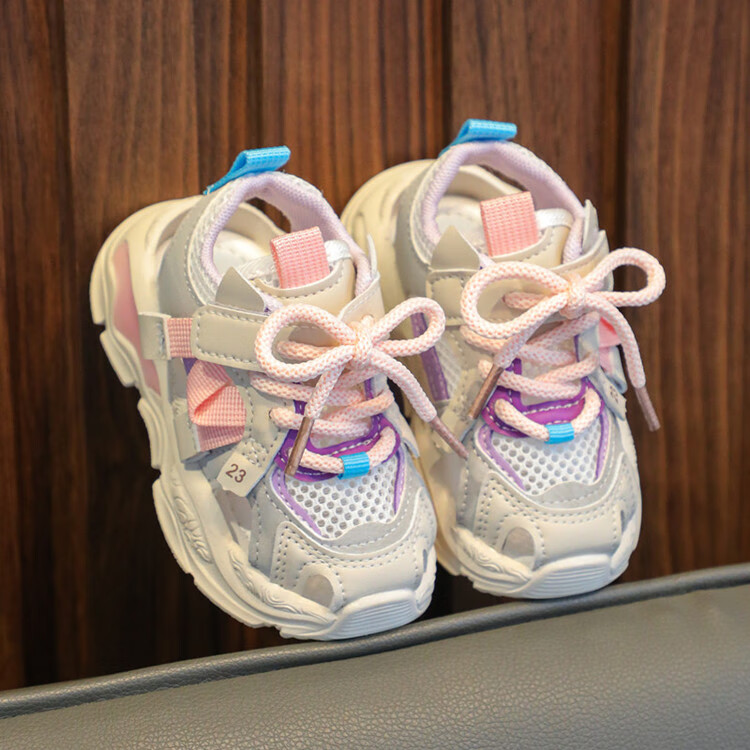 Ziwuqian's new baby sports sandals, summer girls' net shoes, soft soles for 1-3-year-old infants and toddlers, pink, size 21/inner length 13.5CM