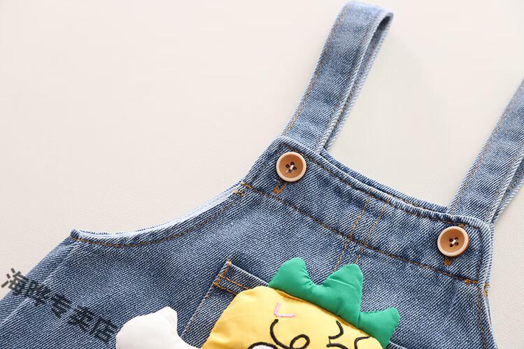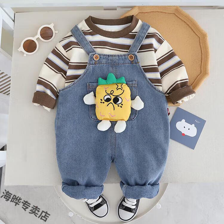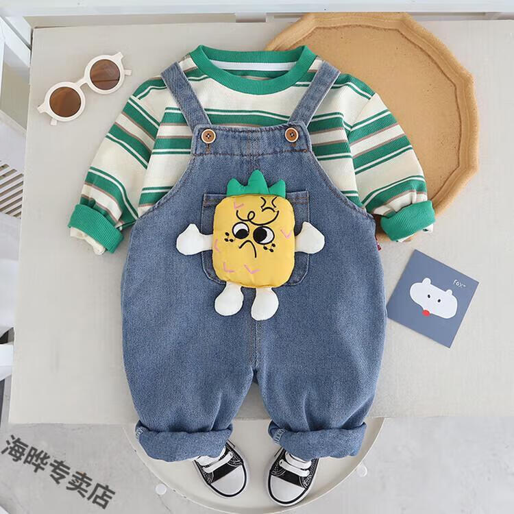 G.DUCKKIDS little yellow duck baby boy autumn overalls set 2024 new baby children's clothing children's spring and autumn long-sleeved clothes green pineapple suspenders 2-piece set 80cm
