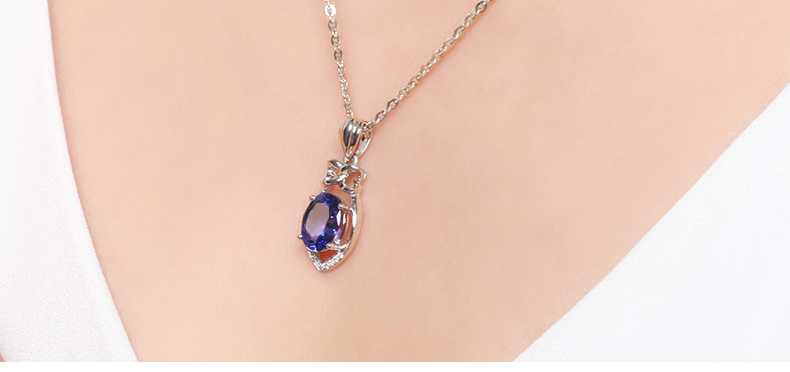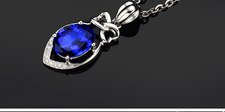 Lescreation Lisa Jewelry 1.80ct Tanzanite Diamond Pendant White 18K Gold Blue Gemstone Diamond Necklace Blue 1.8ct 4A