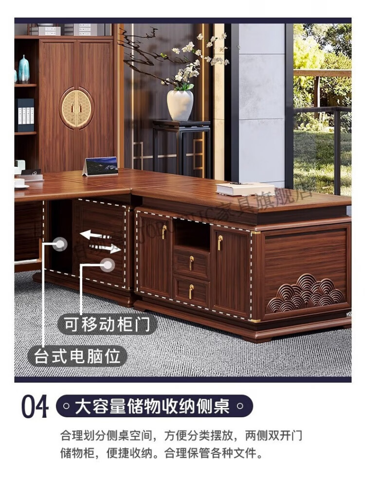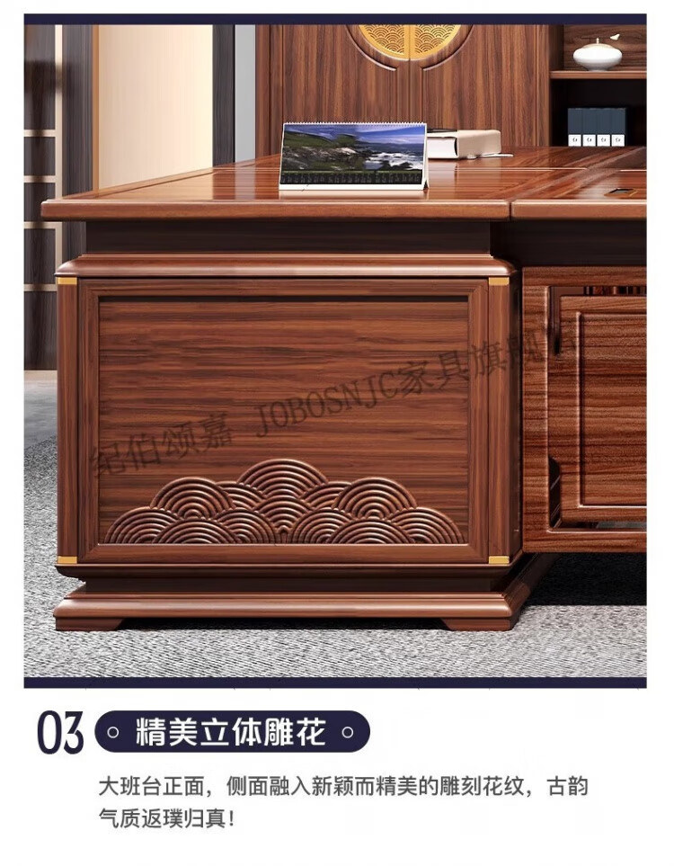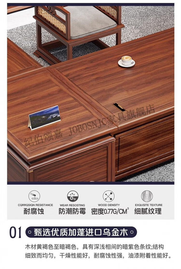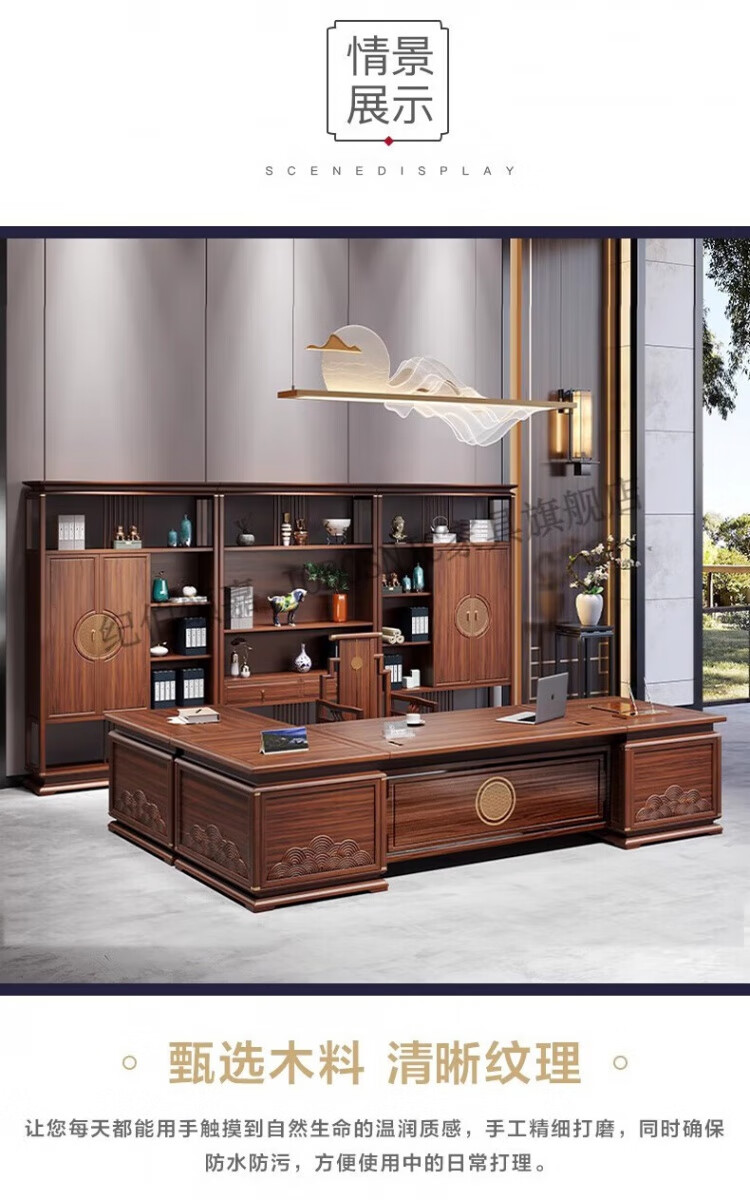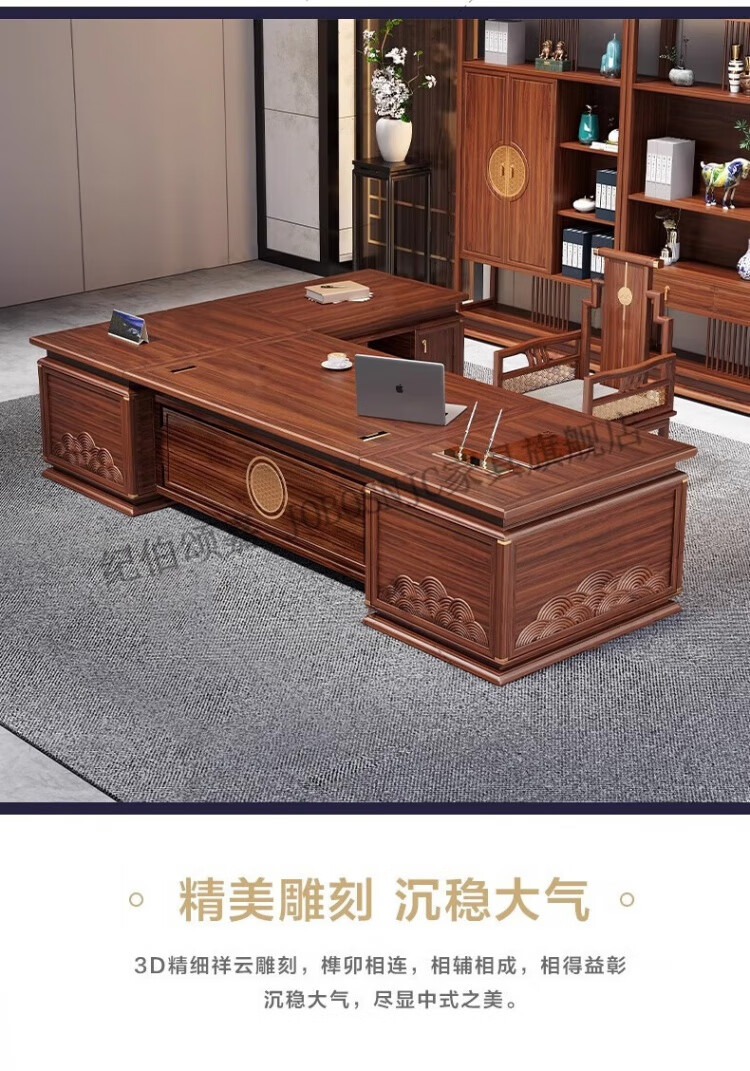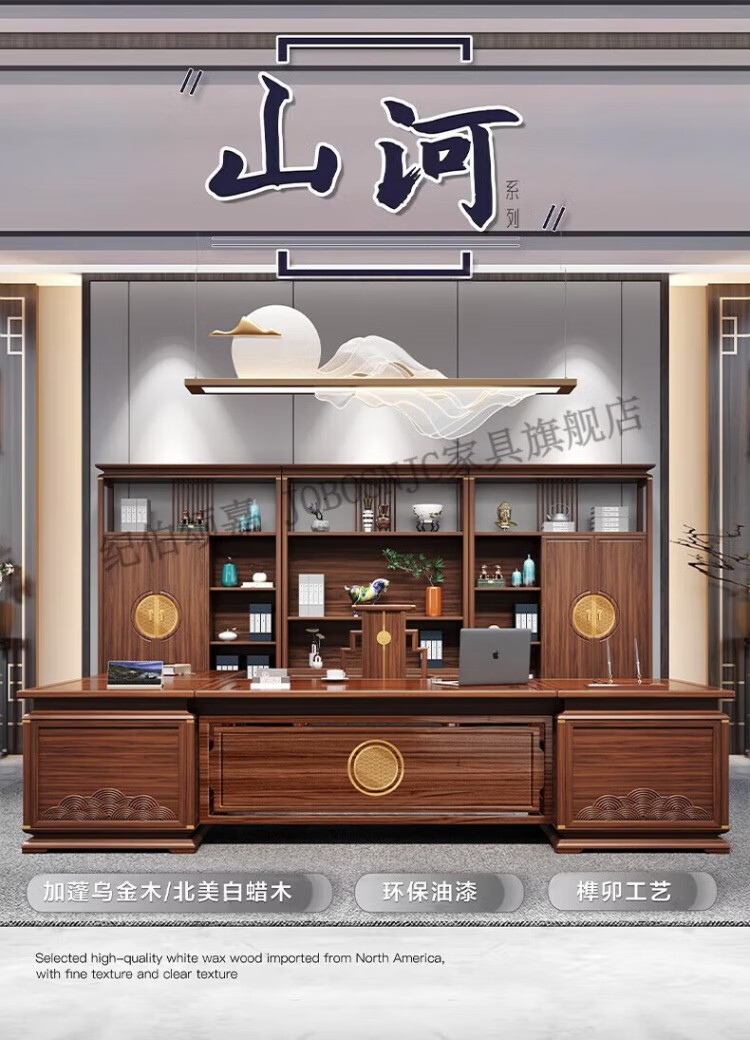 Ji Bosongjia new Chinese solid wood desk ebony wood boss desk bookcase Zen chairman desk and chair president executive desk combination North American ash wood 2.0m boss desk with side table