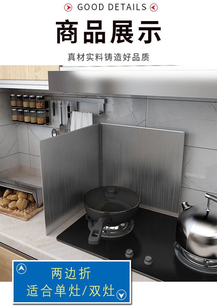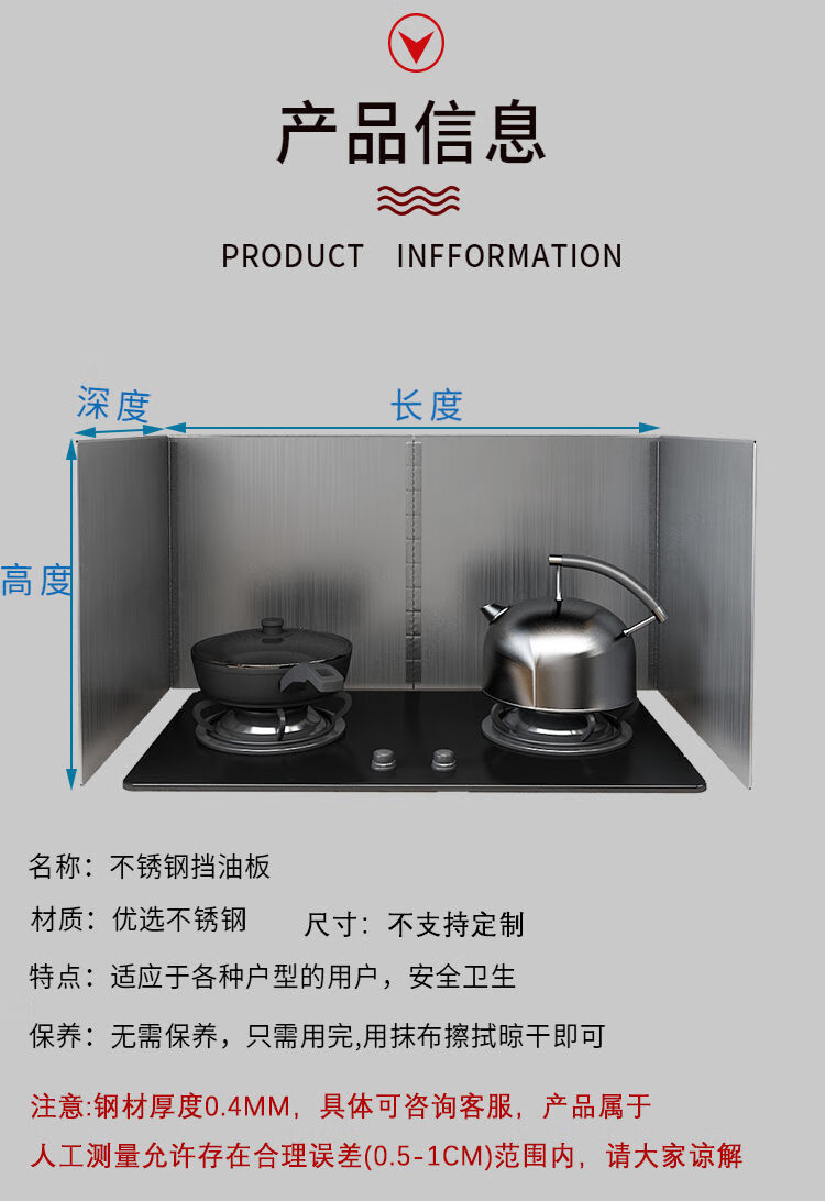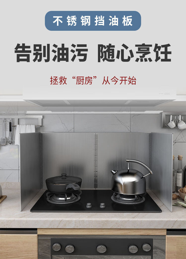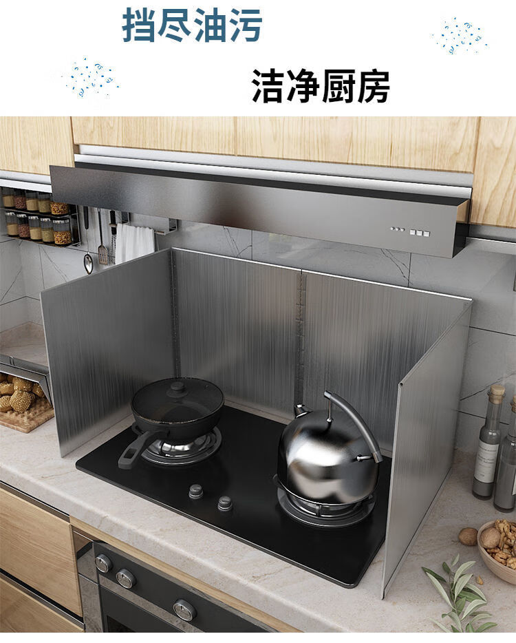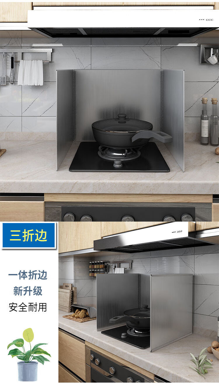 Xiongwochi stainless steel kitchen oil shield for cooking, anti-oil splash, thickened heat shield, range hood, high temperature resistant shield plate protective cover, height 30, depth 30, two fold in one