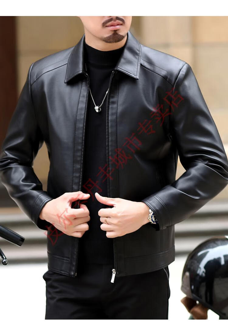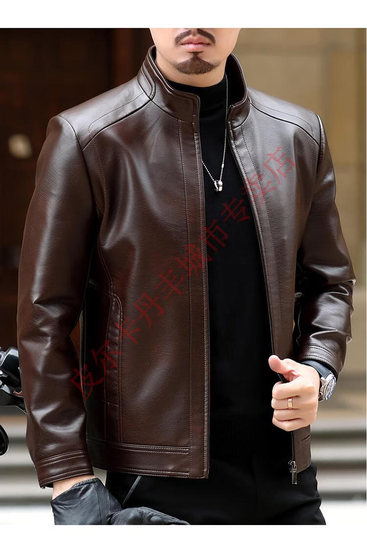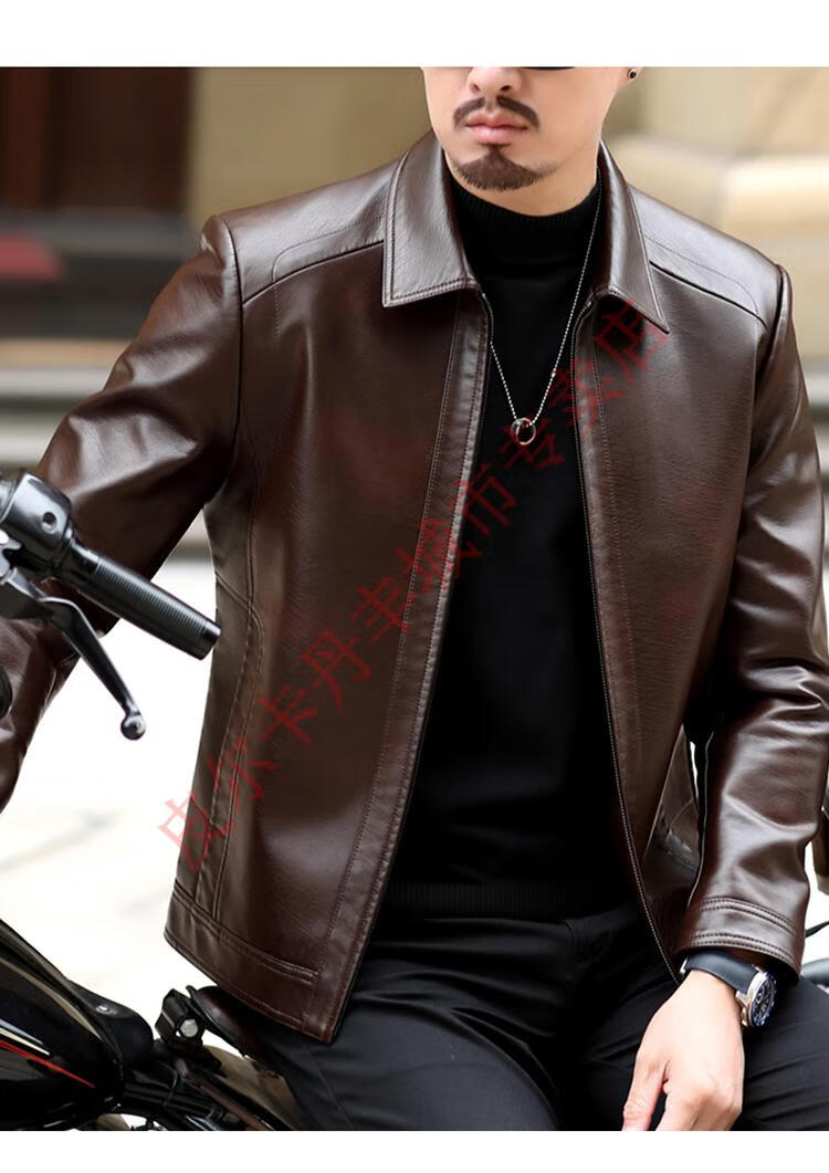 Pierre Cardin Haining Genuine Leather Jacket Men's Lapel Middle-aged Cadres Spring and Autumn Thin Casual Dad Wear Sheepskin Jacket Lapel Dark Brown Velvet Style 3XL190 Weight 170-190Jin Jin is equal to 0.5 kg