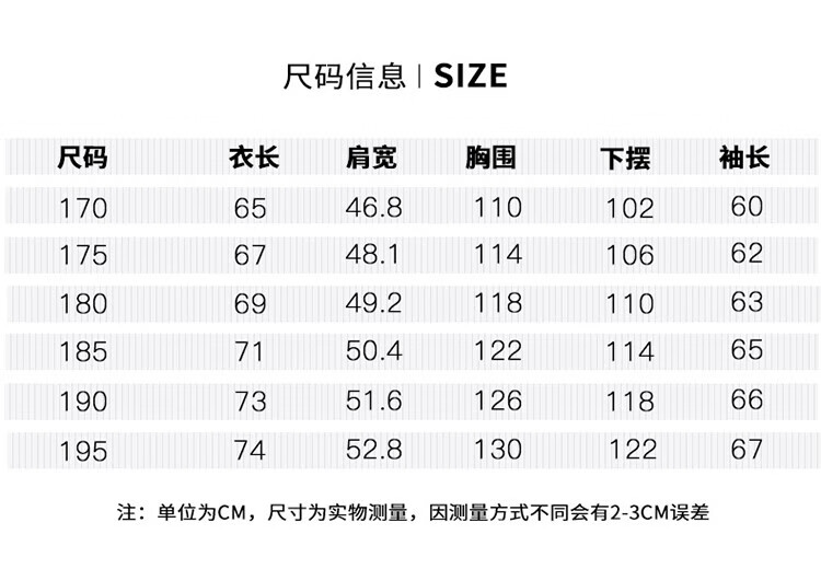 China (cm) 165 / 88-90 170 / 96-98 175 / 108-110 180 / 118-122 185 / 126-130