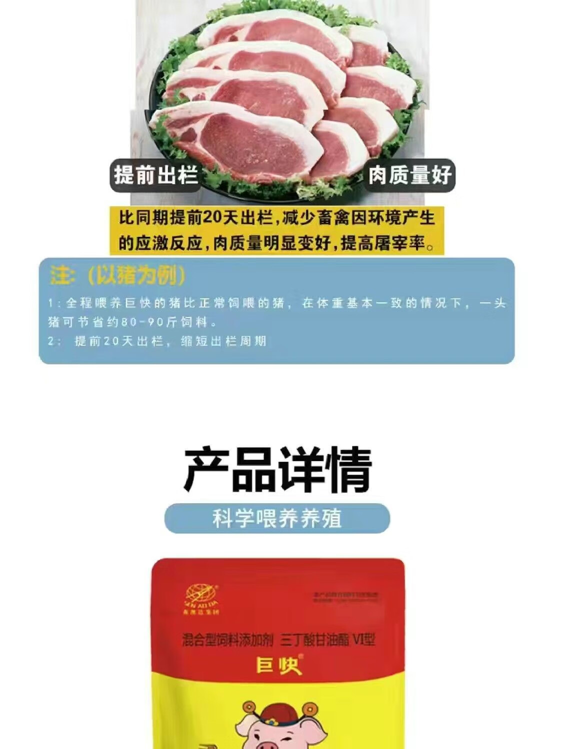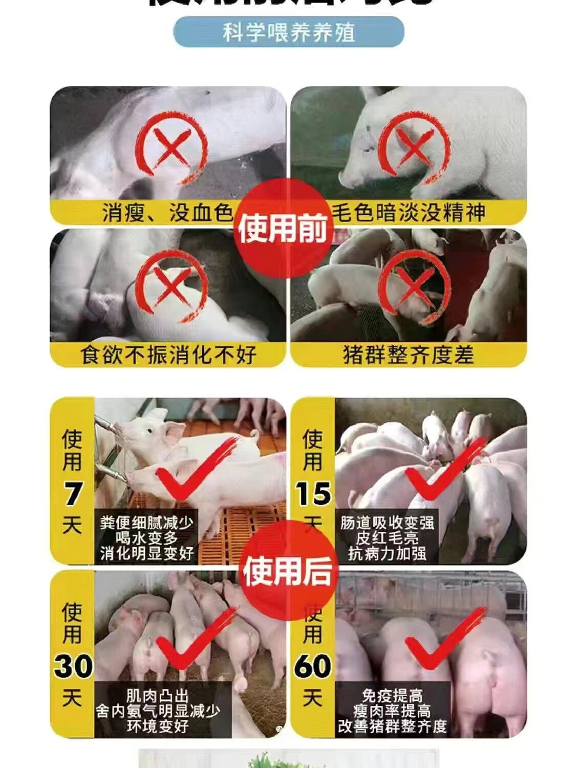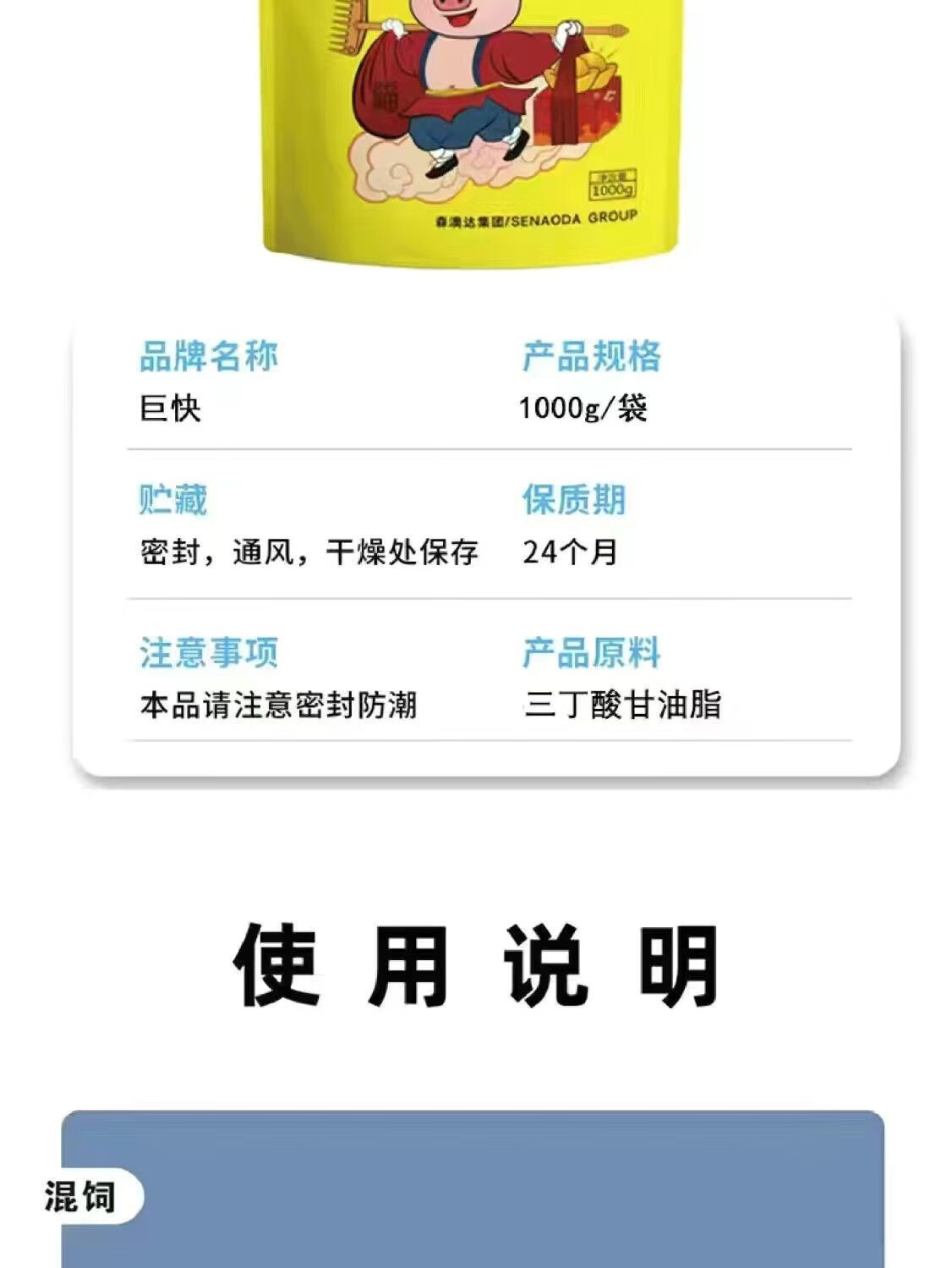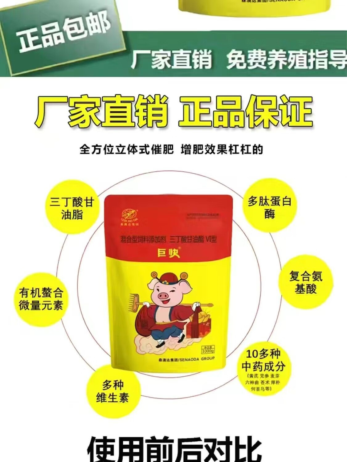 Senaoda giant fast pigs use feed additives to promote fattening, promote growth and rapid weight gain. Fattening pigs eat and grow rapidly over time. 3 bags of value pack, a total of 900g, can be mixed with 1800Jin. Jin is equal to 0.5kg.