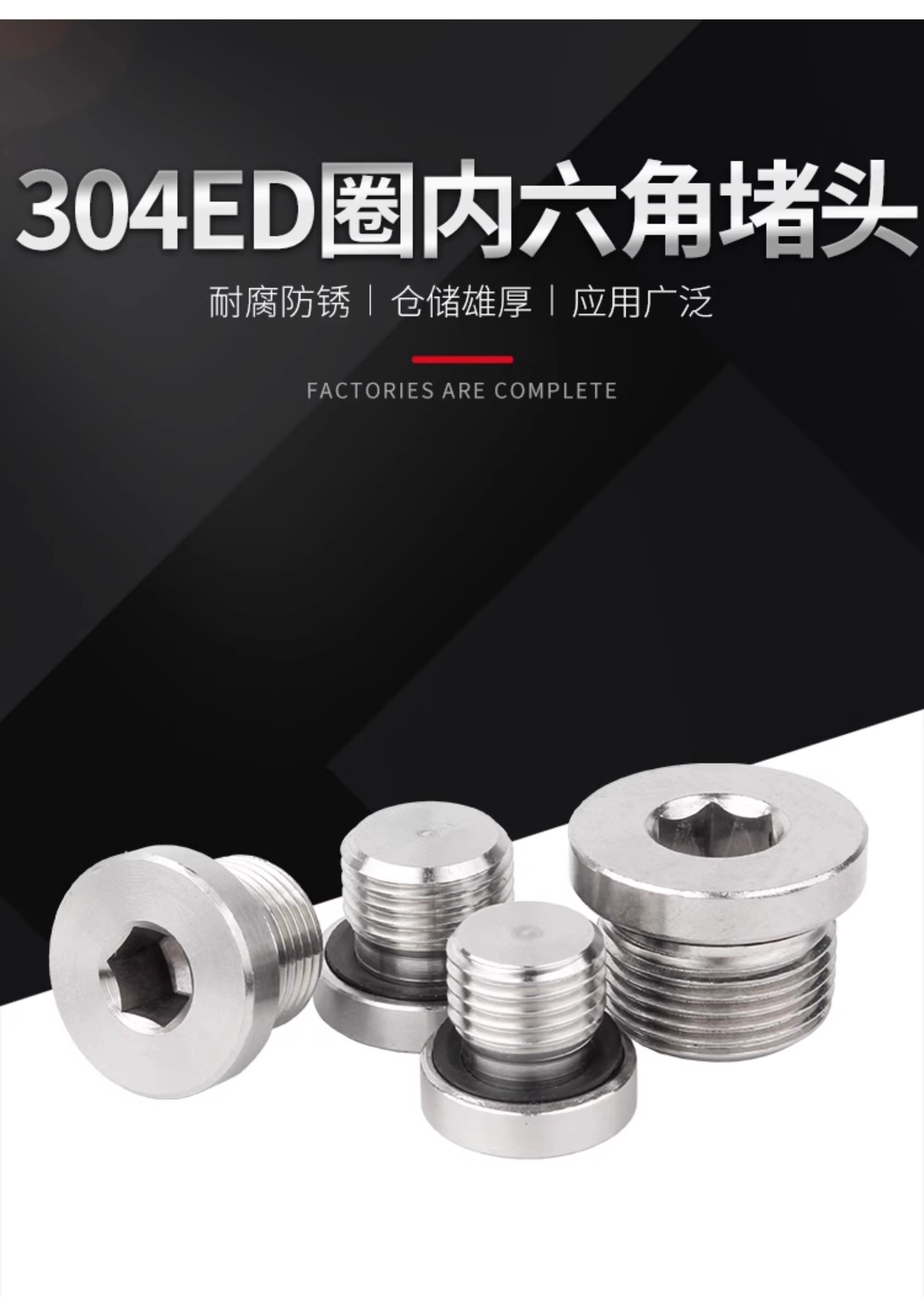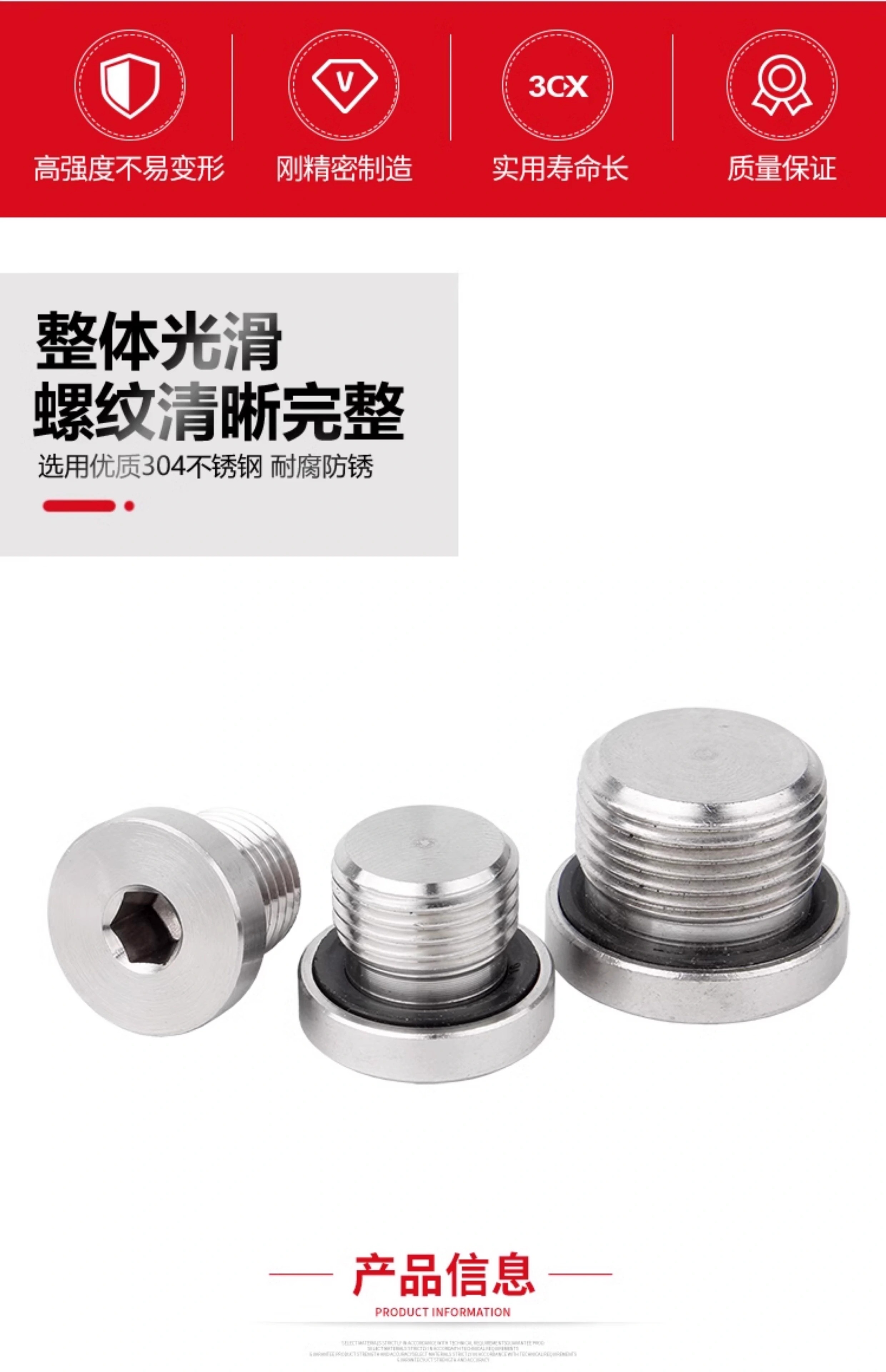 Guwanji 304 stainless steel inner hexagonal ED ring sealing plug with flange edge oil plug, inch wire plug, screw plug and fasteners collection G1/8=1 point 1 piece with ED ring