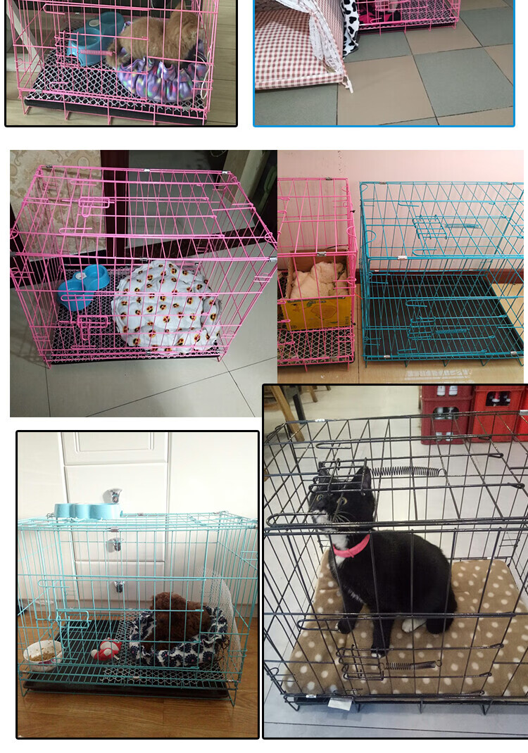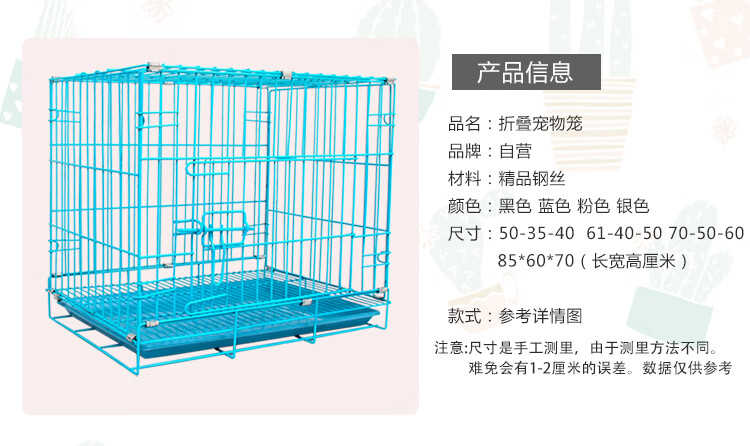 Dog cage, small dog puppy cage, Teddy dog cage with toilet, indoor and outdoor large cat cage, rabbit cage, dog fence, standard 50*35*40 (blue) cage + tray