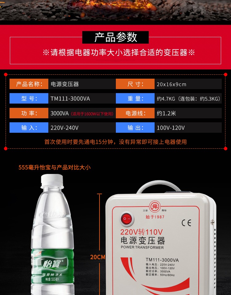 Suitable for Zojirushi Tiger rice cooker transformer Shunhong 3000W 220V to 110V 100V voltage conversion 220V to 110V (domestic use of foreign electrical appliances)
