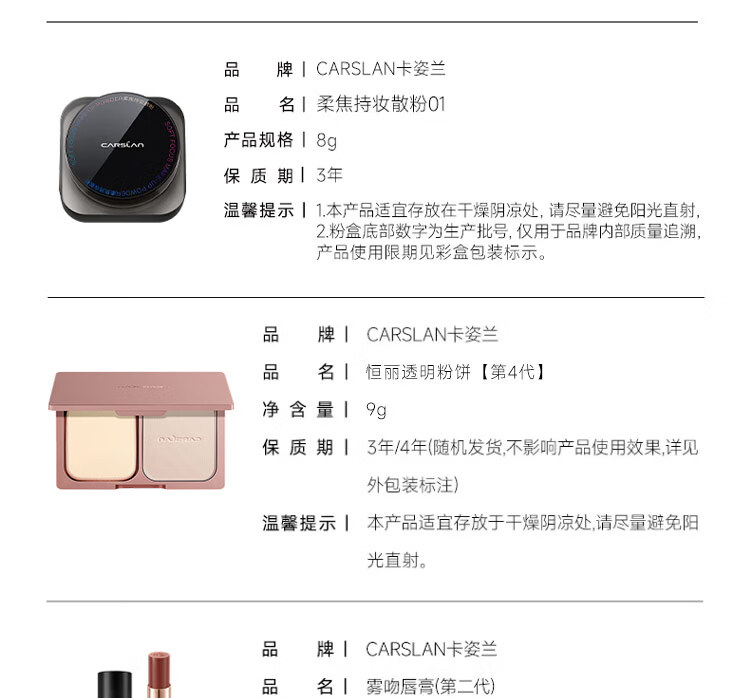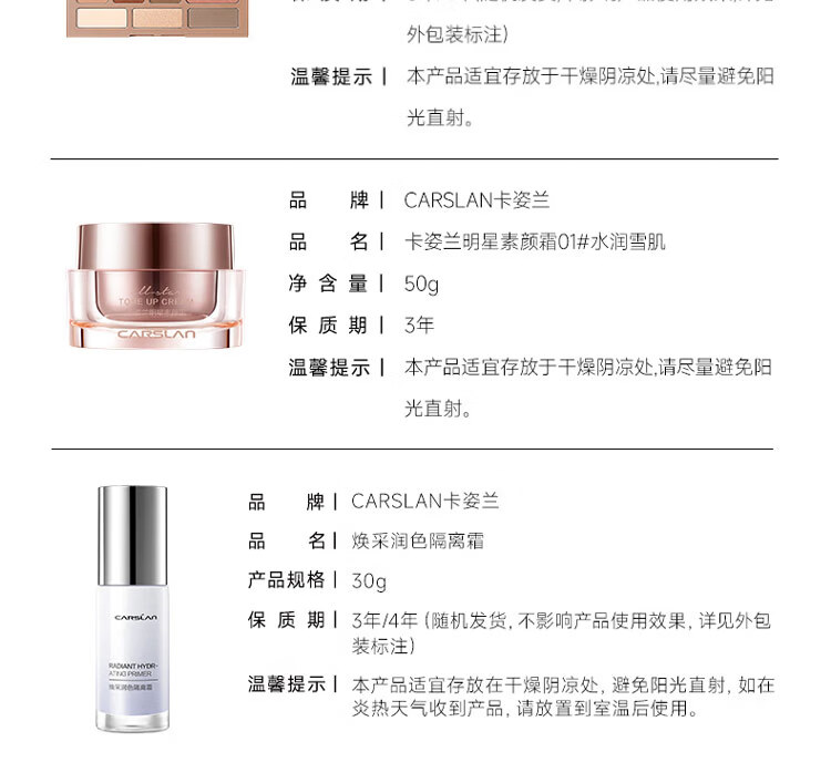 Carslan Cosmetics Set Authentic Women's Complete Makeup Gift Box Big Brand Complete Set Student Beginner's Birthday New Year's Gift Love for a Lifetime