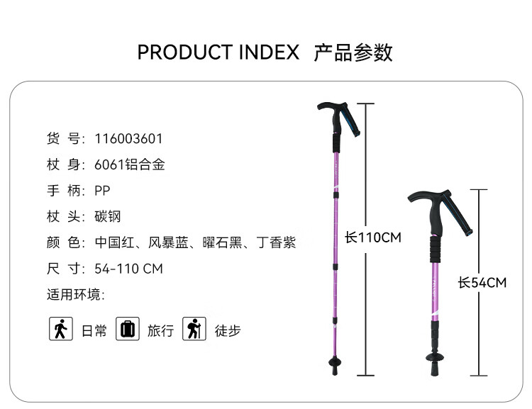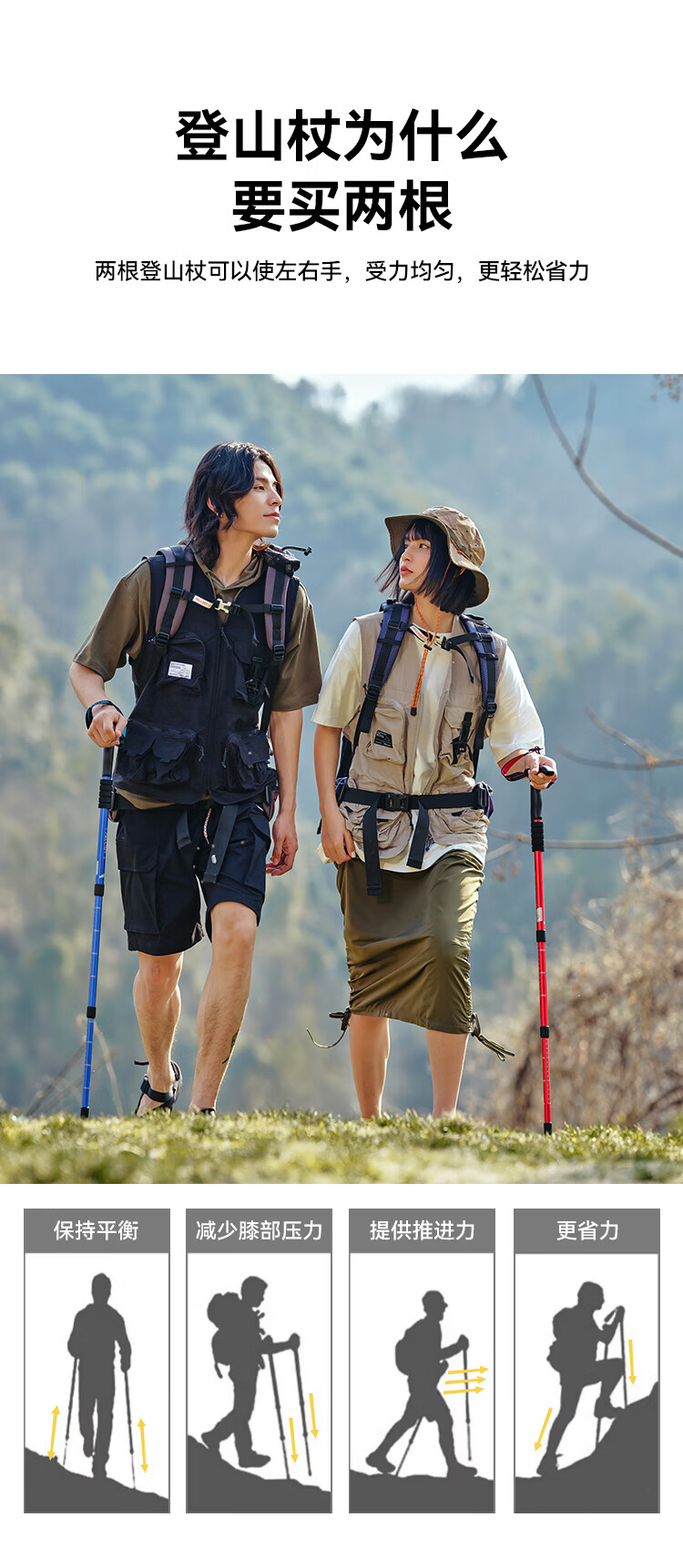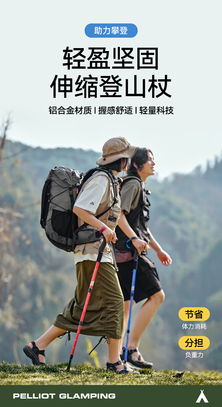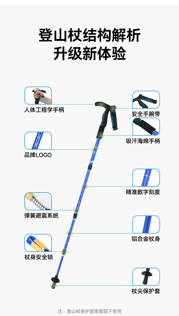 Pelliot outdoor trekking poles, aluminum alloy telescopic canes, climbing equipment, non-slip crutches, hiking crutches, obsidian black, lightweight technology, tough and not easy to break