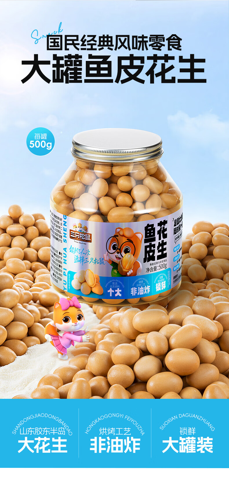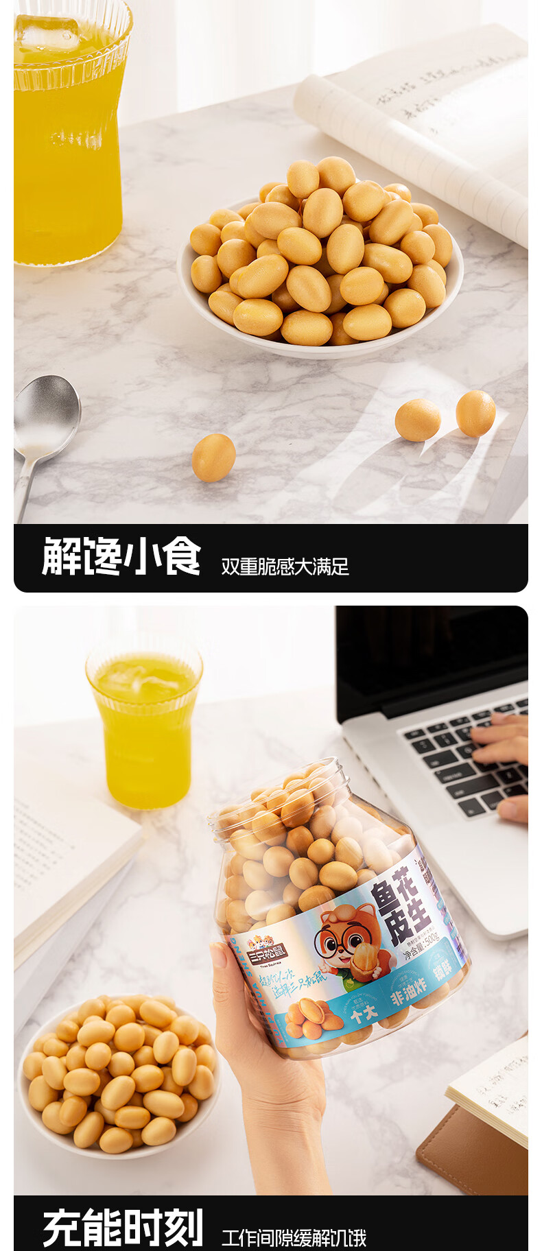 Three Squirrels THREE SQUIRRELS Three Squirrels_Fish Skin Peanuts 500g/Nostalgic Casual Snacks Old-fashioned Crispy Peanuts Roasted Seeds and Beans for Drinks New Product 400gx1 Can Colorful 4 Flavors Fish Skin Flowers