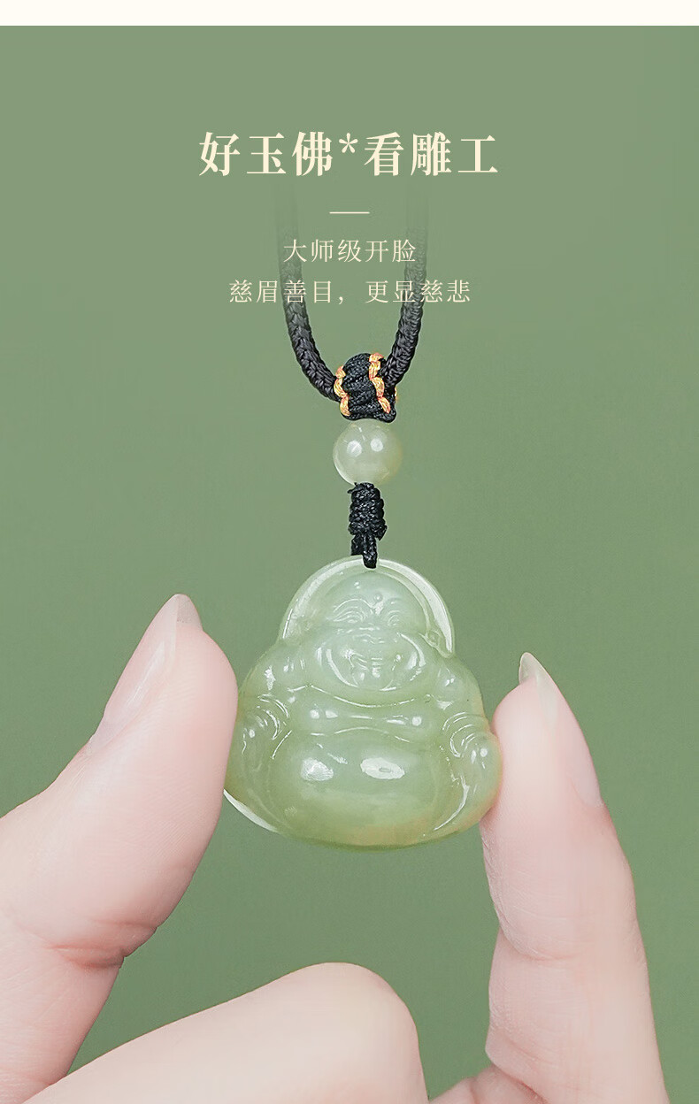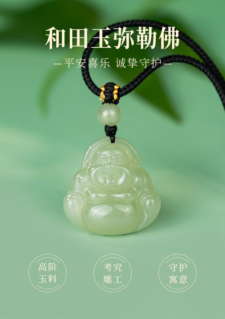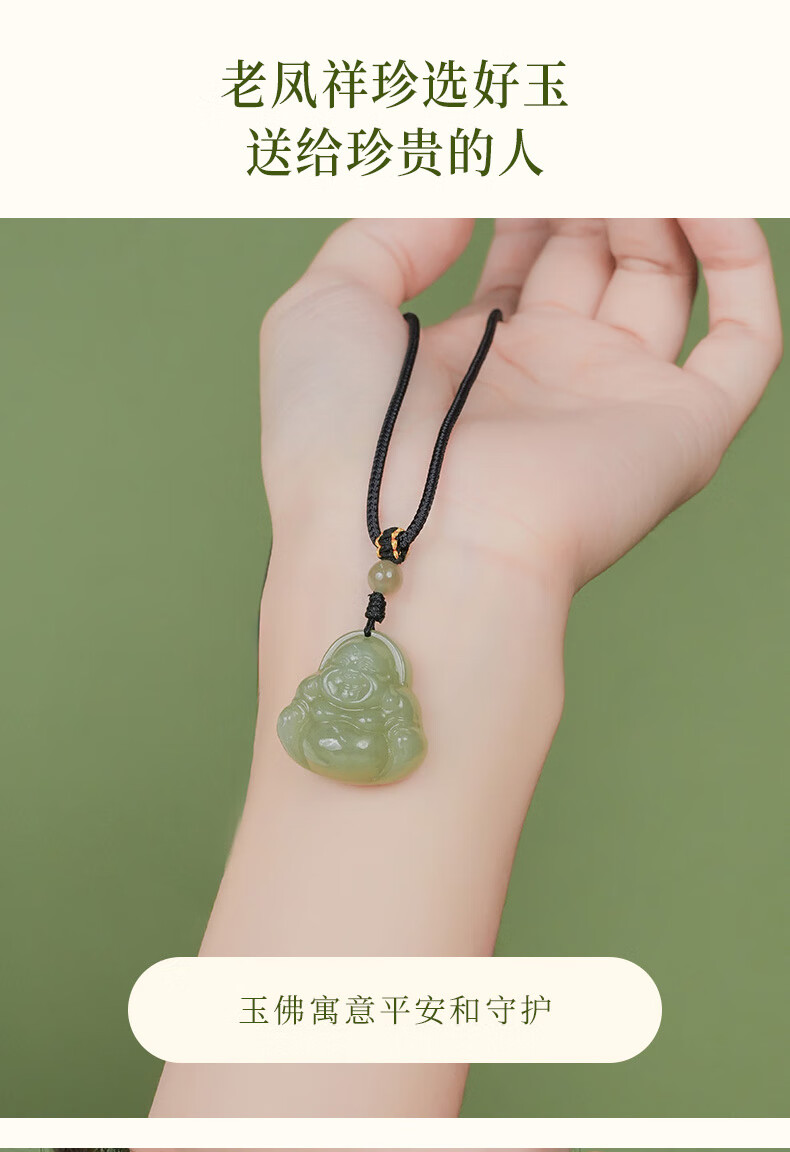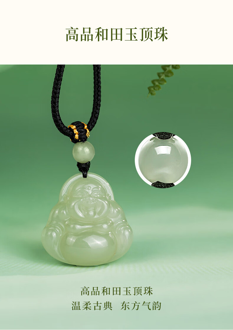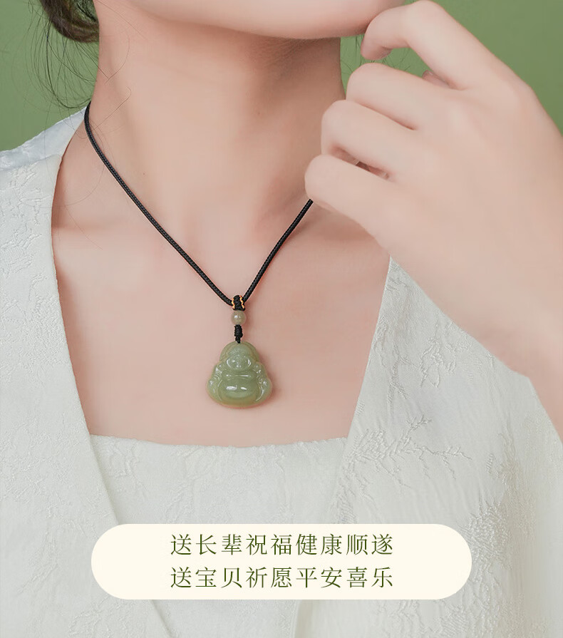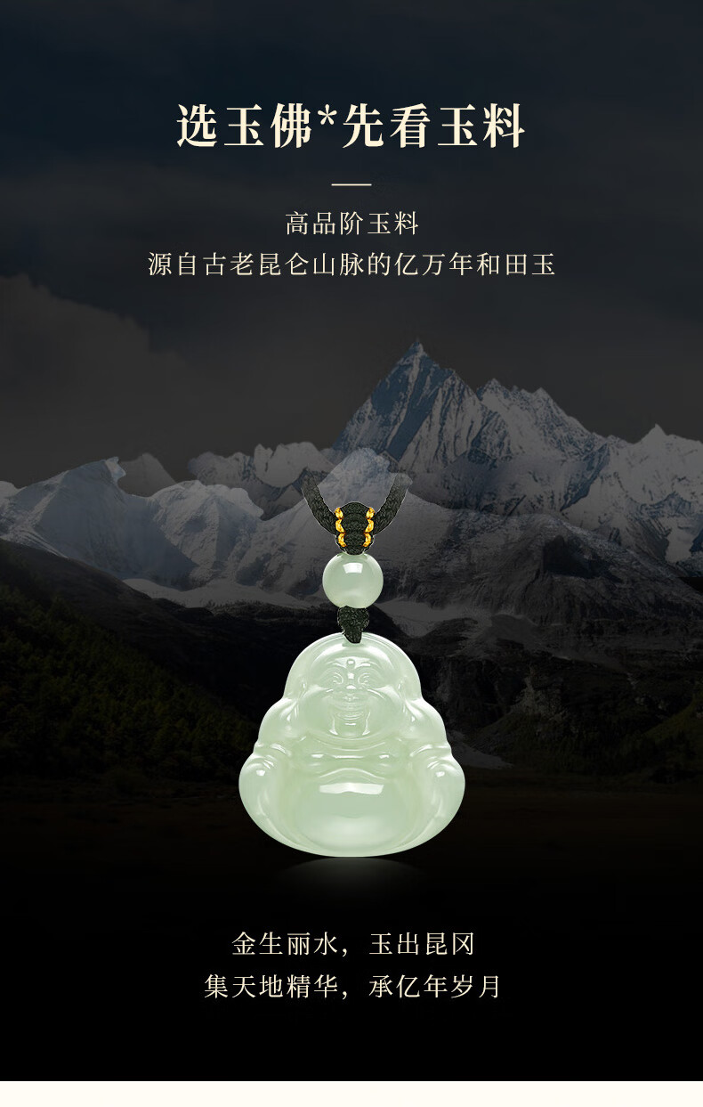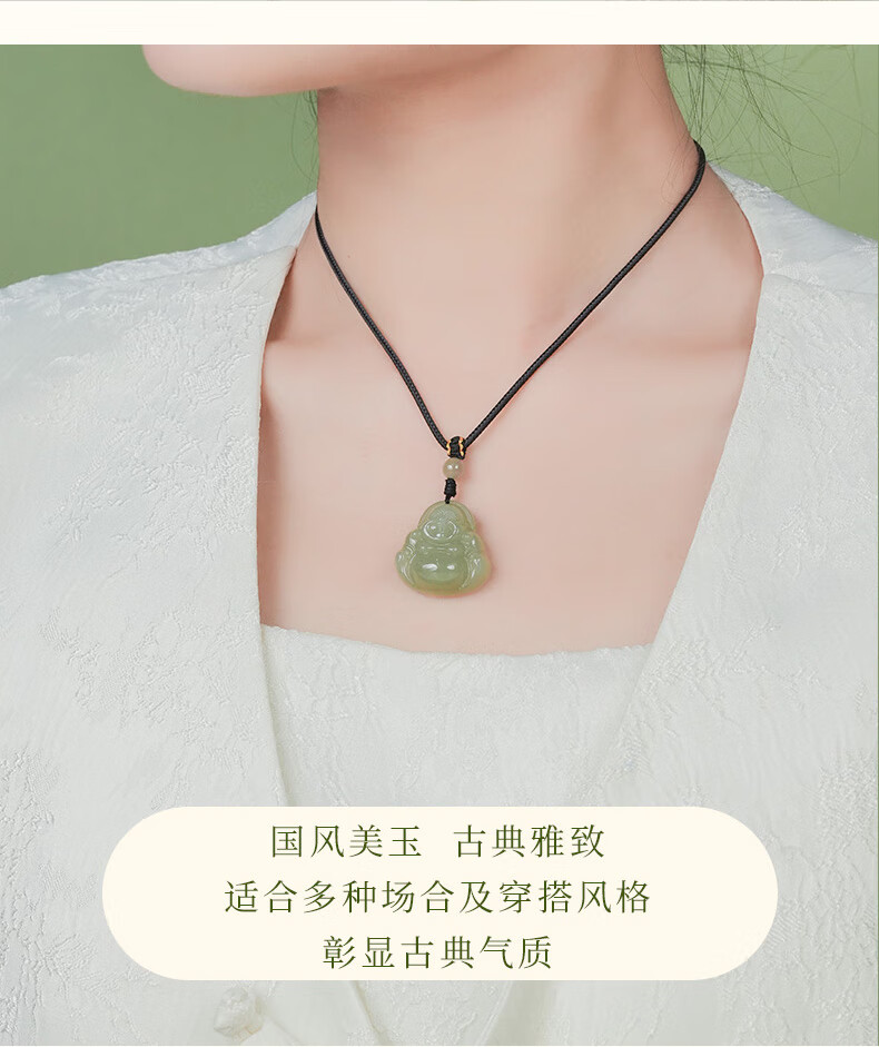 Lao Fengxiang Big Belly Maitreya Buddha Hotan Jade Pendant Men's and Women's Jade Handmade Rope Necklace for Wife and Girlfriend Birthday Gift Jingsuda Maitreya Buddha Hotan Jade Necklace-Jade Beads Black Rope