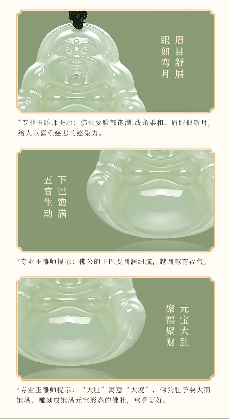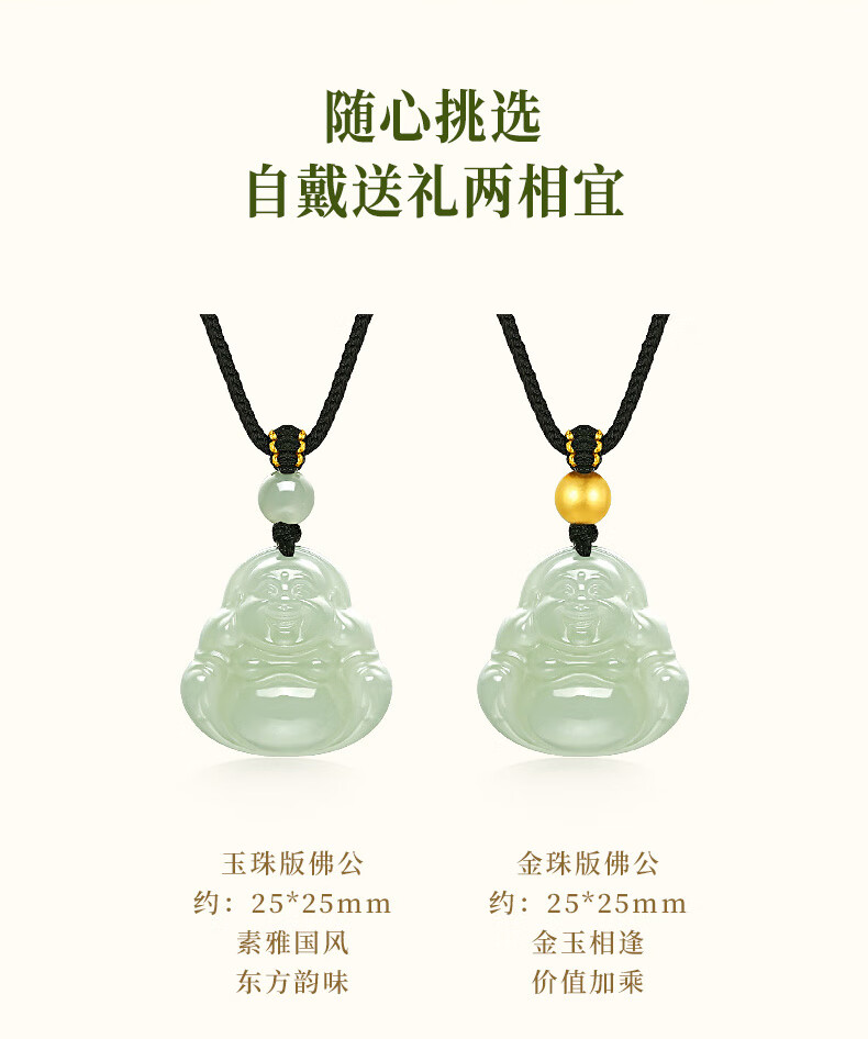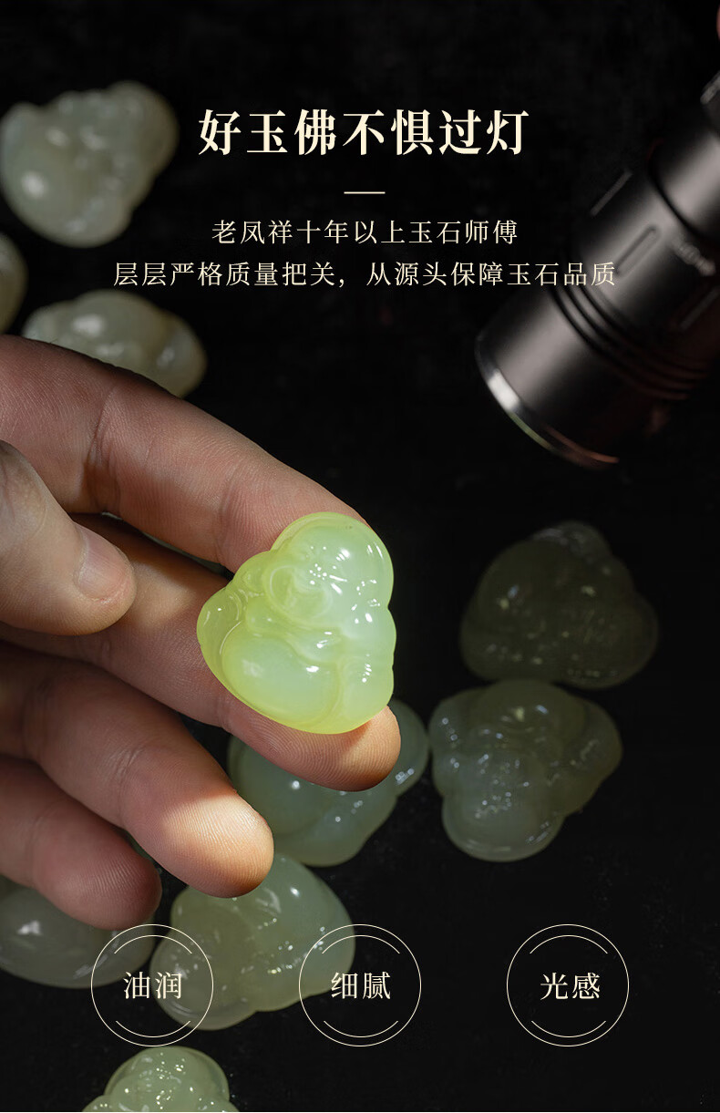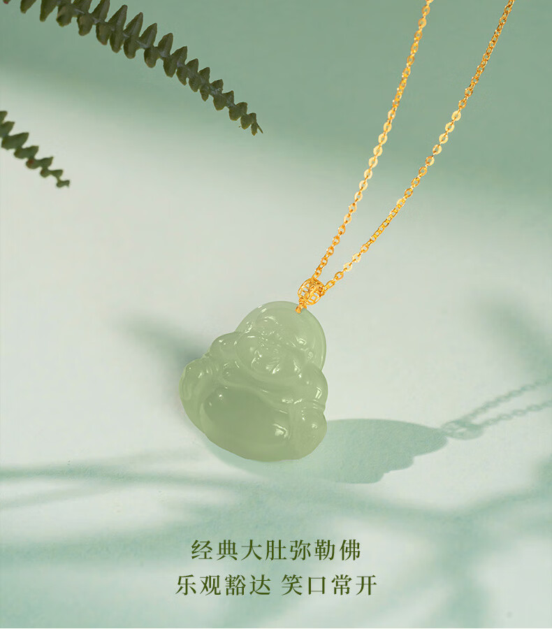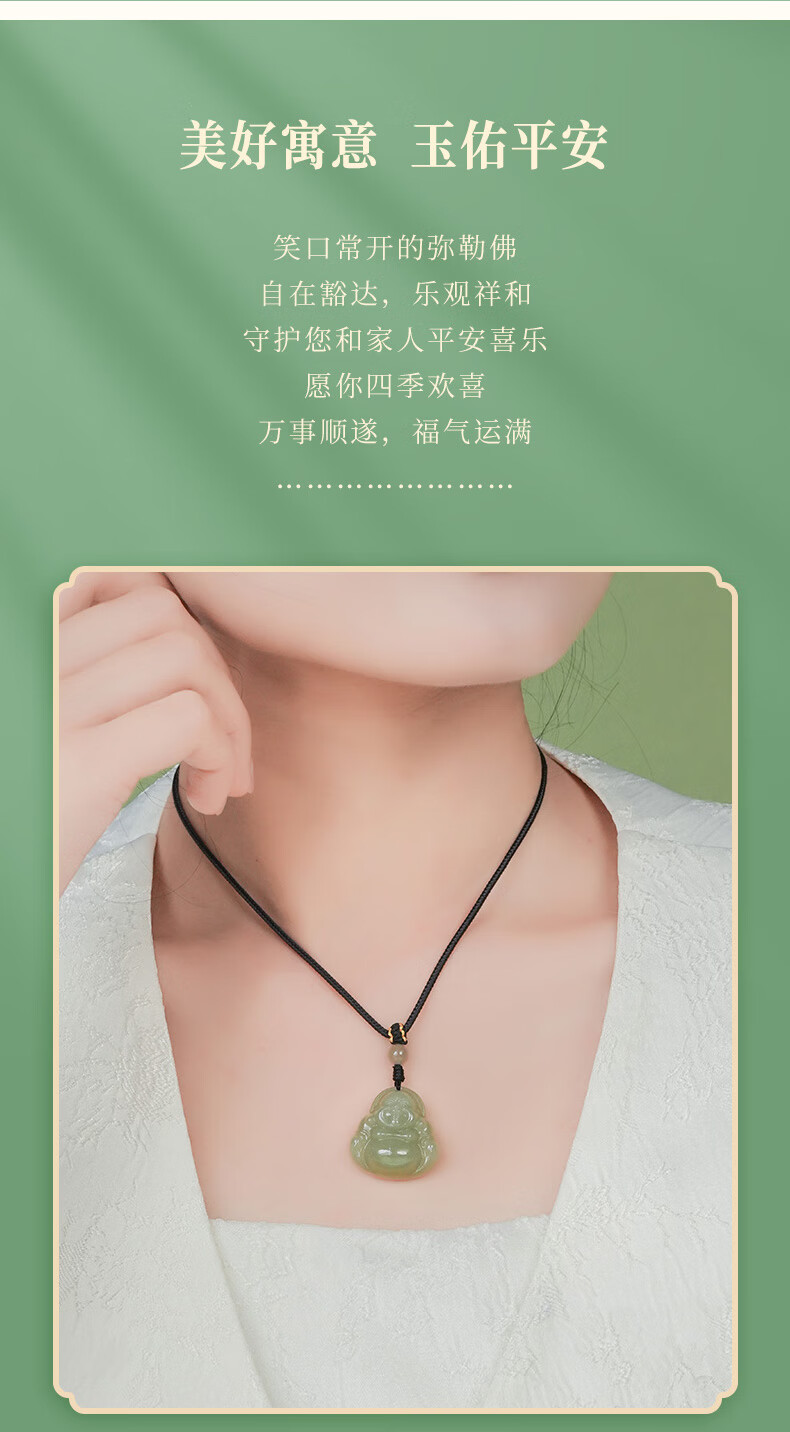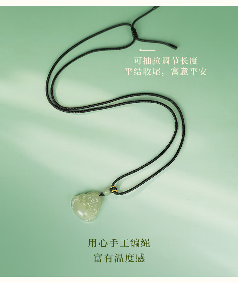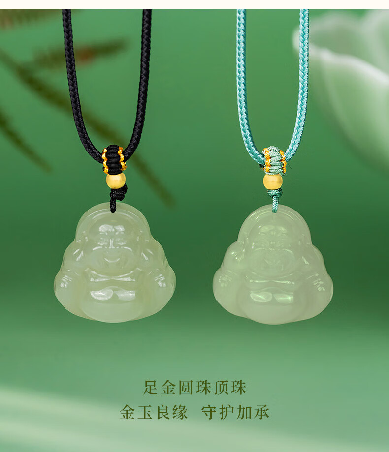 Lao Fengxiang Big Belly Maitreya Buddha Hotan Jade Pendant Men's and Women's Jade Handmade Rope Necklace for Wife and Girlfriend Birthday Gift Jingsuda Maitreya Buddha Hotan Jade Necklace-Jade Beads Black Rope