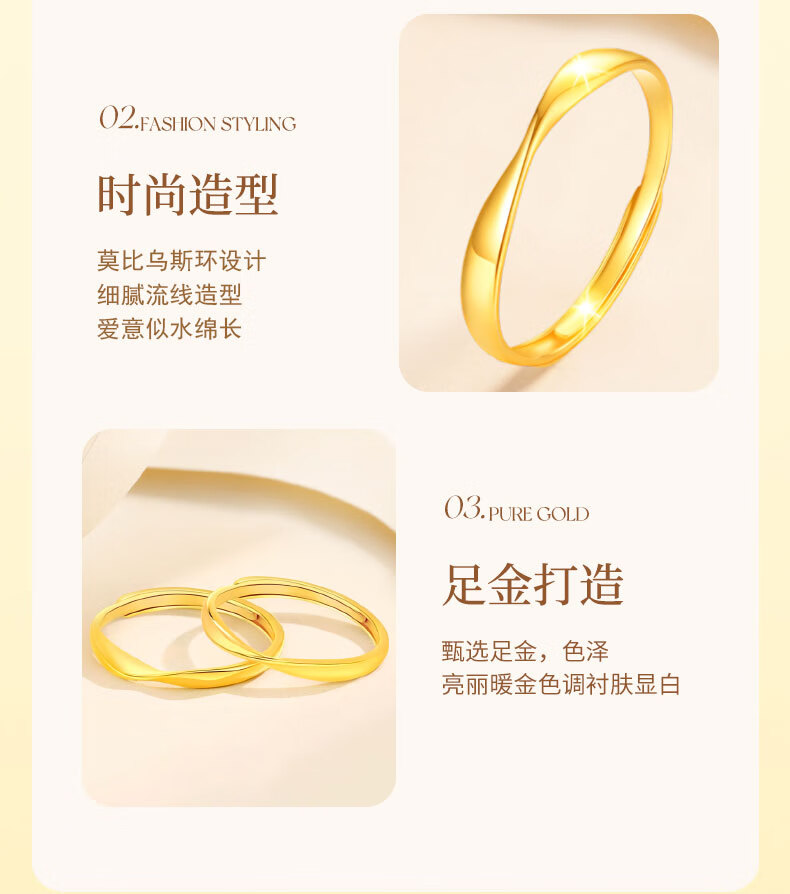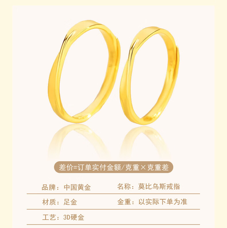 CHINA GOLD pure gold Möbius ring ring for male and female couples gold ring ring for Valentine's Day birthday gift for girlfriend, delivery today/next day Möbius ring for women, about 1.3g