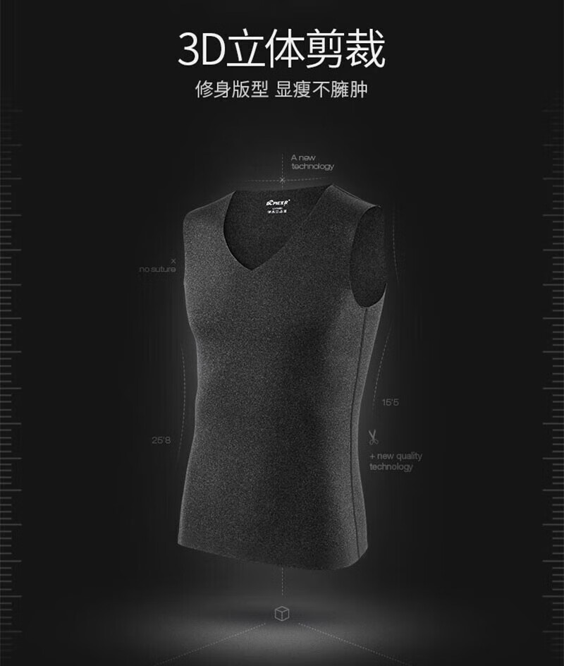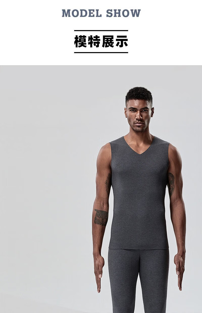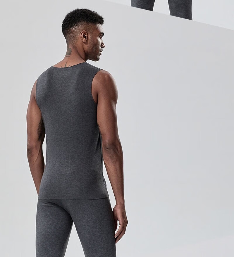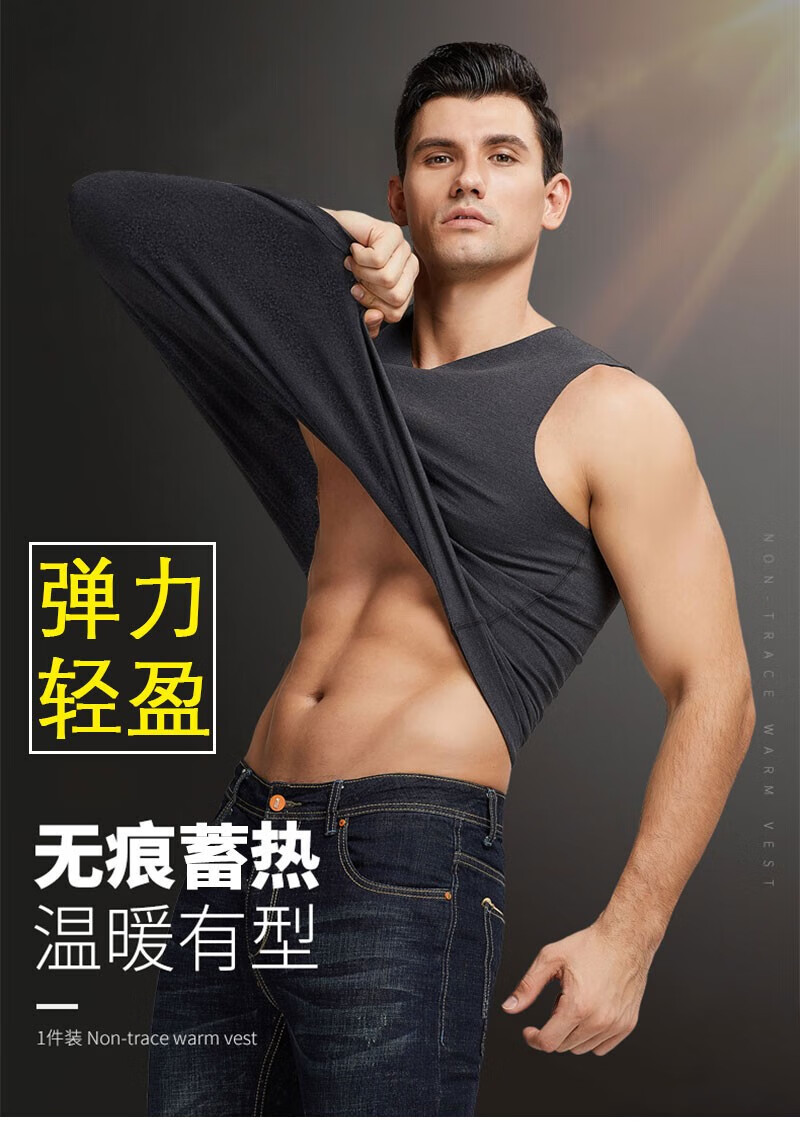 Men's Thermal Vest Men's Thickened Velvet Seamless Broad Shoulder Bottoming Top Autumn and Winter Large Size Vest Dark Gray + Light Gray 3XL