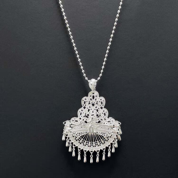 DL 1998 Fat Donglai same style Miao silver jewelry Guizhou Miao silver necklace ethnic style retro peacock tassel necklace performance performance colorful large peacock