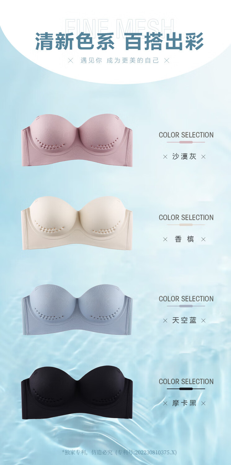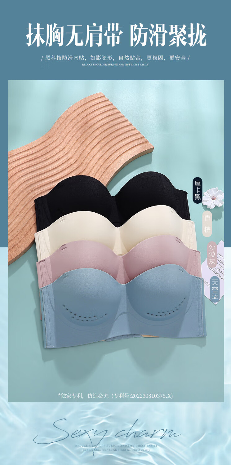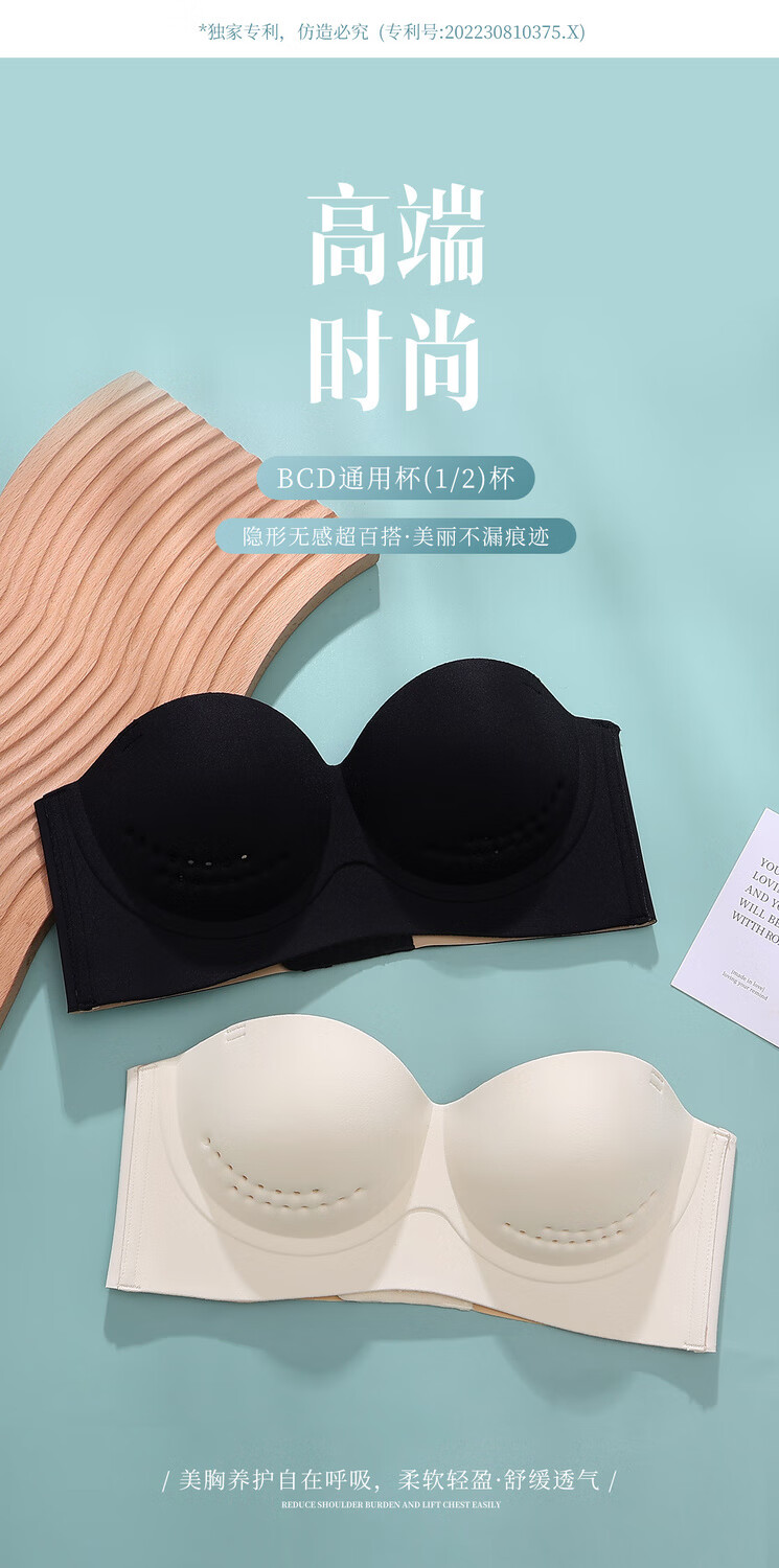 Efei Lindo La Beauty Underwear Women's Summer Strapless Strapless Gathering Breasts Anti-Sagging Japanese Glossy Bra Champagne Color Simple Fashion Single Piece 34/75B