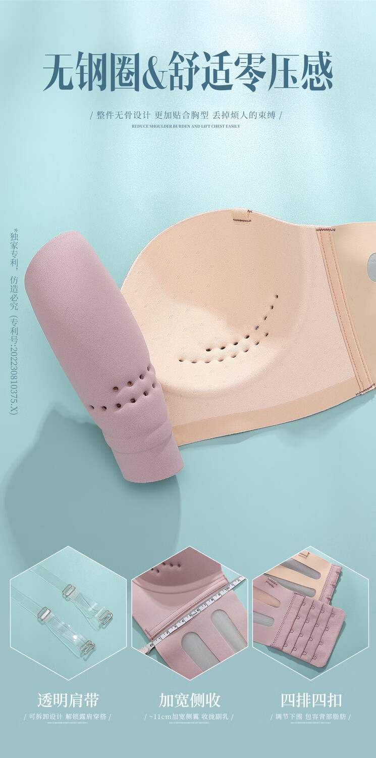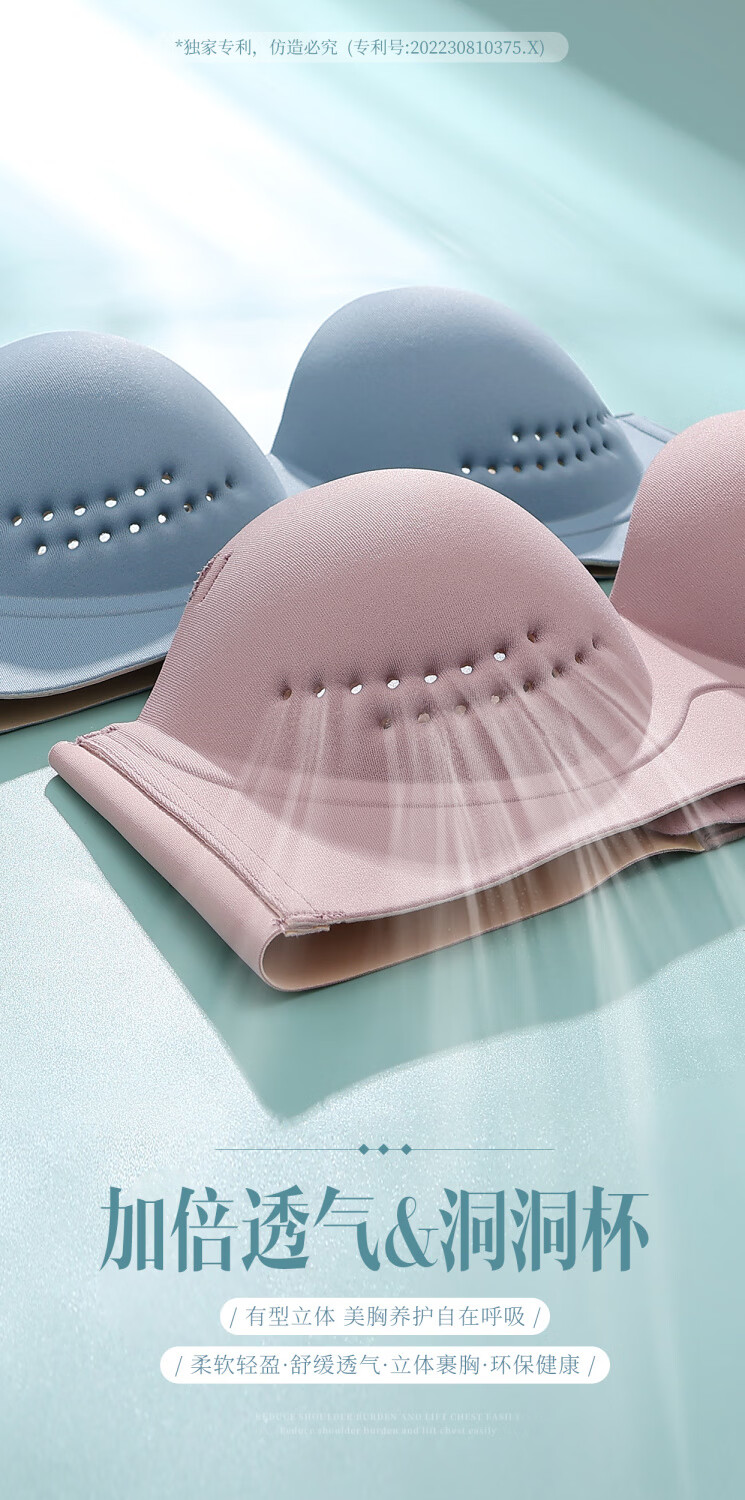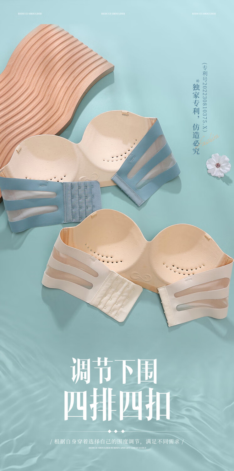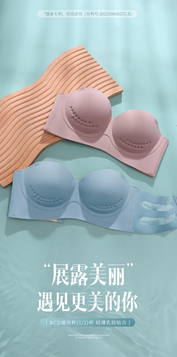 Efei Lindo La Beauty Underwear Women's Summer Strapless Strapless Gathering Breasts Anti-Sagging Japanese Glossy Bra Champagne Color Simple Fashion Single Piece 34/75B